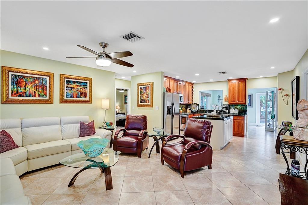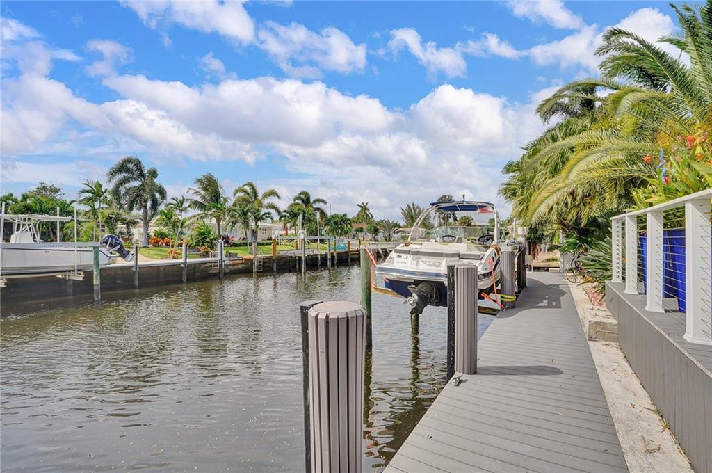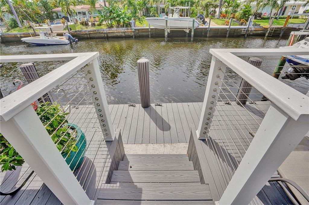 Amazing remodeled waterfront Garden Isles home. Open floor plan, ceramic tile, updated kitchen, granite, cooking island, stainless steel appliances, bathrooms updated, split floor plan. LED smart lighting w/Alexia. Walkout to the lush & private yard, w/ covered lanai, travertine deck, outdoor shower, heated pool w/ new Diamond Brite, pump and waterfall. New composite 60 ft deck and dock with 10,000-pound lift and 2 new motors. Cast iron replaced with PVC. Impact windows+shutters. One fixed bridge about 8ft clearance besides Federal Hwy bridge reports 12 ft. Updates include barrel Roof 2003, pavers 2018, sprinklers/landscaping 2018, flat roof 2017, A/C 2018, lanai 2018, pool pump waterfall 2018, dock, lift, dual motors, electric 2018