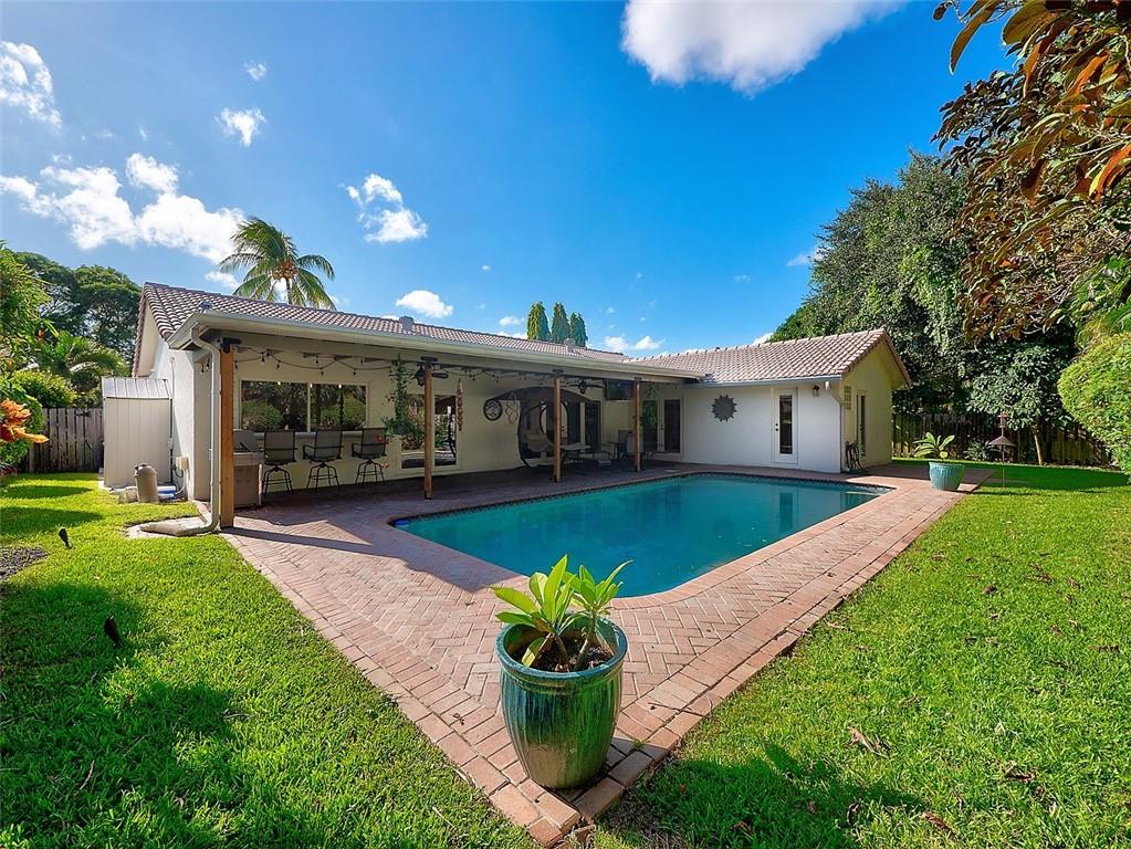 Beautiful home in one of Central Boca's hidden gems! This is a rarely available 4 bedroom 2 bath home with 2,372 sqft with a spacious pool and patio area. This home has vaulted ceilings, formal dining room, 2 car garage, and open floorplan great for entertaining. Large backyard with 6ft deep pool and exotic trees (new patio roof done in 2018). Porcelain tiles throughout the bedrooms (done in 2018), Mexican tiles throughout the living area and kitchen. Granite countertops in the kitchen (remodeled in 2013) with newer appliances and an oversized copper farm sink is great for the everyday chef! Hurricane shutters included. This plush and cozy gated community is centrally located in the heart of Boca, A+ schools, 2 minutes from the Boca Mall and is kid/pet friendly. This home is a must see!
