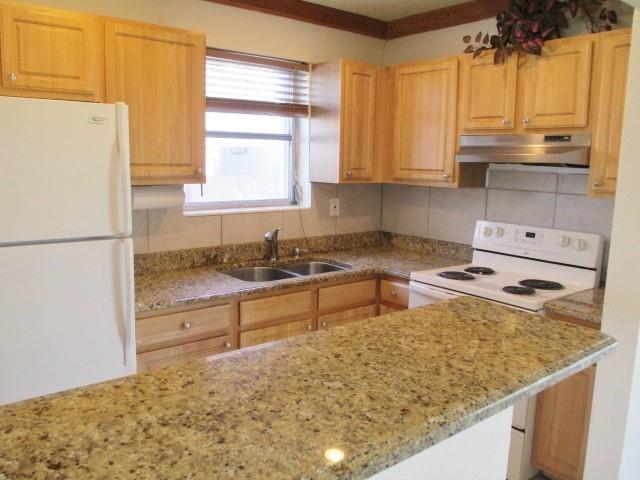 Ready for a new family...Great starter home featuring crown molding, fully tiled, remodeled kit with granite, accordian shutters, screened patio, inside utility room w washer and dryer, all new updated electrical, new water line to street, tile roof, paddle fans, and central a/c. Additional covered carport on side of house for boat, trailer, camper stays.