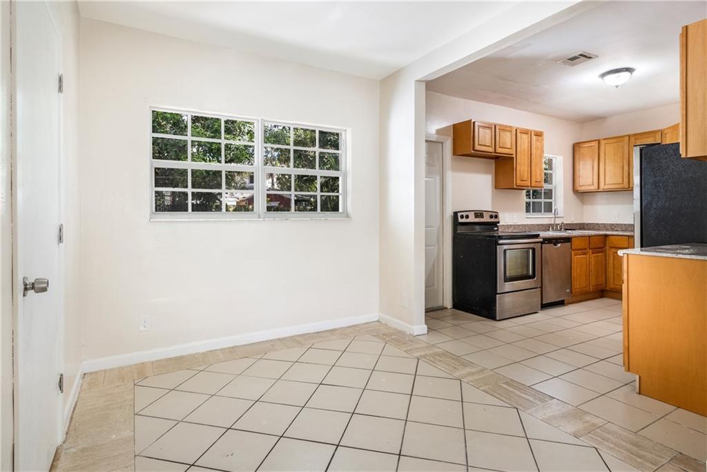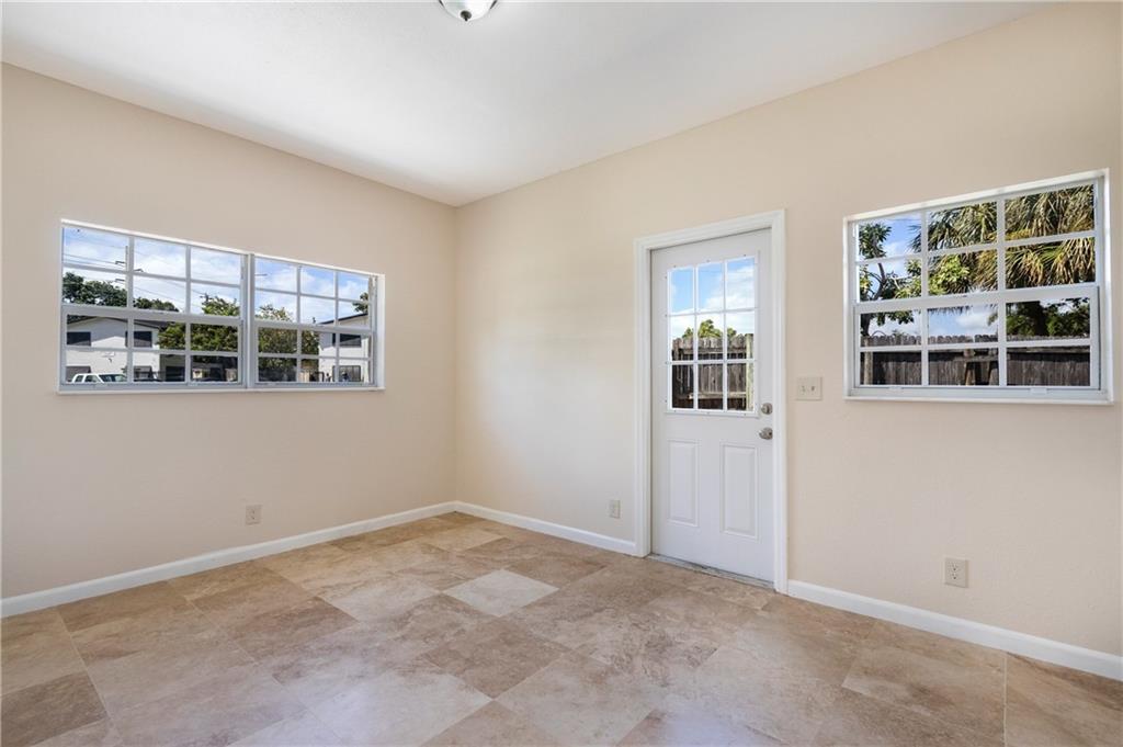 Opportunity is knocking to buy an affordable move-in ready single-family home in an east Fort Lauderdale neighborhood! This light and bright 4BR/2BA home sits on a large fenced corner lot and is full of upgrades! Great space for entertaining. Greet guests at your double door entry with sitting room. Kitchen features wood cabinets, stainless steel appliances, dual sided sink, and pantry with adjacent dining room. New tile floors throughout main living area and two bedrooms and carpet in other bedrooms. Two bedrooms have private entranceway. Newer light fixtures throughout & updated 200 amp electrical panel! AC 2017! Newer windows. Laundry room. Come see today!