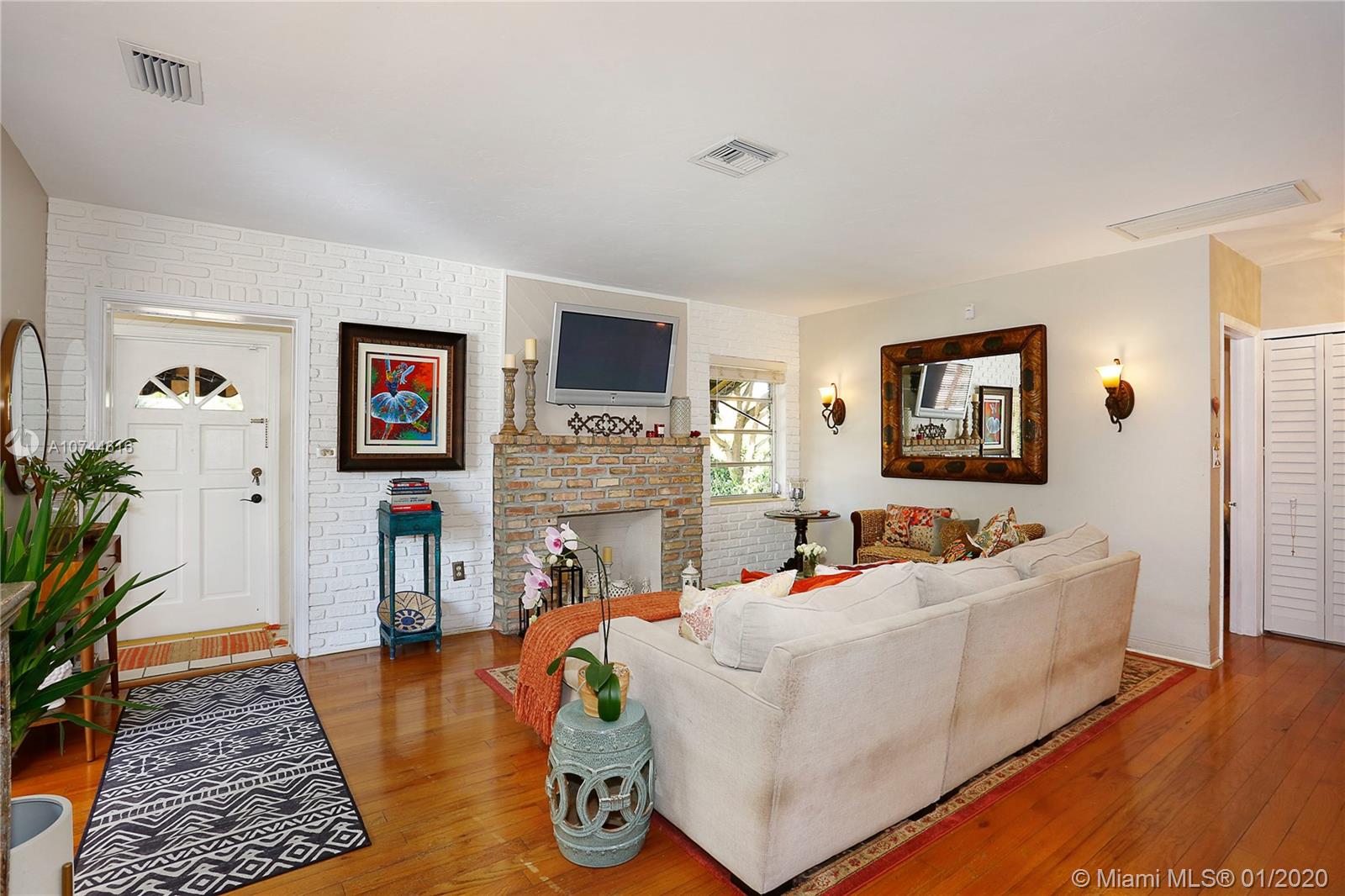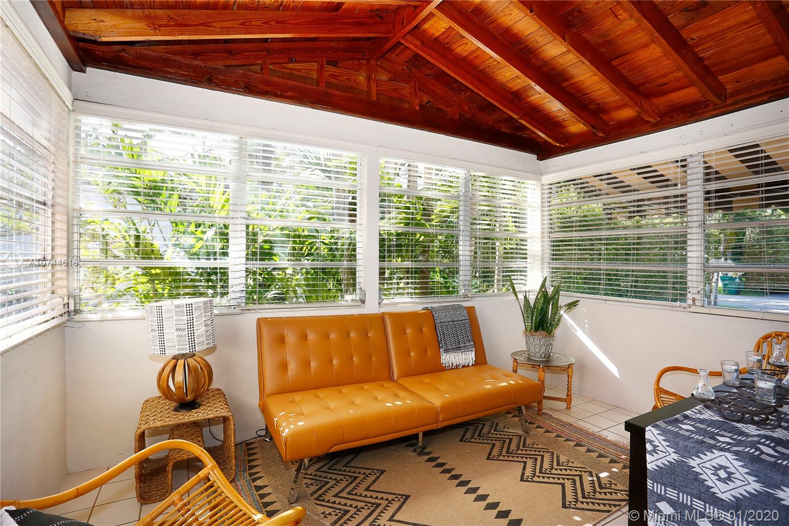 Back on market due to buyer's financing. Get another chance at this sunny Gables home, filled with great design choices, a beautiful renovated kitchen and bath. Custom cabinets, SS appliances, smooth cook top range w/microwave and conventional oven, granite counters. Kitchen opens to back deck. Closets have been maximized and customized! Lovely lighting fixtures throughout. Spacious living room, fireplace and sunroom/den with open beam ceiling. Glass enclosed shower. Hardwood floors. Laundry room. Oversized, private yard, front porch, spacious driveway, lush landscaping and mature trees. Municipal water and sewer. Amazing location that checks off every box: lovely tree-lined street, walking distance to Miracle Mile, fine dining/shopping just minutes from your door. Welcome Home!