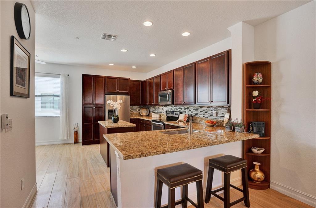 3 bedroom 3.5 bathroom Tri-Level townhouse with hurricane impact glass windows & doors. Largest floor-plan in the community. All bedrooms have a private bathroom (one bedroom & bathroom on 1st floor). Upgraded kitchen with stainless appliances, granite, peninsula & island offering plenty of countertop space & storage. Spacious master suite with his/her closets including a huge walk-in closet, dual sink granite vanity, soaking tub & separate shower. 2 car garage with built in storage shelves (door has wireless control). Upgraded features not provided by the builder: All tile & wood floors, window treatments, ceiling fans & A/C wireless controls. Interior laundry room & storage closet. Low HOA incl: gated comm with pool & fitness center. Close to Pembroke Gardens. Near Pines Charter School.
