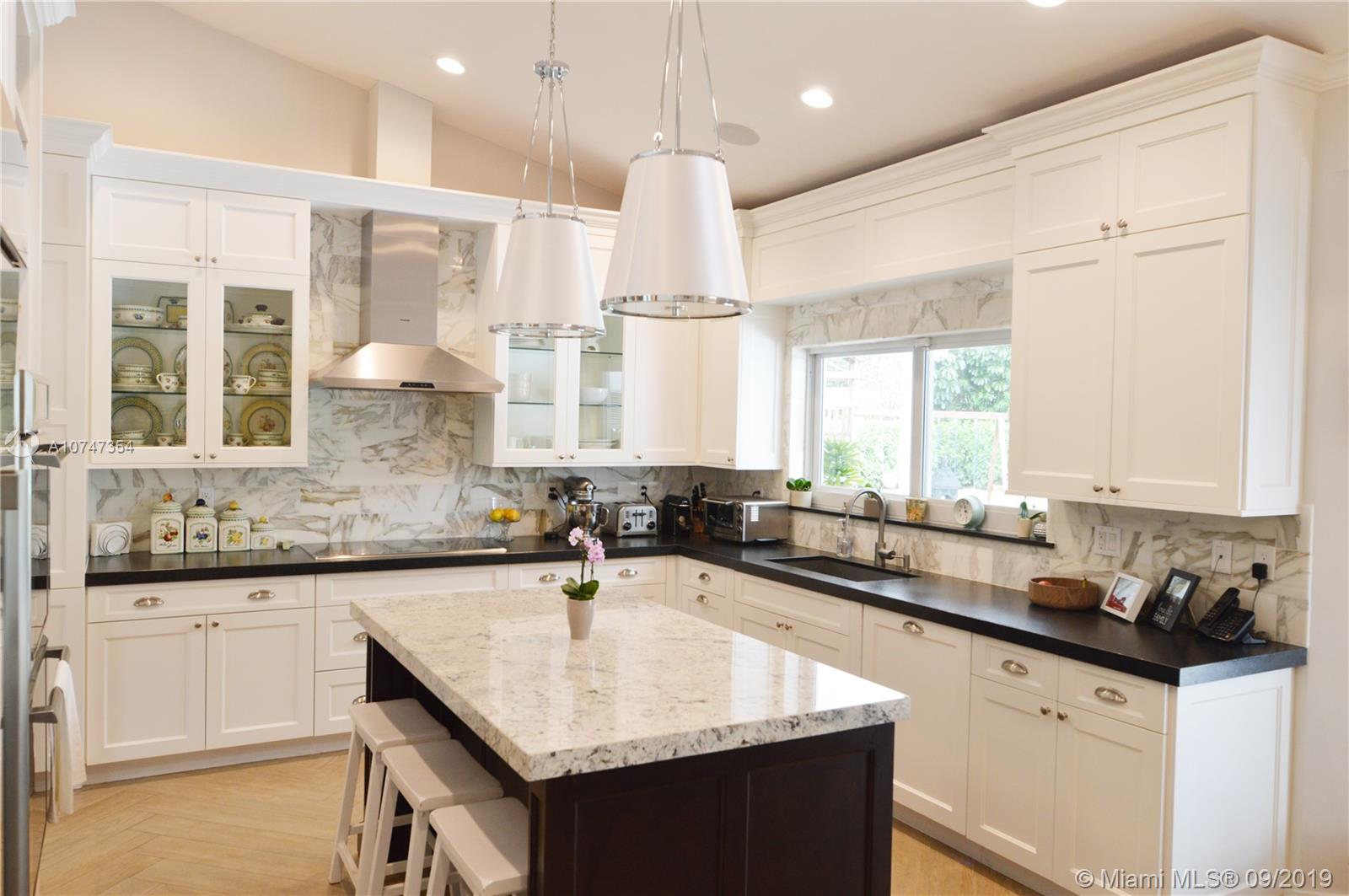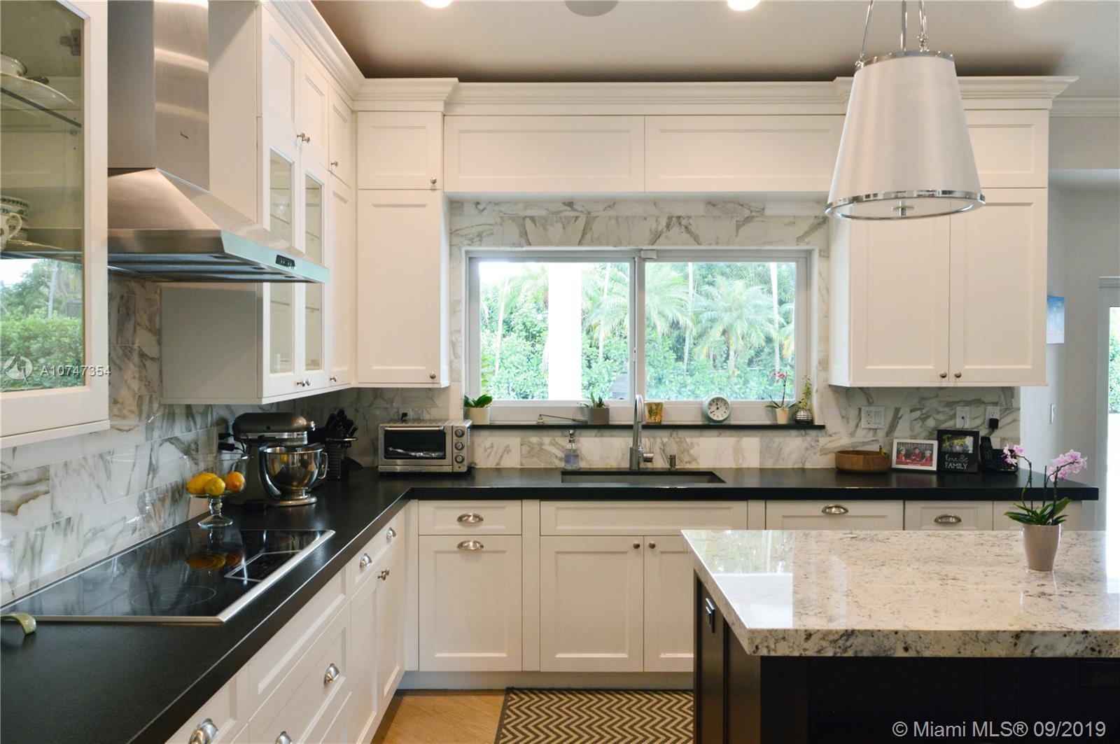 Bring your most discerning buyer to see this beautifully renovated 4/3 home, with an additional bonus room for an office/library. Best priced home in Pinecrest below $1.5 Million. This home has been totally renovated inside with exquisite taste, including large 24 inch travertine marble flooring throughout the living areas, and wood flooring in the bedrooms. An amazing modern kitchen was incorporated with all high end Thermador appliances, beautiful ceramic wood tiling, and a beautiful, large, working island facing the family room and nook. All bathrooms were remodeled, a new beautiful flat tile roof was added in 2016. The house has all impact doors and windows and was connected to county water as well. Please click on Supplement Remarks on top of page.