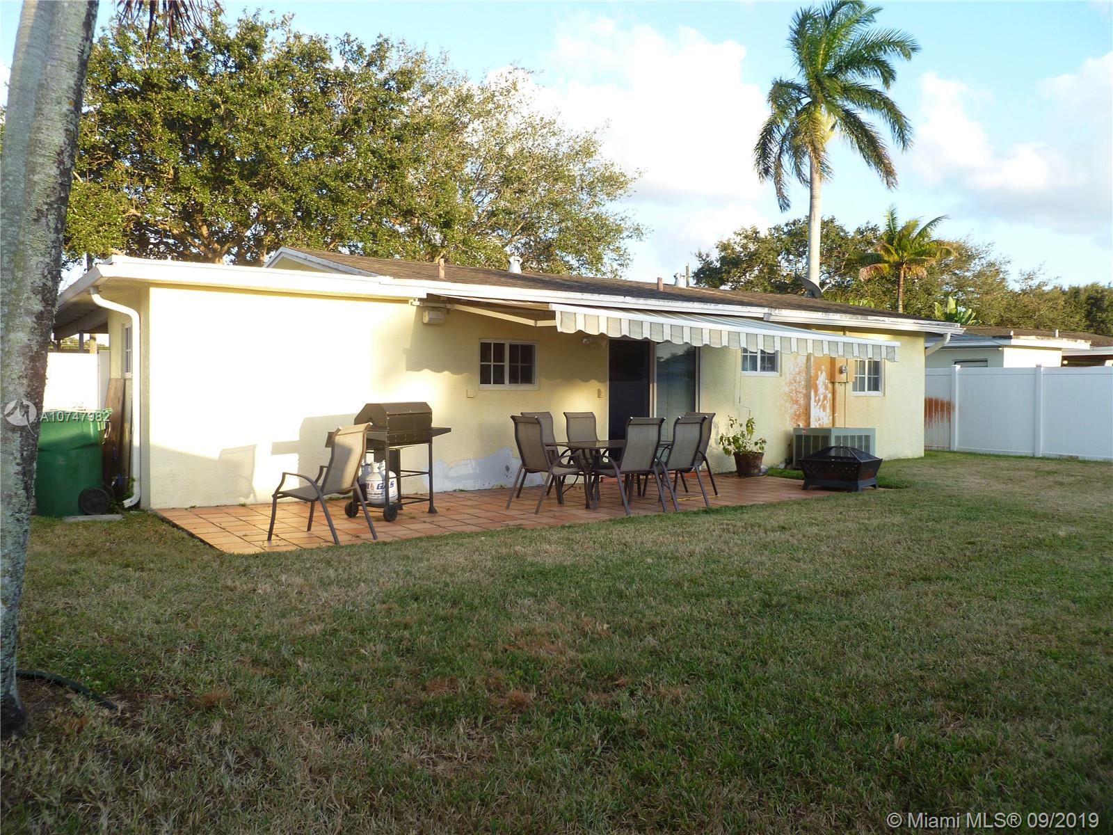Location, Location!!! in Cooper City, lovely 2/1, 1 car carport. very private back yard with white vinyl privacy fence, plenty of room for a pool. open patio with SunSetter retractable shade. indoor laundry/storage room with front loader washer/dryer, updated kitchen/bath, plantation shutters window coverings. East/West exposure for morning light and beautiful sunsets. Permitted work includes impact PGT windows/doors (2002) , electric underground 2006 (copper line City to Property) fence (2006), roof (2006), patio concrete slab (2009), extended concrete driveway (2009). sold AS-IS, property needs some minor cosmetics but location and schools are hard to beat. No HOA, quick close preferred.