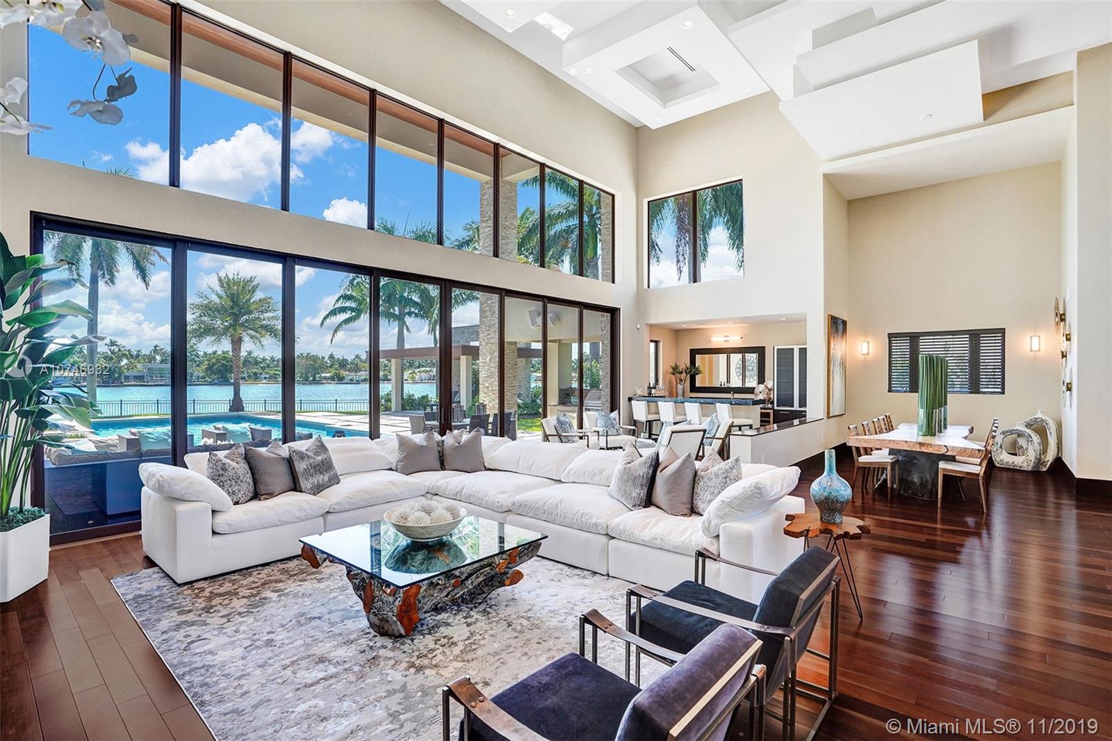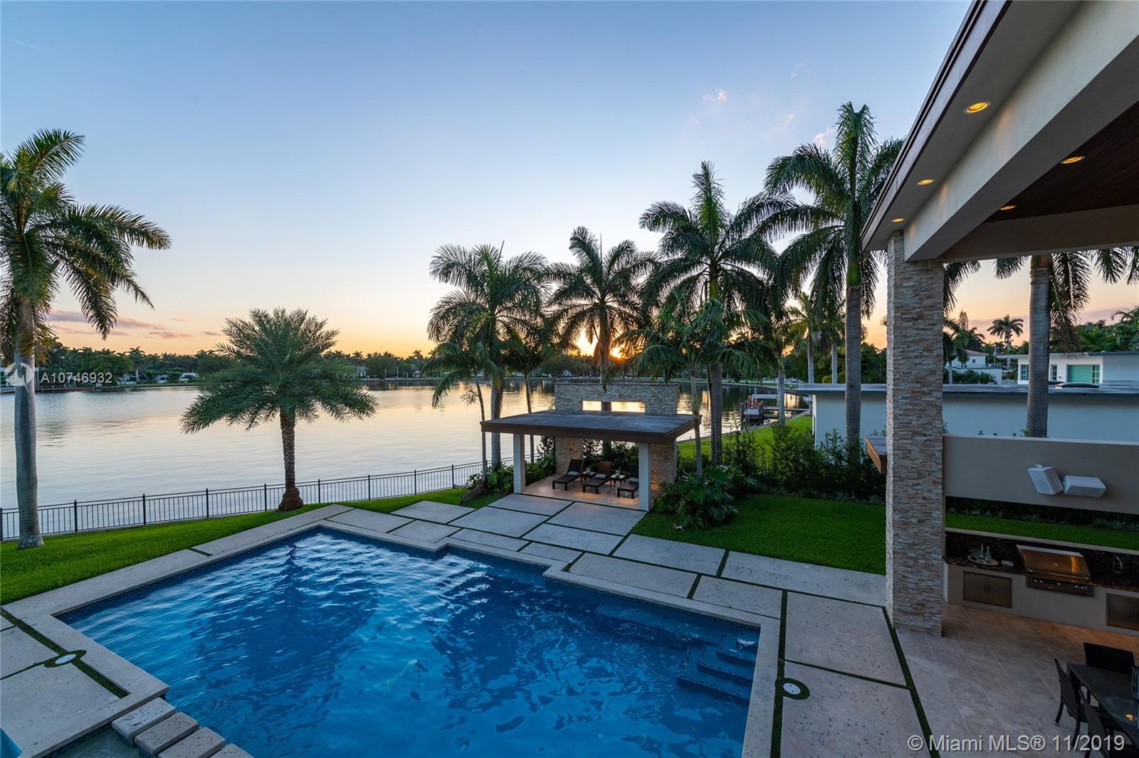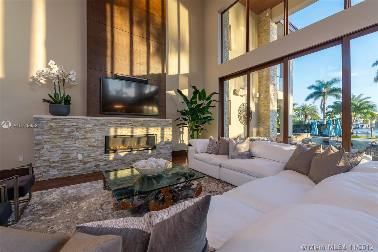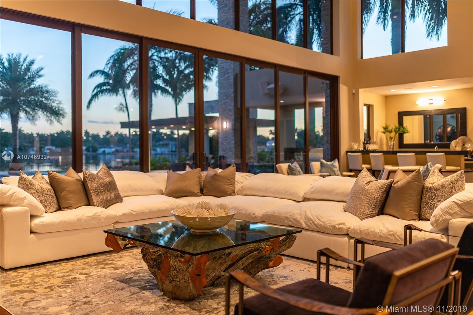 Tropical Modern Estate situated between Miami & Ft Laud, totaling approx 8k sq. ft., 6 bedrms/6.5 unique baths w/wide water views in every room & resort-style pool w/25k lot. No fixed bridges, large dock w/20k lbs boat lift & 160' on water. Summer kitchen, large hot tub, tanning shelf, & fire pit, full bar, gourmet kitchen; spa master bath,2 water closets & multi-person shower. Bedrooms have full en-suite baths & 6th bedrm is attached via covered walkway & gym/office/in-law suite. Windows & sliders are hurricane-impact & UV protected, the walls are concrete block construction & 2nd story has concrete floor. 5 AC zones, fireplace in living rm & master bdrm & Crestron lighting systm. 3 car garage,ample guest parking in governor’s drivewy. Visit Juana Drago YouTube for Video Tour.