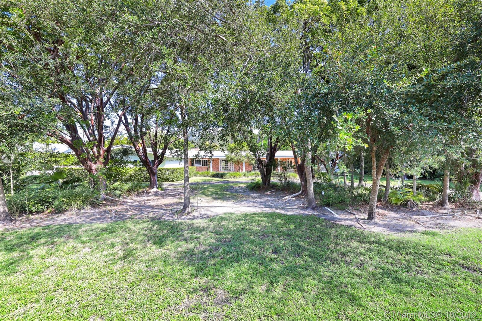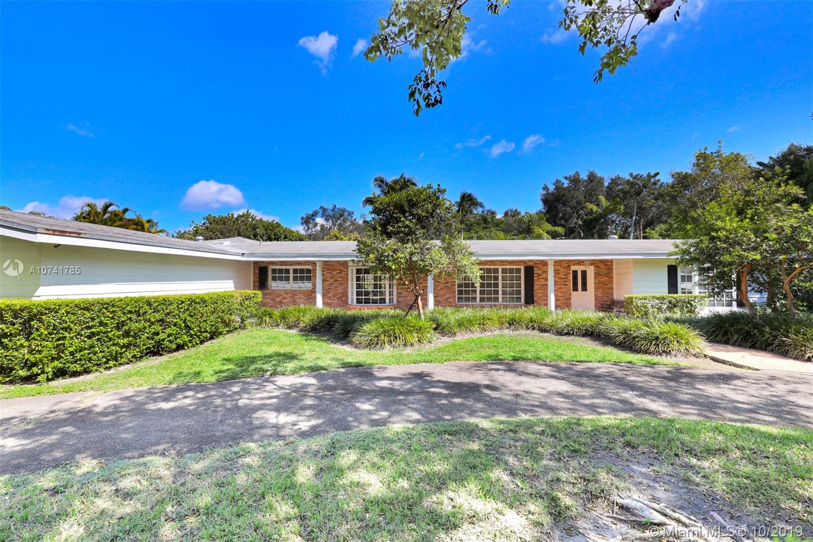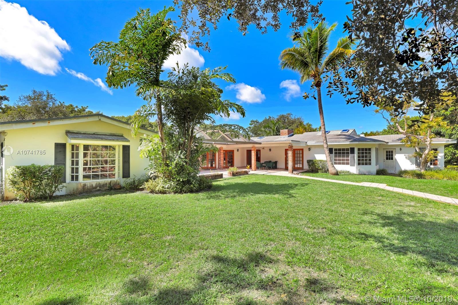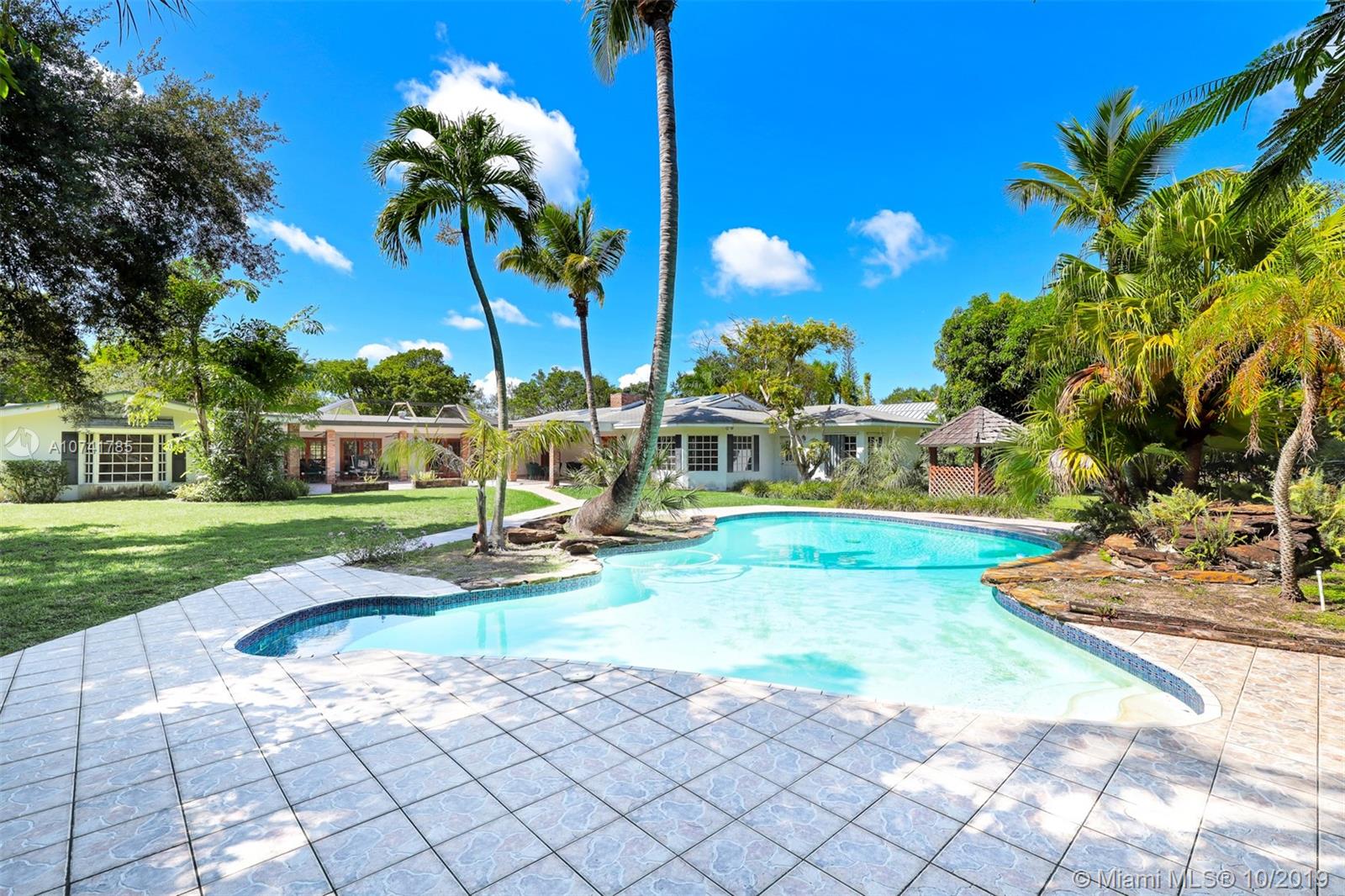 On a lovely FULL ACRE this 5Bed/3.5Baths home is located in the heart of Pinecrest. This is an opportunity to either renovate or build a new home. Existing home has over 4,000 sq ft of living space, plus a 2 car garage and an oversized pool! The lush and private backyard has palmetto islands, mature live oaks, mango & avocado trees. Bright and flowing floor plan with lots of natural light. Living rm, formal dining rm, kitchen and breakfast room, large laundry/utility room, large family room with wood burning fireplace and romantic master suite overlooking pool/garden with oversize walk-in closet and luxurious master bath. Bonus room adjacent to master suite. The 3-way split bedroom plan ensures privacy and quiet for everyone. SOLD AS IS. PLEASE USE SHOW ASSIST 24 HOUR NOTICE