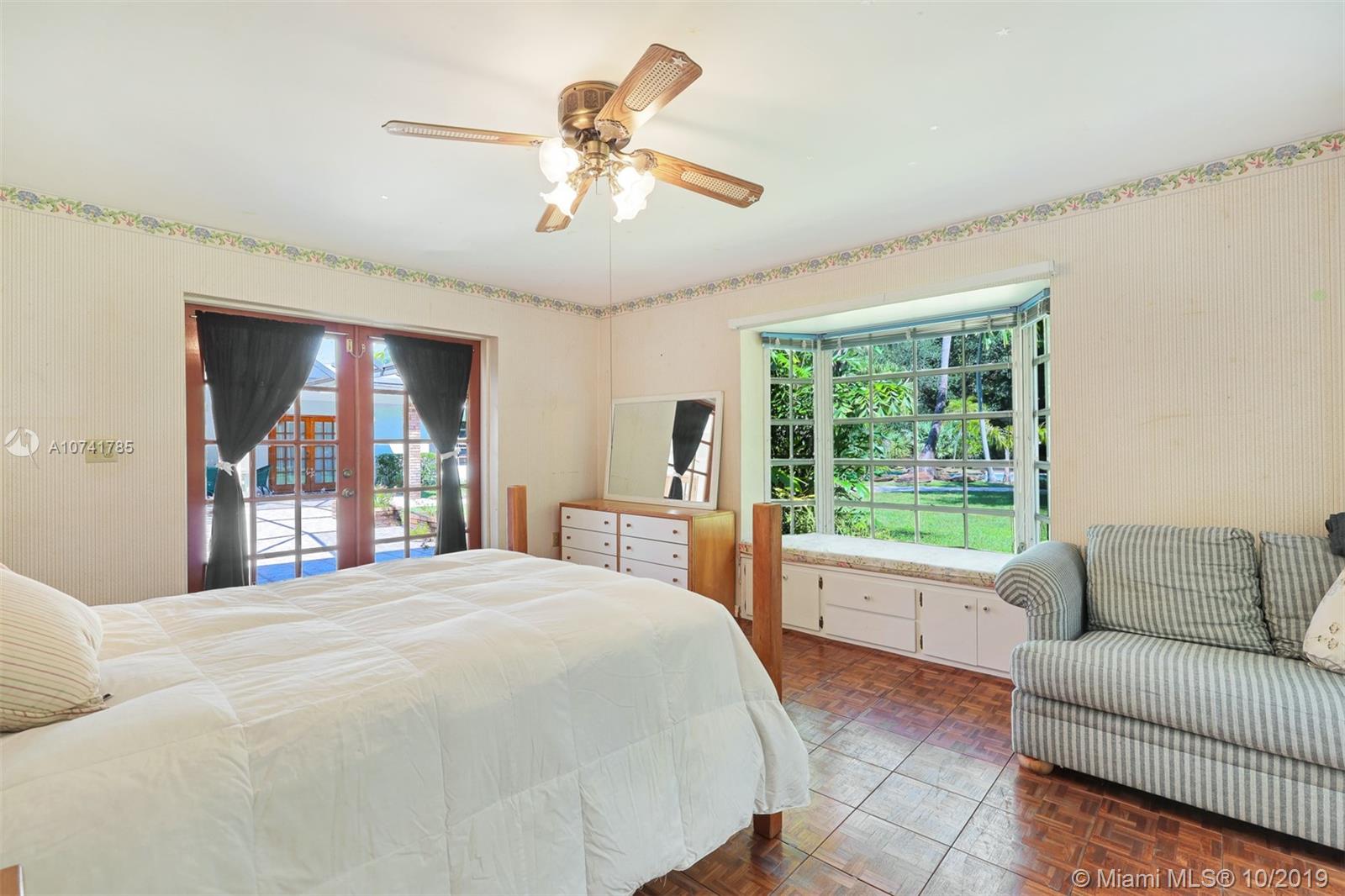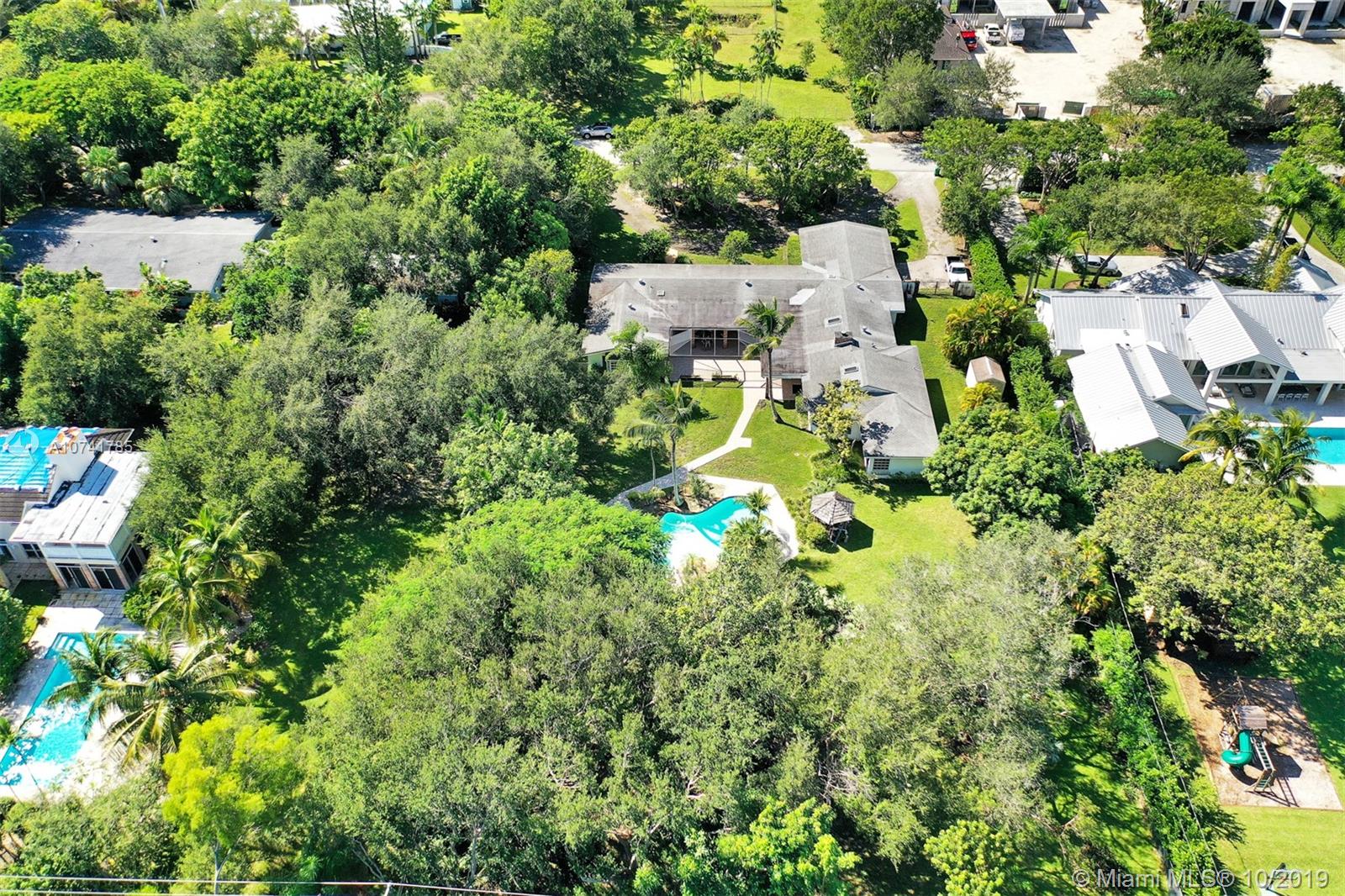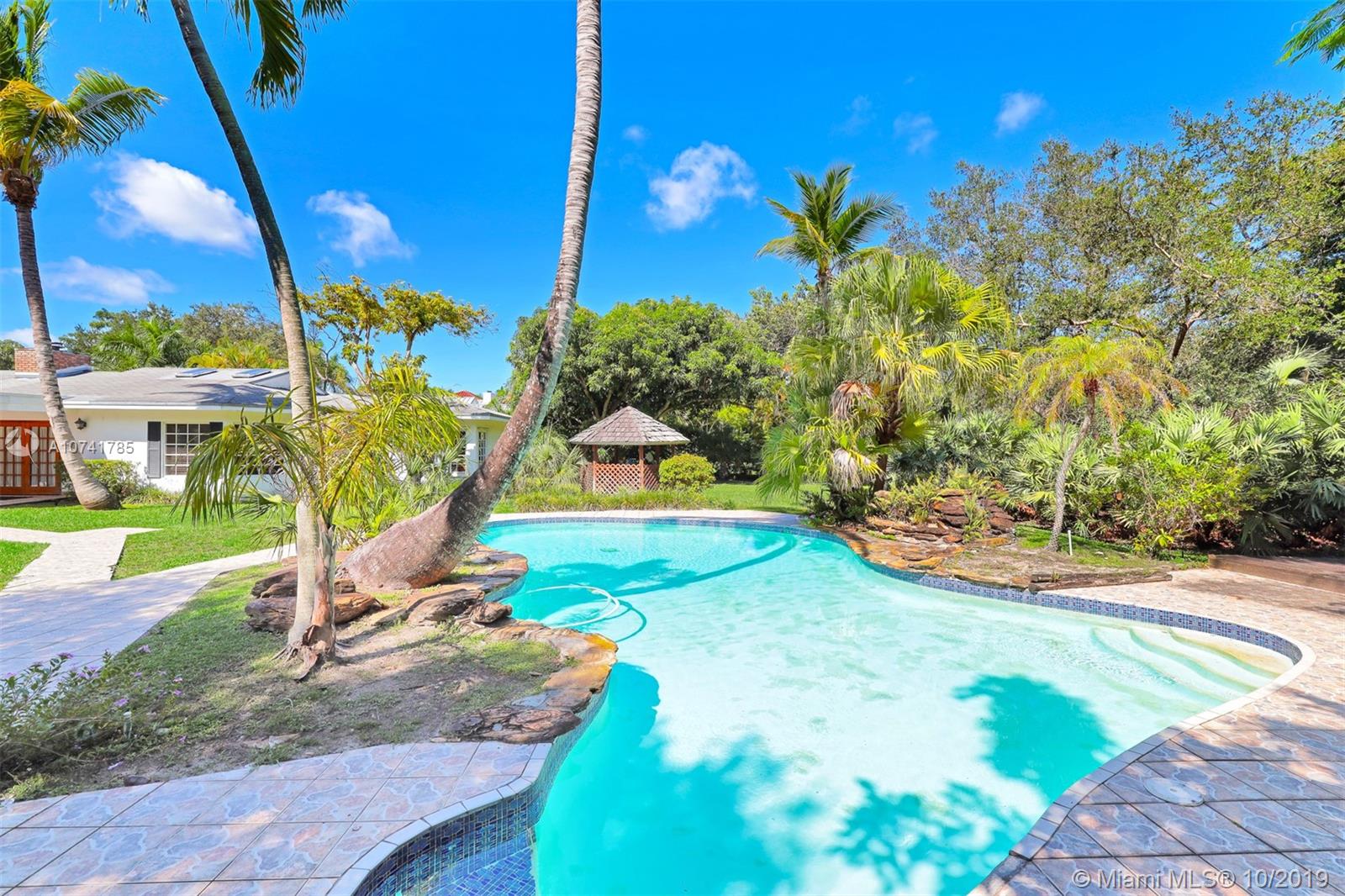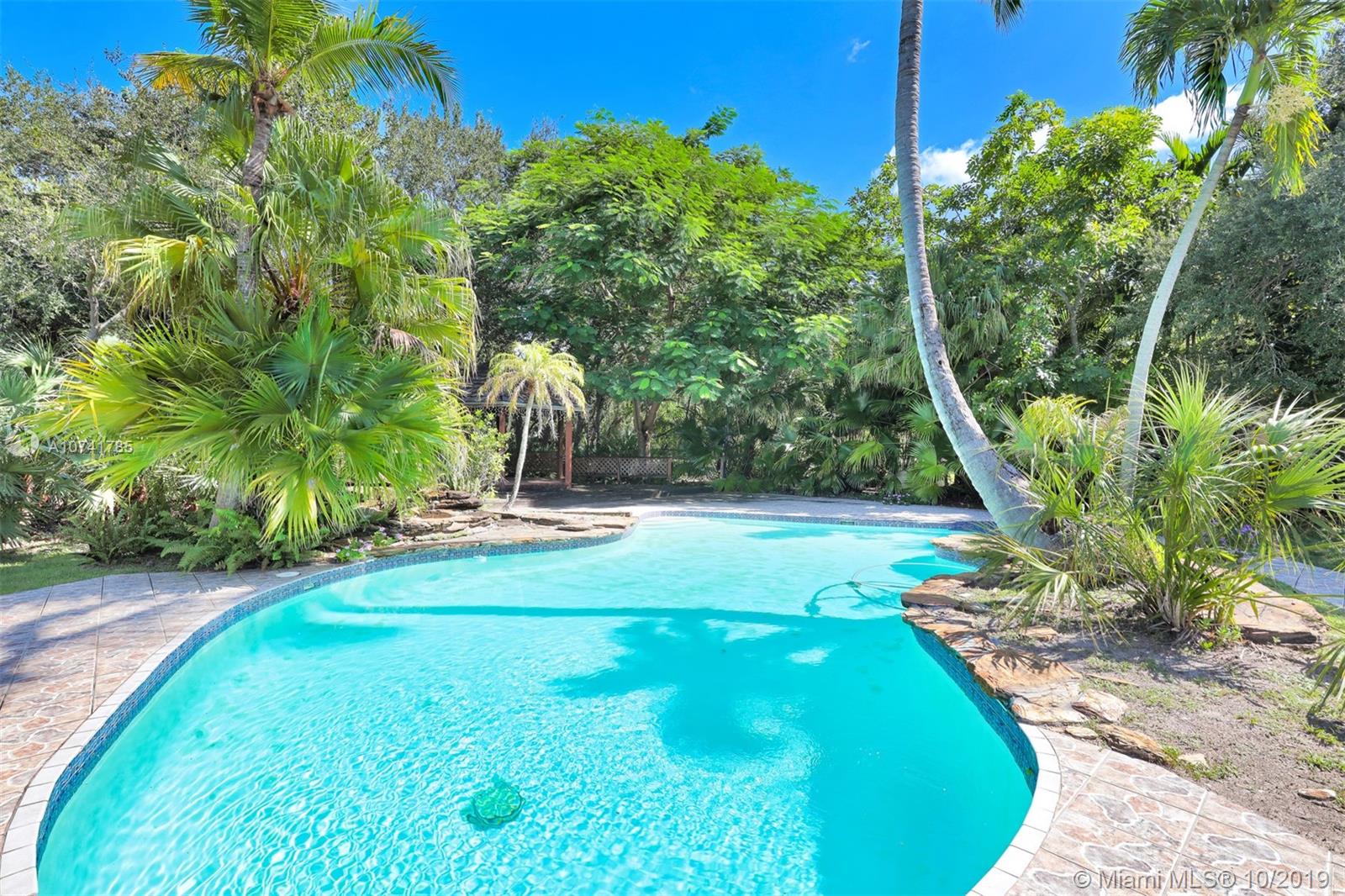 On a lovely FULL ACRE this 5Bed/3.5Baths home is located in the heart of Pinecrest. This is an opportunity to either renovate or build a new home. Existing home has over 4,000 sq ft of living space, plus a 2 car garage and an oversized pool! The lush and private backyard has palmetto islands, mature live oaks, mango & avocado trees. Bright and flowing floor plan with lots of natural light. Living rm, formal dining rm, kitchen and breakfast room, large laundry/utility room, large family room with wood burning fireplace and romantic master suite overlooking pool/garden with oversize walk-in closet and luxurious master bath. Bonus room adjacent to master suite. The 3-way split bedroom plan ensures privacy and quiet for everyone. SOLD AS IS. PLEASE USE SHOW ASSIST 24 HOUR NOTICE