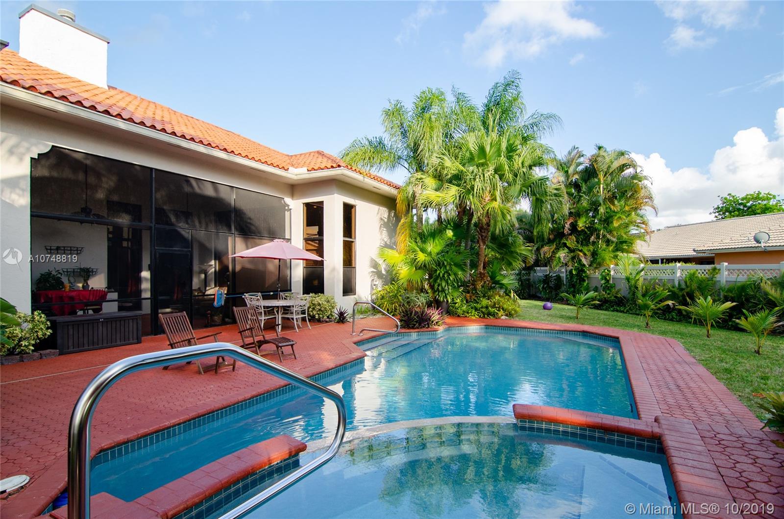 Beautiful Springs Pointe house with pool!! Highly upgraded 4/bedrooms, 3.5 bathrooms + office on magnificent oversized fenced lot! New roof 2007! Open cherry & granite gourmet kitchen ! Abundance of natural light. Formal dining and large living room. Updated bathrooms. Luxury master suite with built-in custom closet and spacious and updated master bathroom. Vaulted ceilings and open layout. Cabana bath. Great split floor plan. Tremendous pool/patio area! Very private backyard with open grass area. Close to top rated schools, north community park, dining, shopping and sawgrass expwy. Best of all no hoa. Absolutely must see! 3D video tour available!