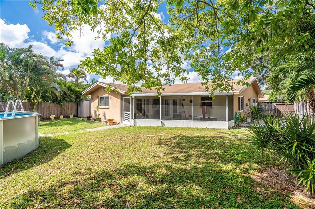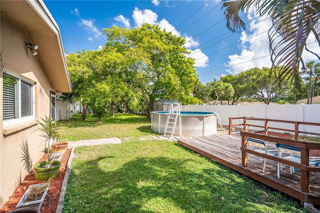 Welcome to Palm Aire Village! You will be delighted to see this amazing home with wide open spaces. French doors accent the dining area and master bedroom. Spread out in your 3 bedroom, 2 bath home, offering a huge kitchen with granite counters on the breakfast bar and extra cabinets for storage. Light tile and wood flooring throughout. Hurricane impact windows and shutters for the doors. The master bedroom views the back yard and offers a large custom walk-in closet and remodeled bath. Large covered screened patio to entertain, spacious yard with wood decking and an above ground pool. Stamped concrete driveway, single car garage and the roof is only 6 yrs. old. This home is centrally located in Broward and convenient to major highways.