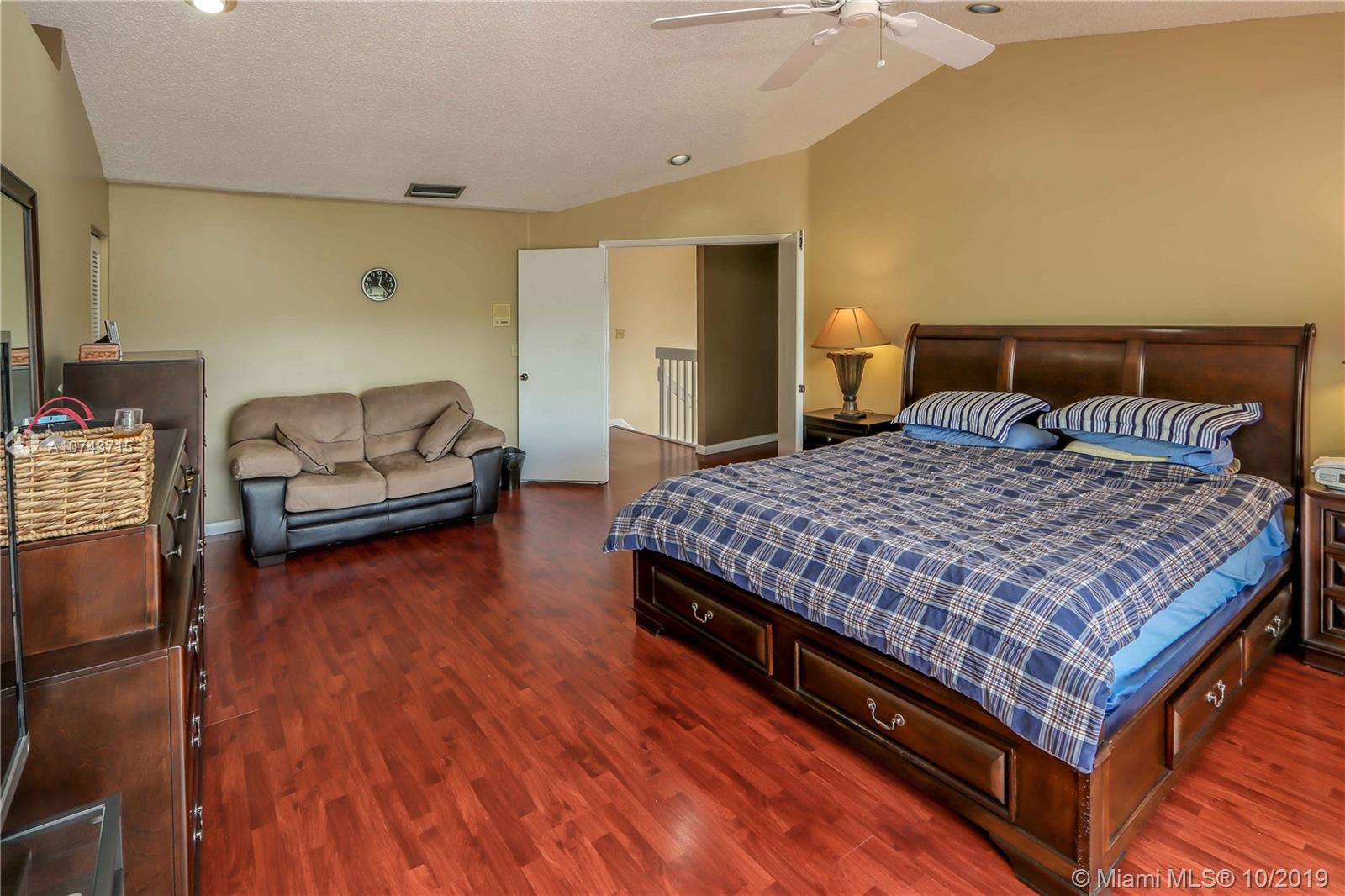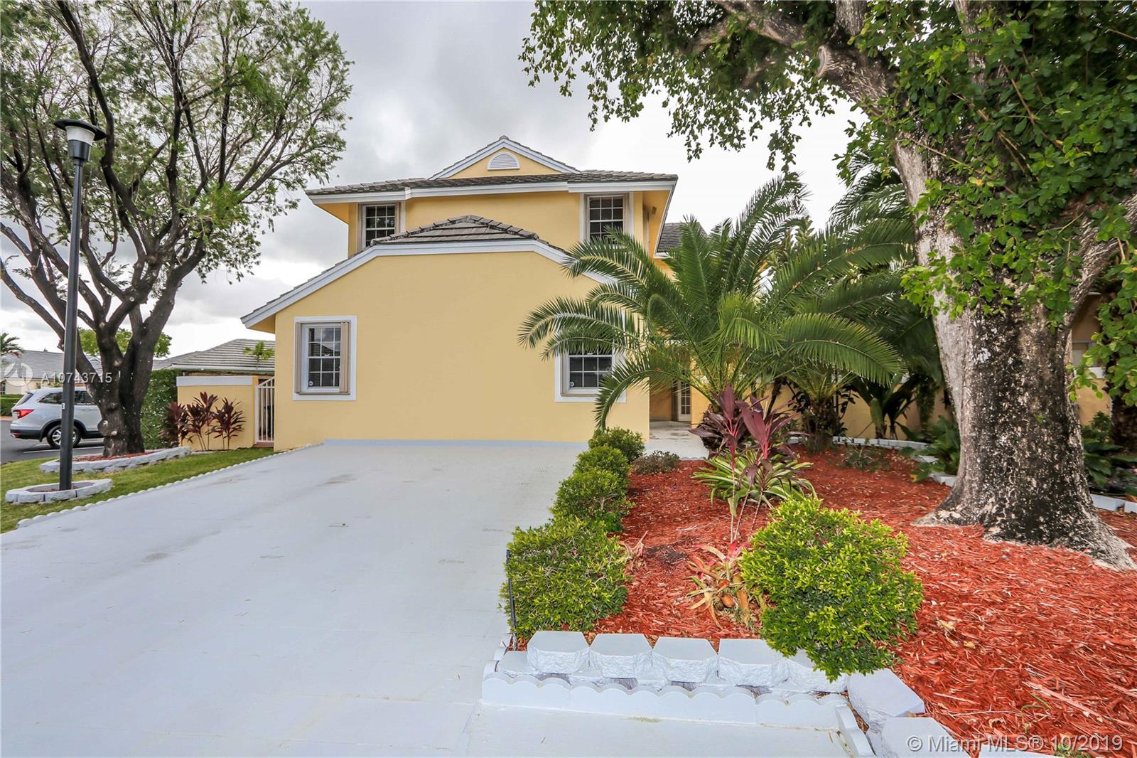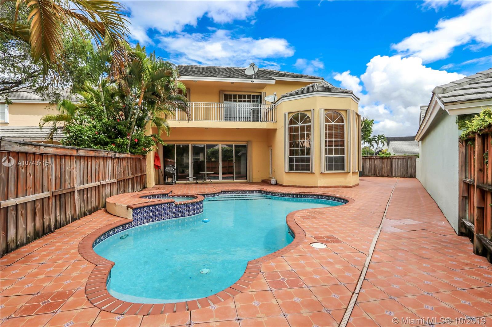 Gorgeous, Elegant & Spacious Lakefront, corner home. Located in the gated community of Doral Woods. Two story, 5 bedrooms, 3 full baths, pool, tile patio, accordion shutters, the two-car garage has been converted into a beautiful family room/Den/Office and an additional bedroom. Huge living room and formal dining room perfect for a large family. Tile floors on first floor and laminate wood on second floor and stairs. Kitchen with breakfast nook overlooking the pool and the lake. Master bedroom with spacious walking closet and bathroom and a balcony with pool and lake view!! Price to sell!