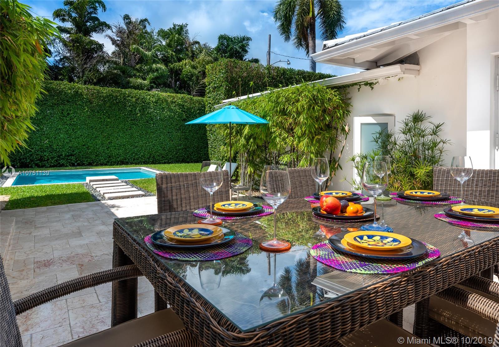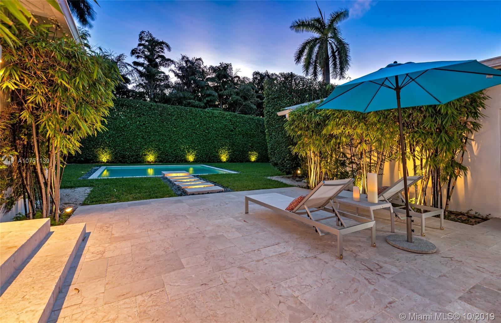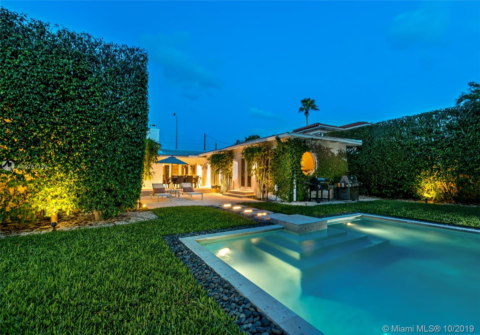 Striking move-in ready MIMO in coveted sought after Mid Beach! This chic designer remodeled gem features roomy 2,311 SF of ample open sunny living spaces. Meticulously finished residence featuring 2 beds, 2.5 baths plus roomy den. Chef’s gas open kitchen with eat-in bar seating, recessed lighting, surround audio system, terrazzo floors, & impact windows/doors. Fall in love with the resort style pool surrounded by manicured landscaping, professional lighting, & 20 ft hedges for the upmost privacy. Gated 8,628 SF oversized corner lot with 2 car garage on 56th street for easy in and out entering and exiting.