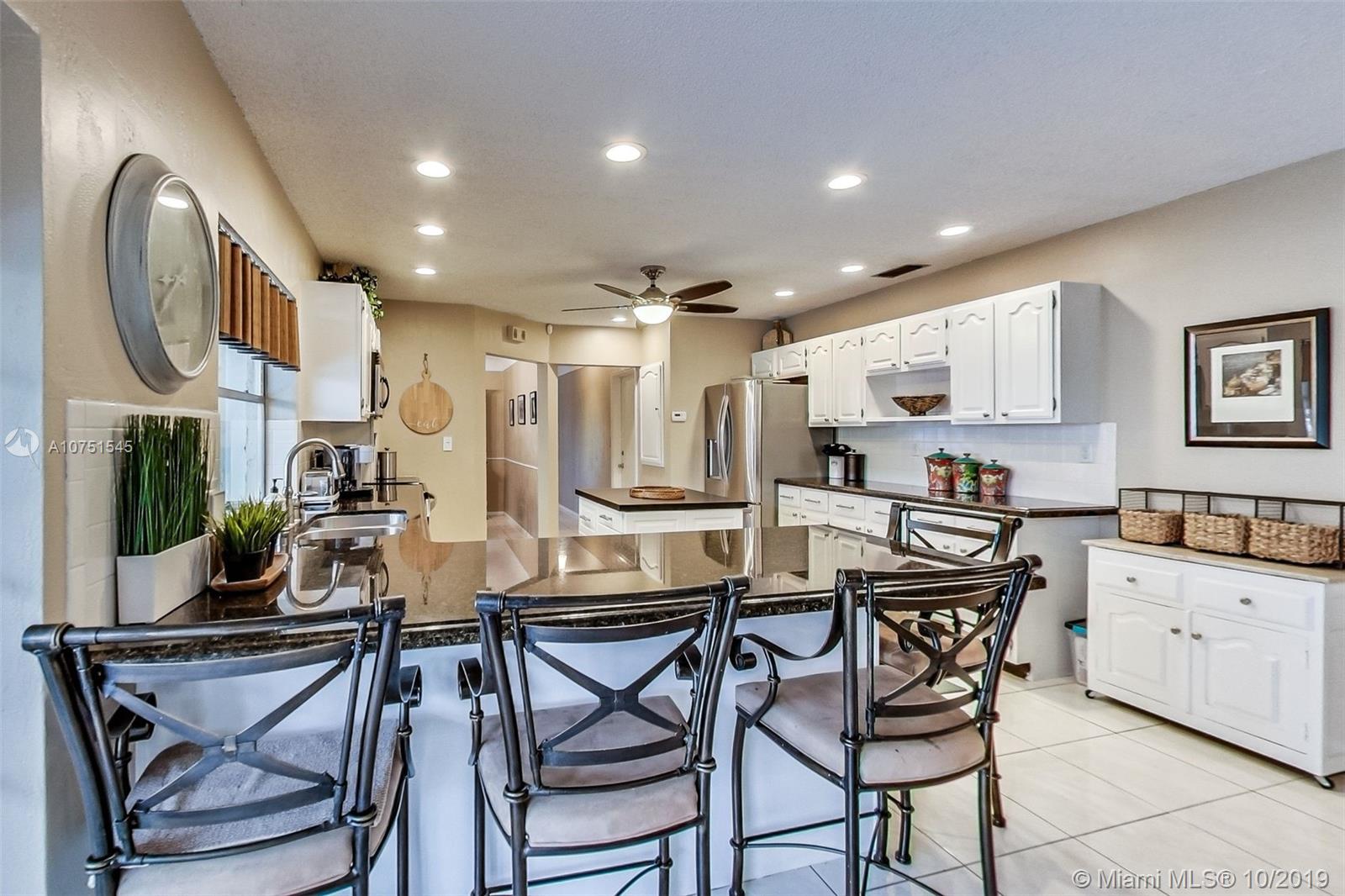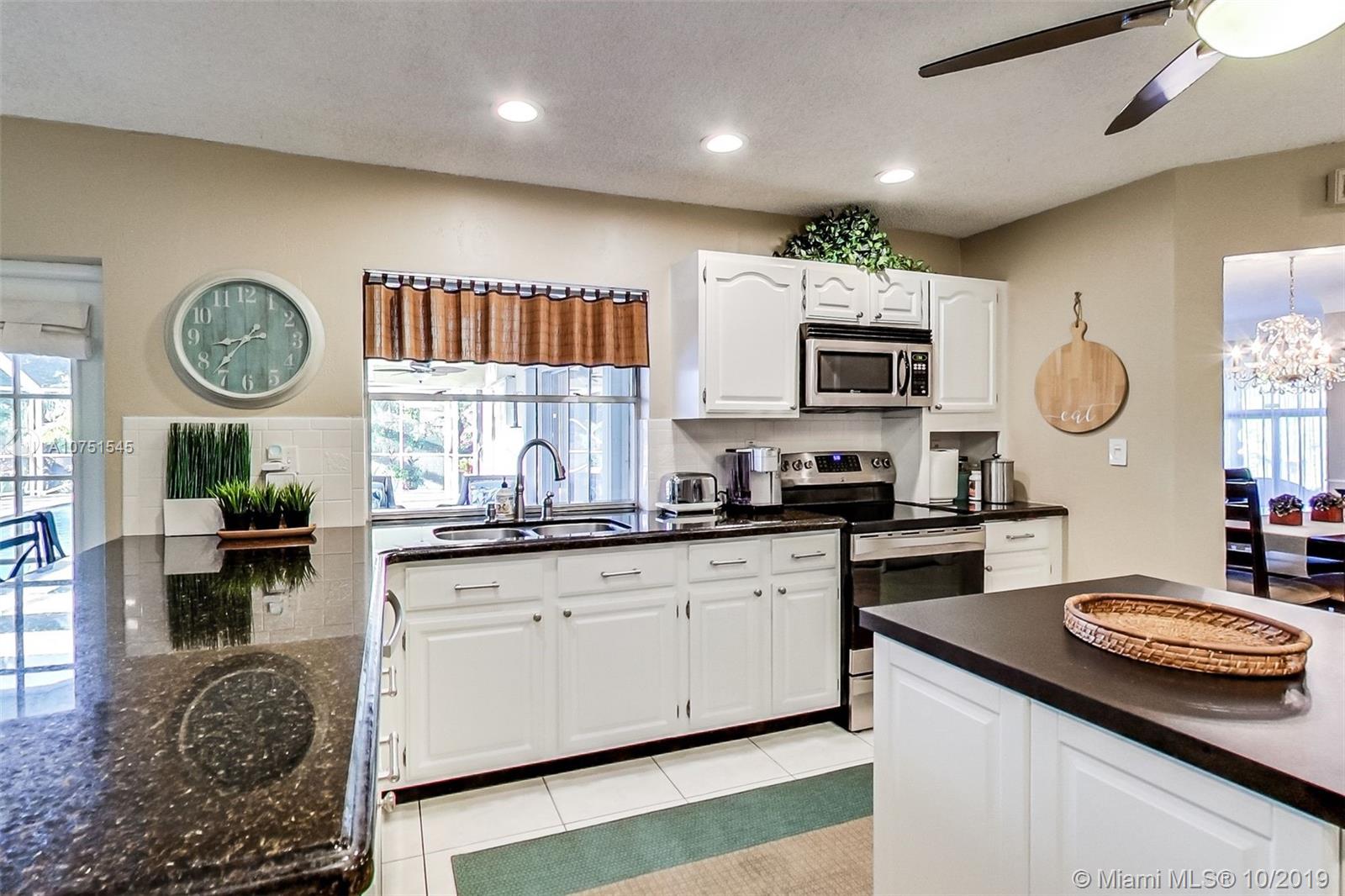 Beautiful home opportunity that will not last! This lg 2709 sq ft, 4 bdrm, 2 bth, pool home is a buyers dream. Nestled in the lovely community of Forest Hills in desirable Coral Springs. This home has 2 lg living areas, one pairs w/ a dining room & the other w/ an over sized updated kitchen w/ stainless steel appliances, clean white cabinets, black granite counter tops & a mobile island. The kitchen overlooks, through a large window above the sink, the gorgeous over sized resort style pool w/ newly sealed pavers & a fully screened in patio. Both living areas & the primary bedroom has direct access to the patio, 2 of which ways are through updated french doors. All of the bedrooms have over sized closets & ceiling fans. Carpet, ceramic tile & fresh paint throughout. Plus many more features.