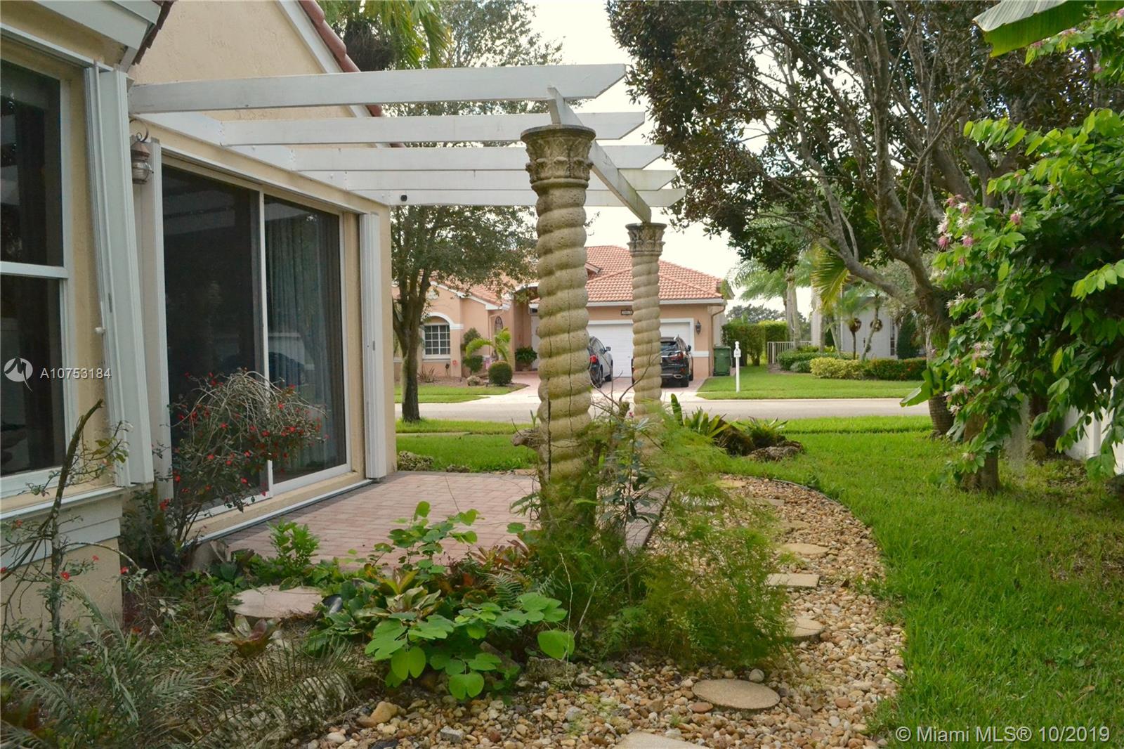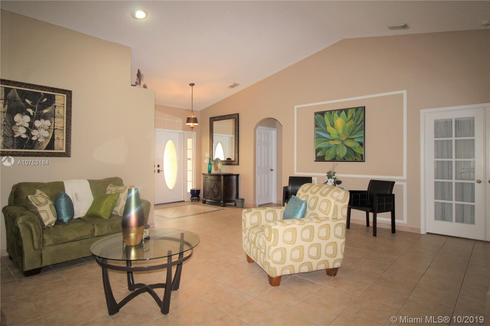 Gorgeous home with Lush Tropical Ambiance, Spacious Floor plan ( see attached in photos ) Oversized Garage with extra space for storage. Roof is only 5 months old ! AC inside unit 1 year old. Amazing Covered terrace, Outdoor kitchen and Beautiful Garden, perfect for Entertaining. Room for a Pool - Oversized Corner Lot 9,432 sq ft. * Accordion shutters throughout the house * Master Bathroom with Bidet. Gated Community with Pool and Gym. Low association fee.
