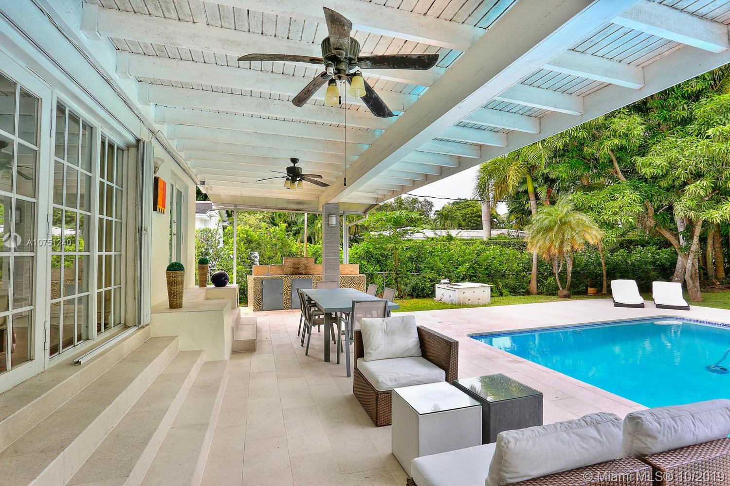 Lovely home in prime South Gables / Grove neighborhood, close to the Grove village center’s galleries, boutiques, cafes and bayfront parks & marinas. Set back on a tree-canopied, oversized lot with lush tropical foliage. Total renovation including (new: impact glass, baths, kitchen, lighting, roof, pool area, 2 HVAC’s, septic system & more). Light-filled living spaces with Brazilian wood flooring and a neutral color palette, create a modern-minimalist feel throughout. Stunning , European-style eat-in kitchen features high-end appliances. Large family room opens to a covered terrace with full outdoor kitchen. Enjoy year-round living & entertaining around the serene pool and ultra-private garden. Minutes to South Miami & Coral Gables renowned shopping & dining venues.