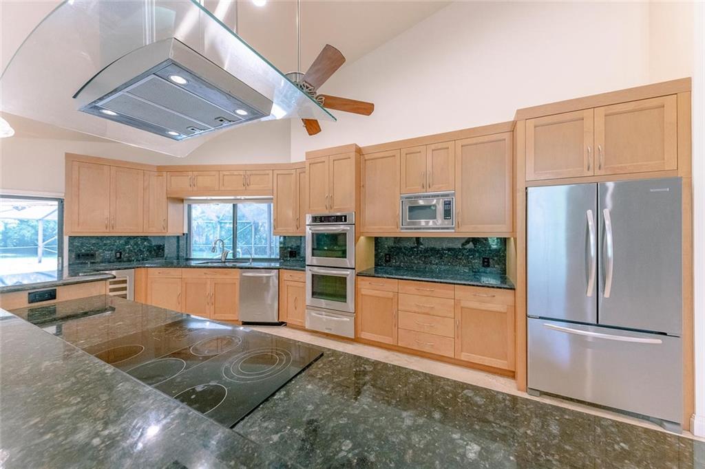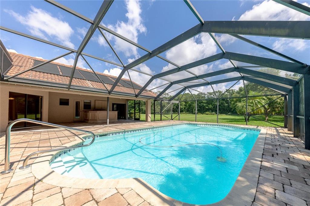 Presenting Cypresshead's best opportunity, this 1+ acre estate should surely make your list! The home has been completely renovated, boasting the following upgrades: diagonally laid 24" Travertine marble floors everywhere except master bedroom; custom built-in office in BR #2 (has a closet) adjacent to master bedroom; all bathrooms completely updated; custom fit shelving in all closets; gorgeous, open kitchen features shaker style custom cabinets, granite counters, stainless steel appliances, built-in double ovens plus warming drawer, & wine cooler; floor-to-ceiling stone fireplace; wetbar with icemaker; separate screened patio off BR #3; hurricane protection--impact & accordion; oversized garage big enough for boat; expansive screen-enclosed paver patio w/outdoor bar & solar heated pool.