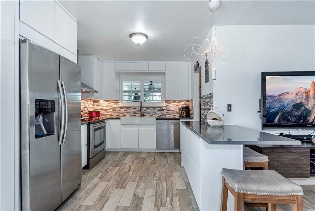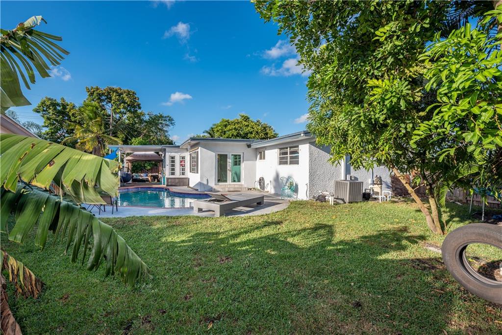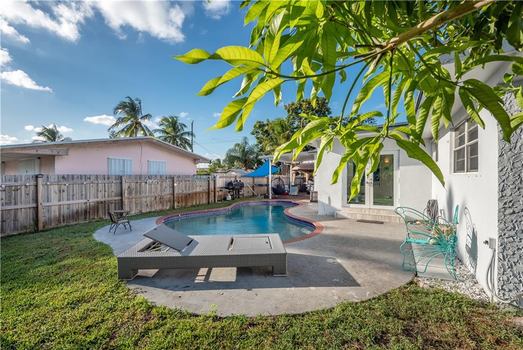 This Beautifully Upgraded Corner-Lot 3/2 Pool Home is Ready For Move-In! Living, Dining and Family Area Open to Updated Kitchen with Stainless Steel Appliances, White Cabinets, Tile Backsplash, Snack Bar, and Designer Lighting. French Doors Lead to Fenced Yard with Pool, Patio with Fire Pit, Fruit Trees, and 2 Storage Sheds. Master Suite Features Sliding Glass to Patio, Wide Walk-In Closet, and Spacious Bathroom with 20-Inch Soaking Tub. All Windows Have Hurricane Protection and Either Plantation Shutters or Shades. Wood-Finish Tile Flooring in Living and Master with Tile in Bedrooms. Stackable Washer/Dryer and Tankless Water Heater. Carport and 4-Car Driveway. NO HOA/NO PET RESTRICTIONS. Close To Great Schools, Shops, and Entertainment.