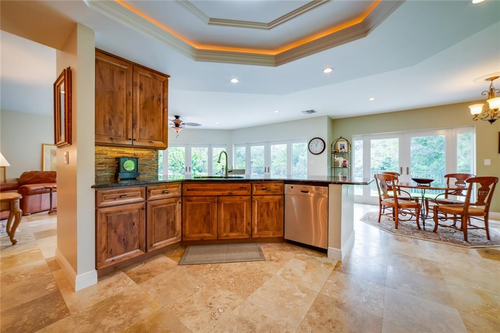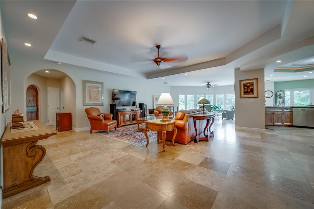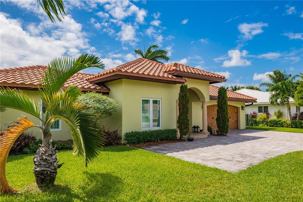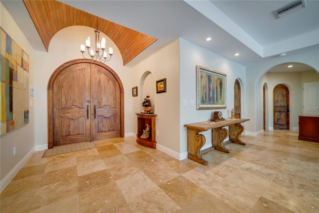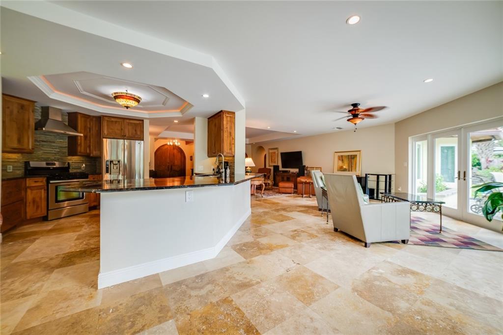 Spectacular lake front home located in Paradise Palms was completely rebuilt in 2012. Interior features include travertine marble flooring throughout, impact windows & doors, large open concept custom kitchen with granite counter tops & stainless appliances / gas range, alarm system, recessed lighting, large laundry room with front load washer & dryer, and gorgeous arched solid wood interior doors. 90' of water frontage offers peaceful & serene views overlooking the lake from the expansive rear paver-stone patio. A buried 500 gallon propane tank feeding the hot tub and tiki-torches may also be used to run a generator. The home was recently painted. 5 car paver stone driveway. Automatic lake fed sprinkler system. Large garage with attic storage. Low HOA of $21 a month