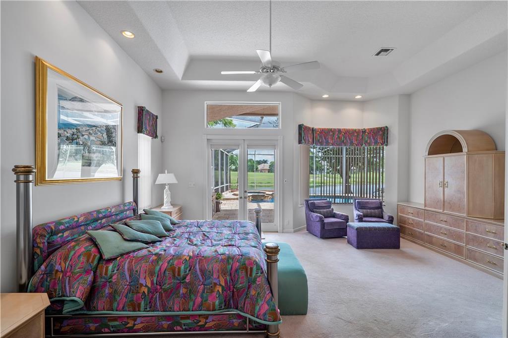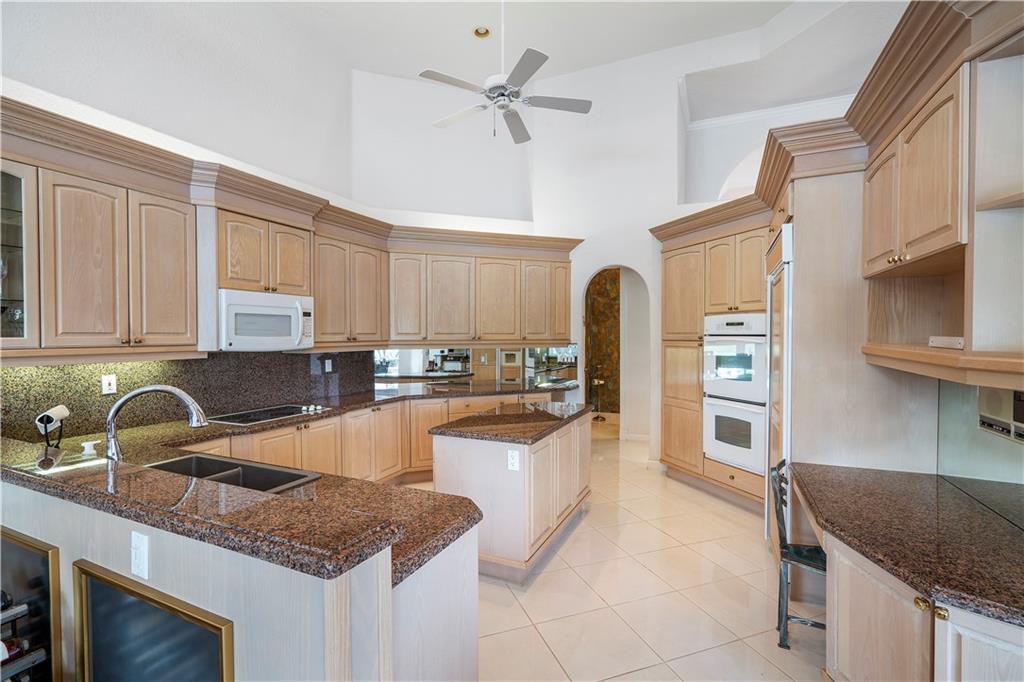 This is the one! Light and bright triple split 5 bedroom 3.5 bath pool home. Unbelievable value under 600k! Large open floor plan that looks out to the pool with natural travertine plus lake and golf views that will take your breath away! Other amazing features include a wet bar, fireplace, new outdoor kitchen and newer roof. Guard gated community with optional golf membership.