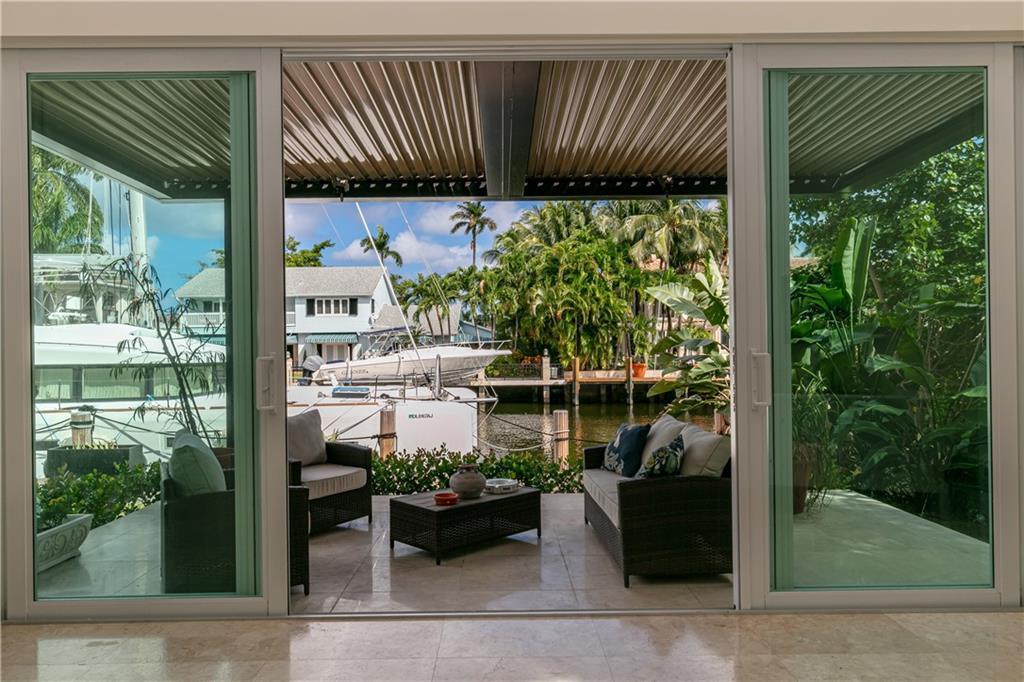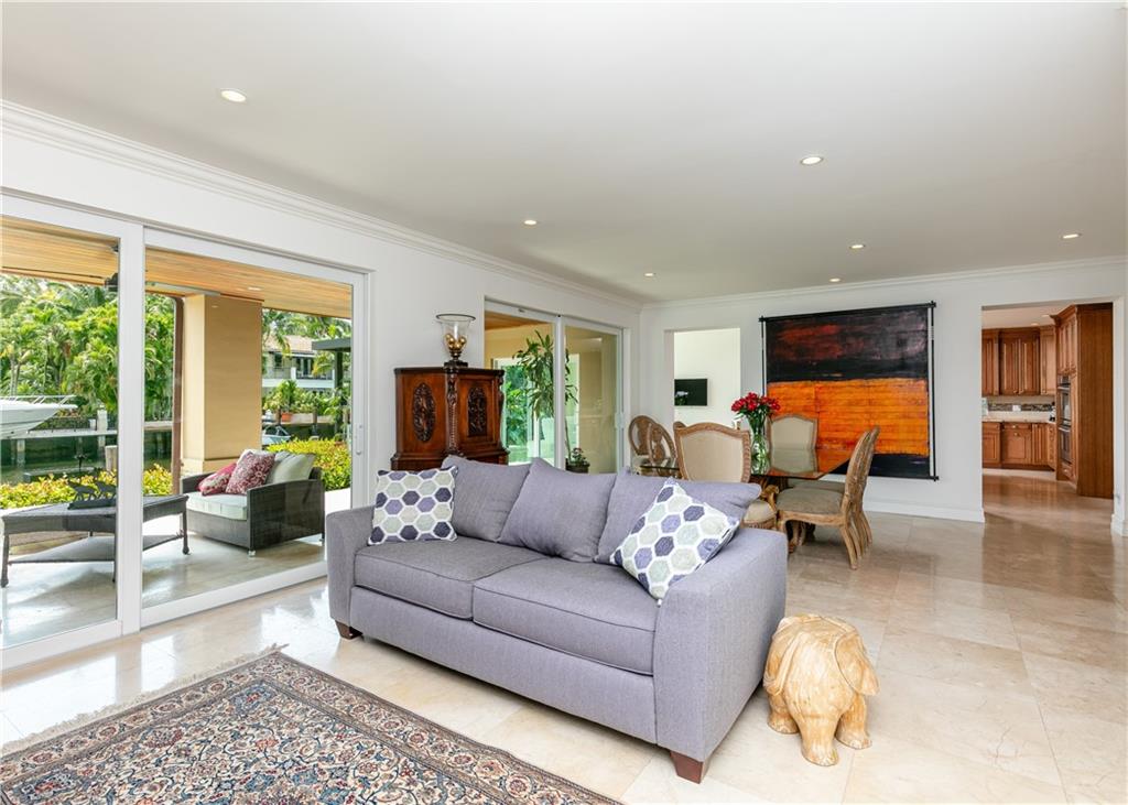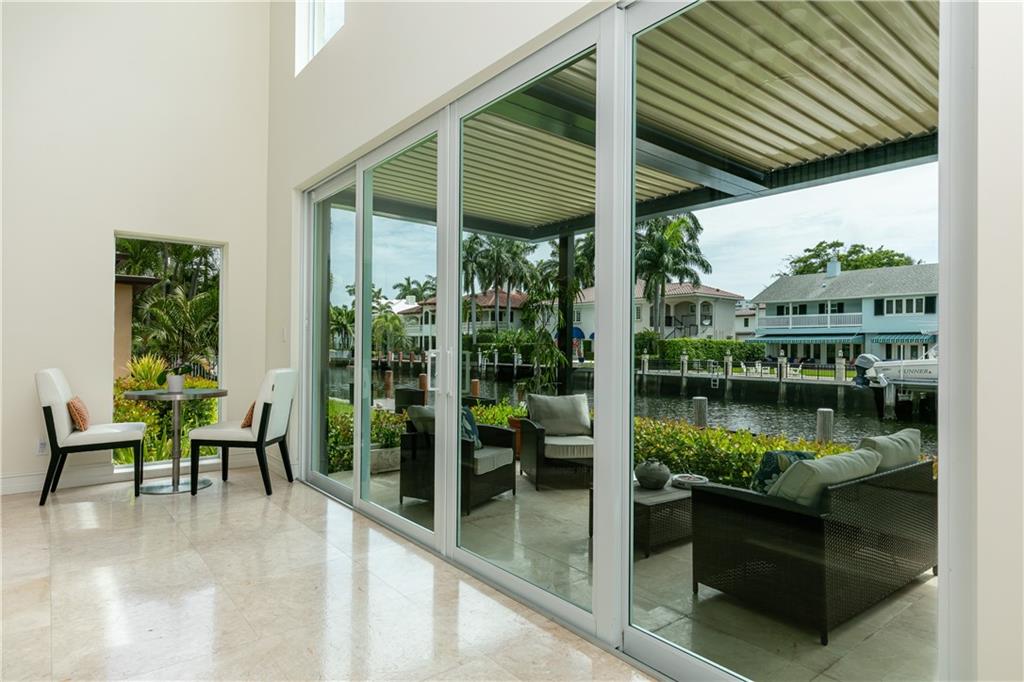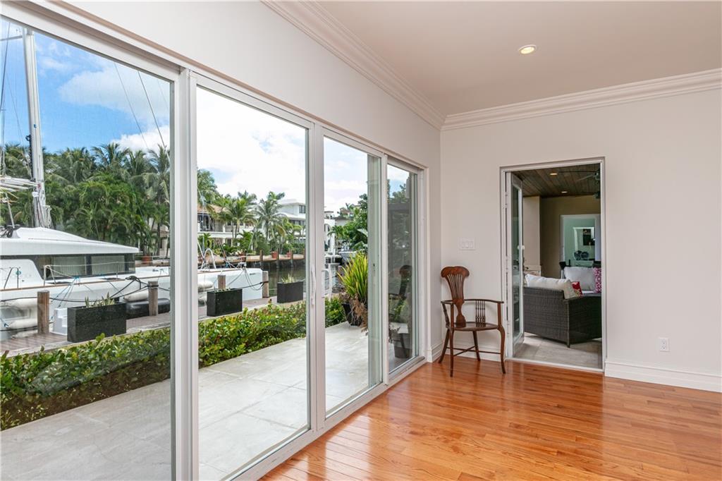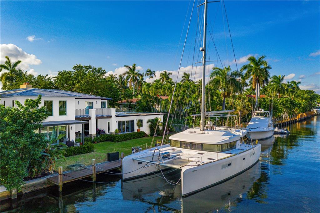This property is one of the lowest price per square foot homes in Las Olas Isles. It is a beautiful Modern waterfront home on 100 ft waterfront. Fast/easy ocean access only 600 ft to intra coastal and new river. TRADITIONAL FLOOR PLAN, 6 bedrooms 5.5 bathrooms home with abundant water views. New built (2016) addition includes family room with 20 ft ceiling, large loft overlooking family room, dual island kitchen with Thermador gas range; walls of glass contemporary design open to multiple lanais; massive 1st floor master suite; 2nd floor master suite too! Marble and hardwood floors throughout; large secondary bedrooms plus lots of storage; Easy stroll to beach and shops.