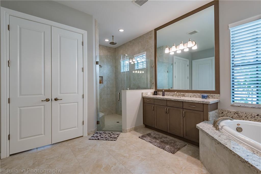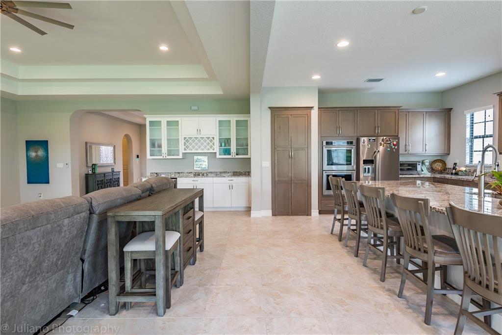Turn Key rare Cheshire model. 4 bed 3 1/2 bath home with 3 car garage in Watercrest gated community. Features vaulted ceilings, stunning extra large island with granite for entertaining. kitchen with gas range and double ovens. New, energy efficient, all impact glass windows and doors. Porcelain tile throughout, no carpets. Walk-in kitchen pantry, LED lighting, Nest thermostats and wood blinds. Extended Driveway.Large covered lanai with outside Tv hook up. Custom bar with granite, and tv wall mount with subway tile backslash. Upgraded gas front load washer and dryer. Grand master suite with built in rainfall shower head. Resort style amenities including the lakeside Pierhouse Club; fitness center, zero edge entry pool, splash pad, jungle gym, tennis, basketball, dog park and more.