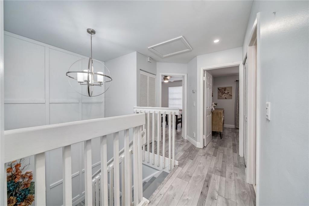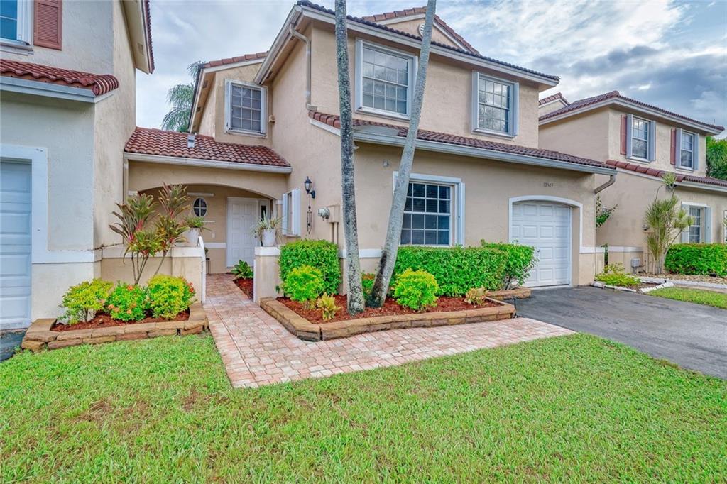 A Must See! This beautifully updated 3 bed/ 2.5 bath home welcomes you as you enter past the charming garden and seating by the front door and hosts a seamless elegant flow between the spacious living room, large gourmet kitchen, half bath, and the fenced in backyard space. Beautiful accent wall by the stairs leading to the second level. Large bedrooms and gorgeous updated bathrooms upstairs. Tile flooring throughout the first floor and laminate flooring upstairs. 1 car garage, driveway, and plenty of guest parking. Community pool and playground. Basic Cable/ Internet are included in HOA fee. Close to restaurants, shopping centers, hospitals, parks and recreation centers.