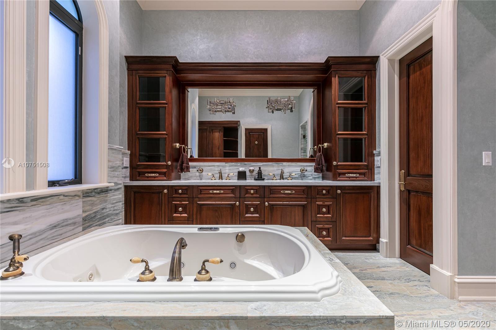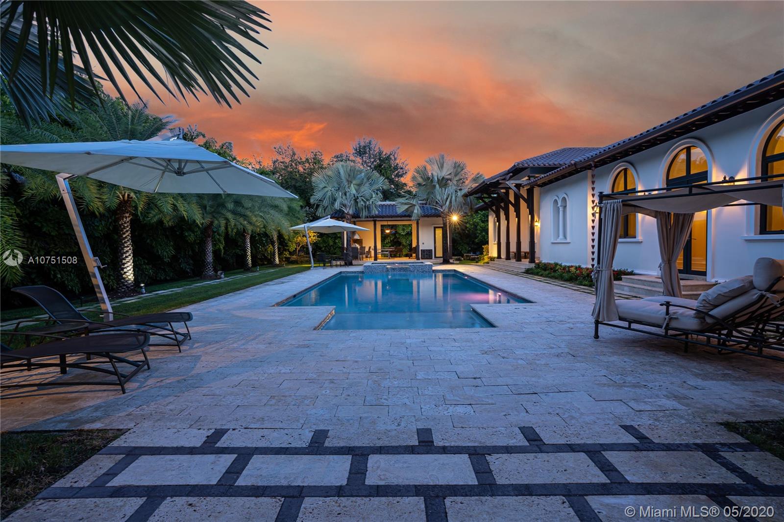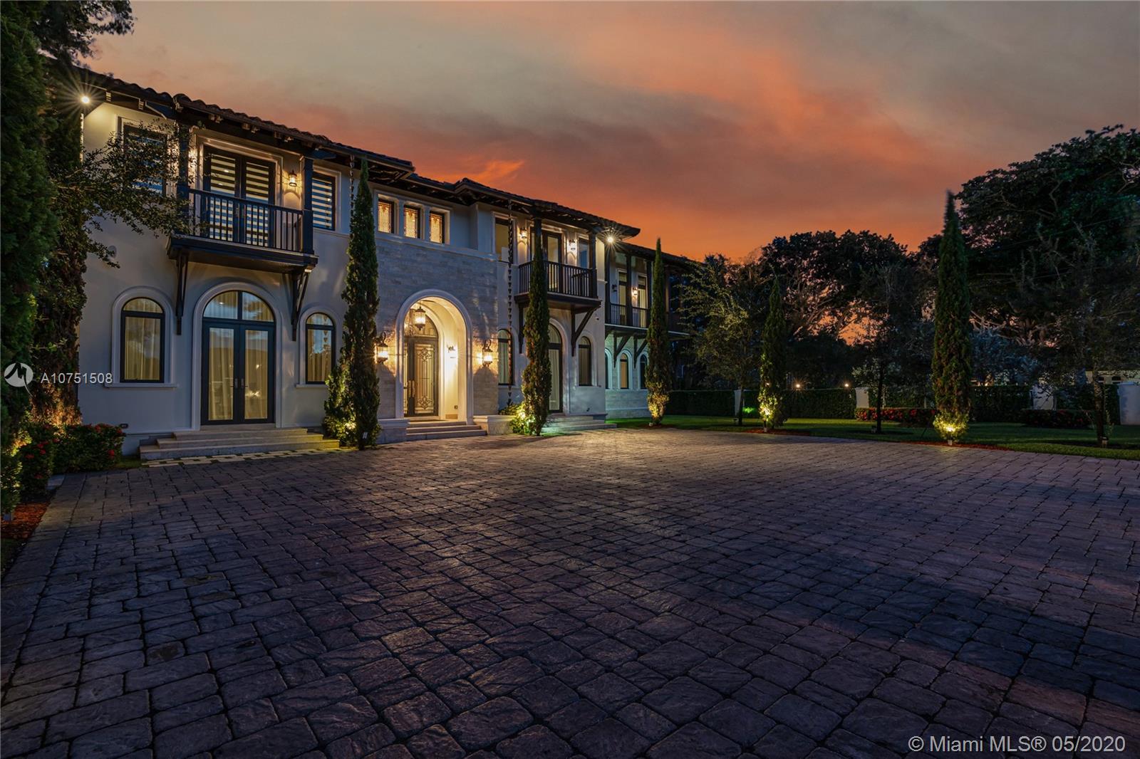 The Italian villa located on Pinecrest's best street . Enjoy the impeccable high end finishes in this expansive 8BD/9 + 1 BA 11,400 SF custom built home. The formal entry leads to a winding stair case. An immaculate wine cellar, elevator, library/office & open kitchen/ family room. Marvel in venetian plaster walls, vaulted ceilings, intricate marble/stone details & views to the pool, spa & lushly manicured grounds. Contemporary home comprised of 2 marvelous master suites( Yes 2 master bedrooms) and 5 in suit bedrooms with walk in closets. Close to Pinecrest Elementary & A+ schools. Walking distance to Gulliver Preparatory School. Generator ready. 4 car garage (840 sq ft.) 3 separate and automated gated entrances. Heated pool and a fantastic outdoor kitchen.
