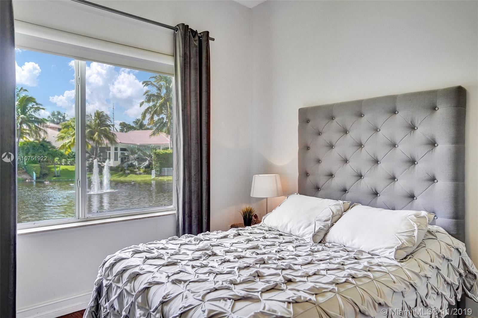 DO NOT MISS THIS GREAT OPPORTUNITY TO LIVE IN THIS RESORT LIFESTYLE COMMUNITY! THIS HOUSE HAS A BREATHTAKING VIEW! This beautiful one-story home sited upon a cul-de-sac waterfront lot with fountain view. The extra-large fenced lot is perfect for entertaining. Impact windows, accordion shutters, motorized awnings, vaulted ceilings, SS appliances, crown moulding, contemporary lighting, all the bedrooms have solid surface though-out floors, custom made finished closets, wood doors, custom shades and much more. HOME PROTECTION PLAN included. Three car garage with epoxy flooring and storage cabinets. This gated community offers a clubhouse, tennis course, playground, gym, basketball court and a resort-style pool. Located close to shopping and walking distance to worship. A must see!