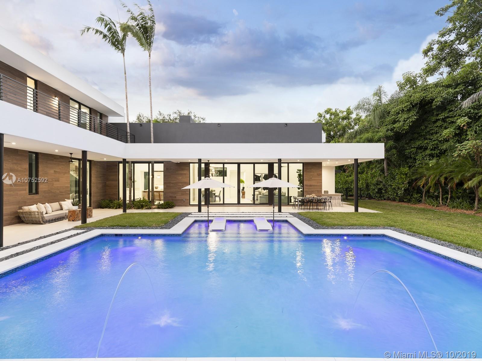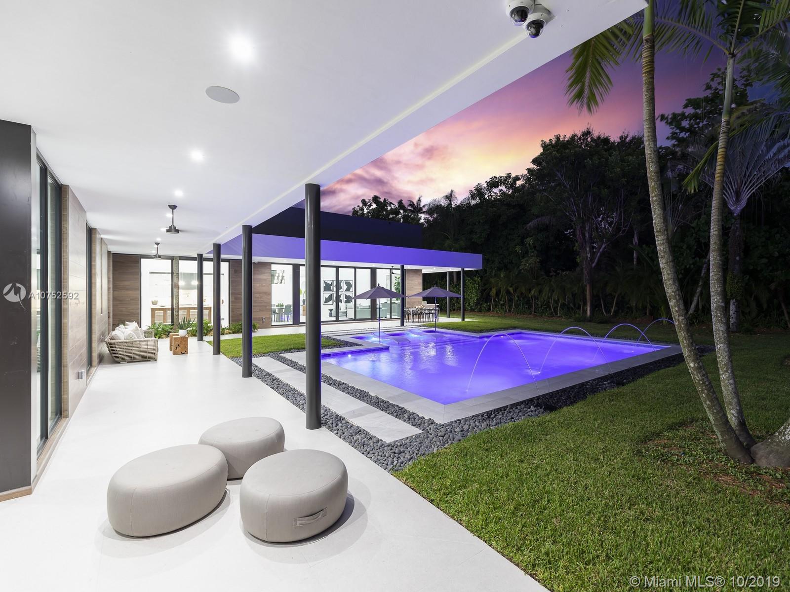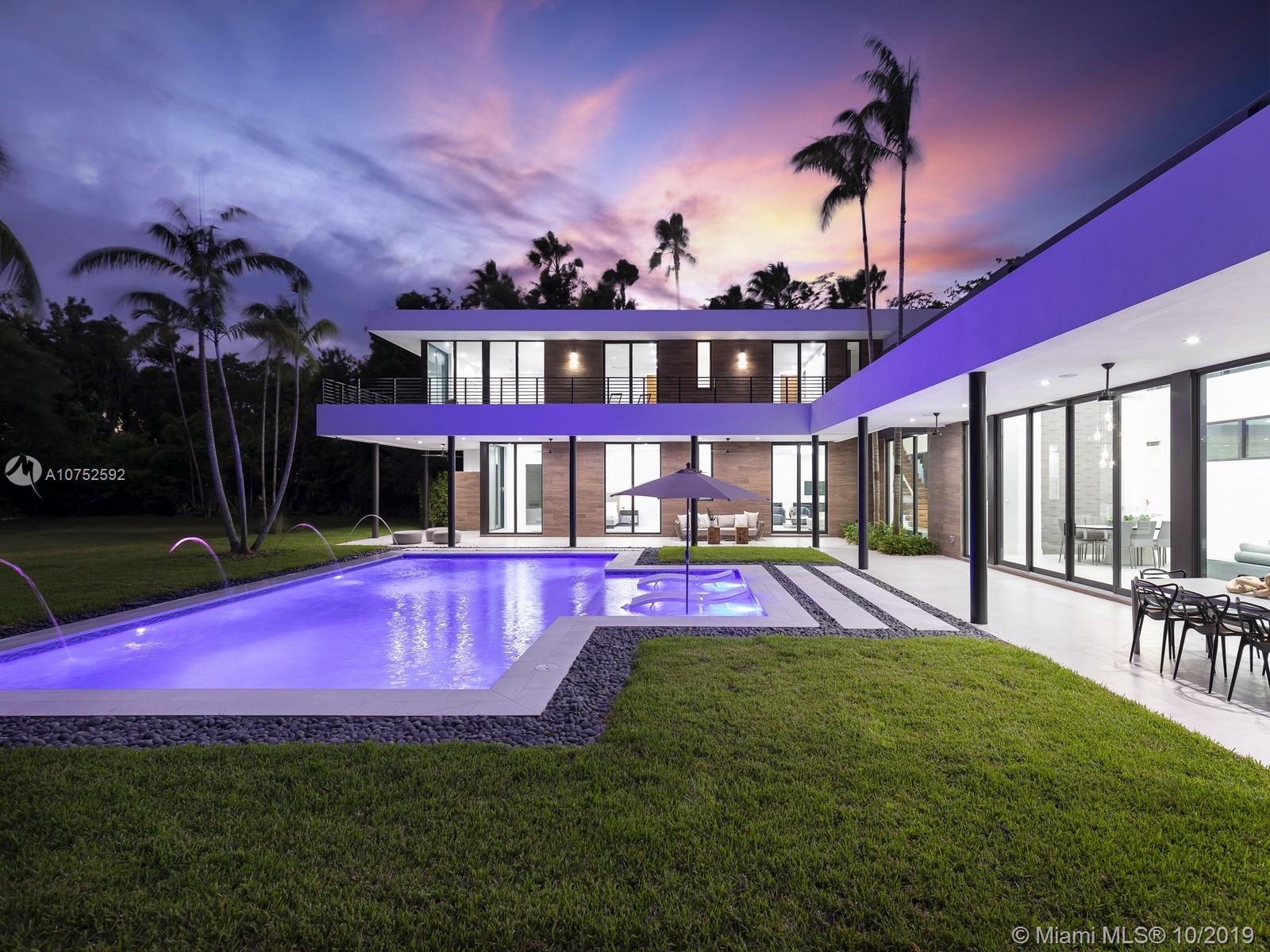 Brand new modern estate located in Pinecrest. Greeted by a pivoting door leads to a gorgeous home offering a boundless flr plan w/exquisite finishes. The grand living & dining rm offer double height ceilings & endless outdr views by its oversized flr to ceiling high impact windows & drs. Master suite on the ground level w/sitting area, walk-in closet, a gorgeous mastrbth w/double shower, floating tub & double vanities. Floating staircase leads to 3 upstairs bdrms, all opening to an expansive balcony. Amenities incl: Concrete Roof, designer kit w/Miele appl, incl gas range & wine cooler. Porcelain & wd flrs throughout, Smart Integration, Resort Style Pool w/Multicolor Jets, Summer Kit, 3 car garage, Gated, natural gas, generator ready. VISIT OUR PROPERTY VIDEO: https://youtu.be/f_J2CJmaprQ