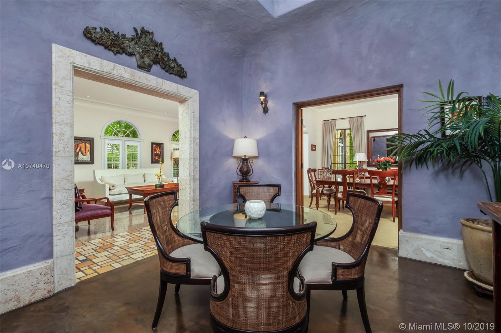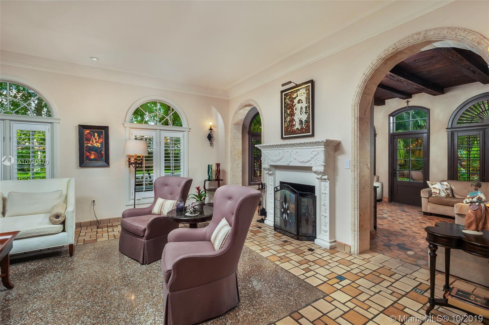 The grandeur of this historic gem spreads throughout the 4,326 sf of living space. An impressive rotunda entry showcases a winding marble staircase. Detailed wood scroll and mill work add elegance to the 4 bedroom and 6 bathroom layout. Adding to the splendor are Moroccan sconces, high beamed ceilings, arched windows, and a carved stone fireplace. The lavish master bedroom and bathroom with custom tile are a delight, and the upgraded kitchen has modern features that complement the unique design. Relax in the sunroom or entertain guests in the spacious formal living and dining space. A game room with pool table leads outside to a lush private garden that surrounds an inviting stone patio and pool. Located in the heart a Coral Gables, downtown City Beautiful is a short walk away.