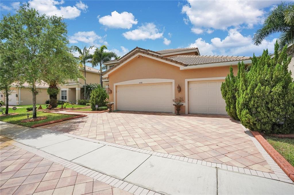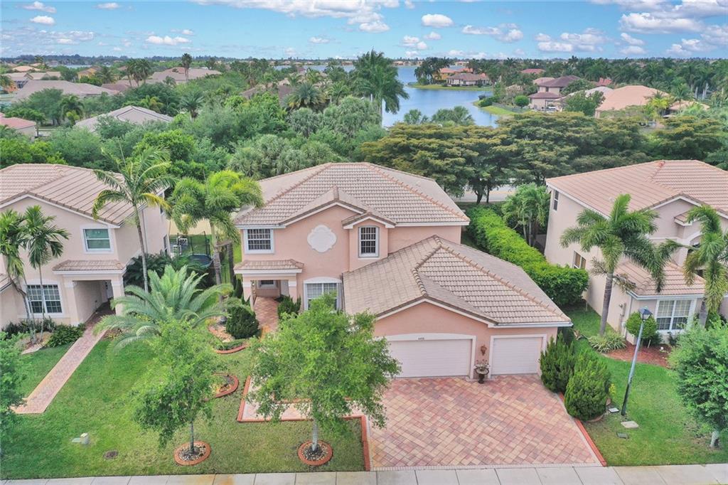 PRICED UNDER MARKET! Great opportunity for large family. Fantastic upgraded home featuring tile flooring throughout first floor, upgraded kitchen cabinetry, granite counter-tops, stainless steel appliances, crown molding throughout entire home, 3-car garage with tiled flooring, alarm system, security cameras, fenced backyard, accordion hurricane shutters, and more. Amenities offer magnificent clubhouse with tennis, pool, overlooking huge lake, 24/7 security, guard gated, and much more. Easy to show!