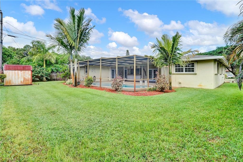 Amazing home for entertaining, this 4 bed 2 bath home along with an office is ready for occupancy. This home features an open floor plan, laminate flooring and tile throughout and the safety of Accordion shutters that closes off the house from the patio. Pass through window within the kitchen to the pool/enclosed screen porch patio makes it easy to move food and drinks around. Walking distance to Elementary and Middle school. Very easy to show.