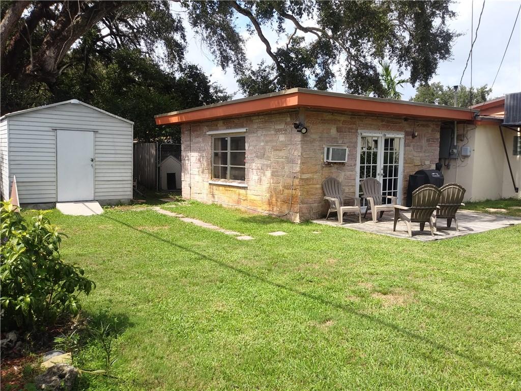 Adorable extremely well maintained and cared for move in ready bungalow style home in quiet neighborhood. Mexican tiled floors throughout, updated kitchen with island, huge family room with exposed beam ceilings and French doors leading to wood deck and completely fenced backyard. Very spacious air conditioned shed with tile floors, dog run area, and fully fenced backyard and very large utility room. House is outfitted with hurricane shutters and is beautifully landscaped. Roof 2015, A/C 2016, Hot Water Heater 2017, flat roof over family roof resealed yearly.