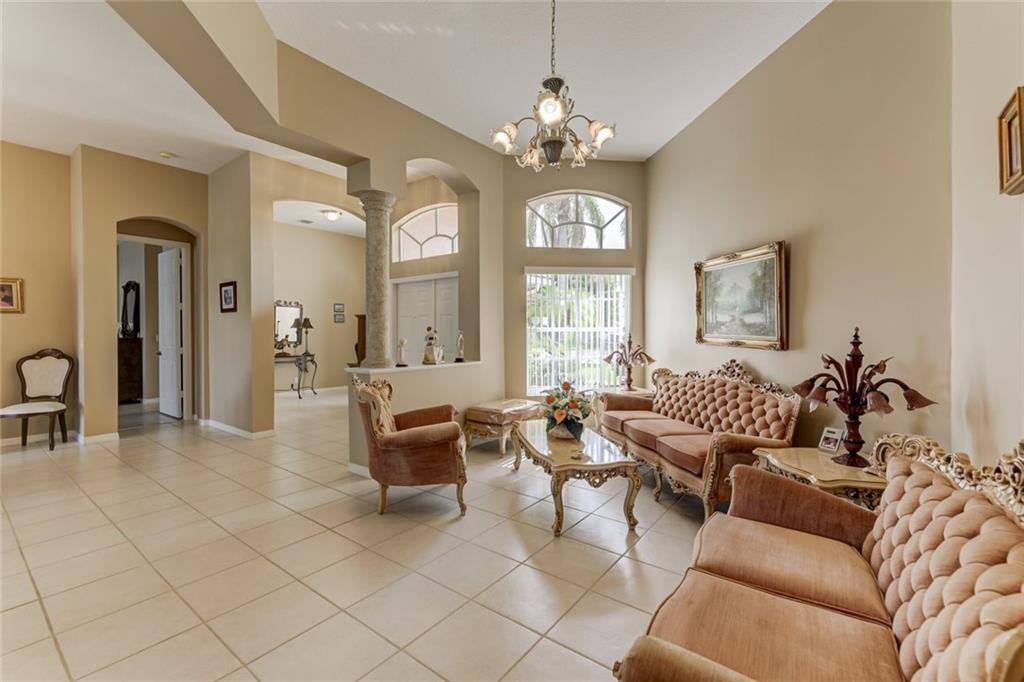 Stunning move-in ready, lakefront home available in desirable, gated Coral Creek subdivision. Luxe architectural and design details include gleaming ceramic tile, vaulted and tray ceilings, arched doorways, custom windows and a variety of updates and upgrades throughout this open-concept space. Hurricane shutters offer additional security. Expansive kitchen with Corian counters, pantry, and ample cabinetry with two-sided bar. Elegant and contemporary owner’s suite with walk-in closet and spa-like bath featuring separate vanity spaces, separate bath and shower, and water closet. Soaring lanai offers ample space for seating and outdoor dining with a tranquil lake view. Bonus room for office or 5th bedroom plus cabana bath. Three car garage, laundry room with utility sink, and so much more!