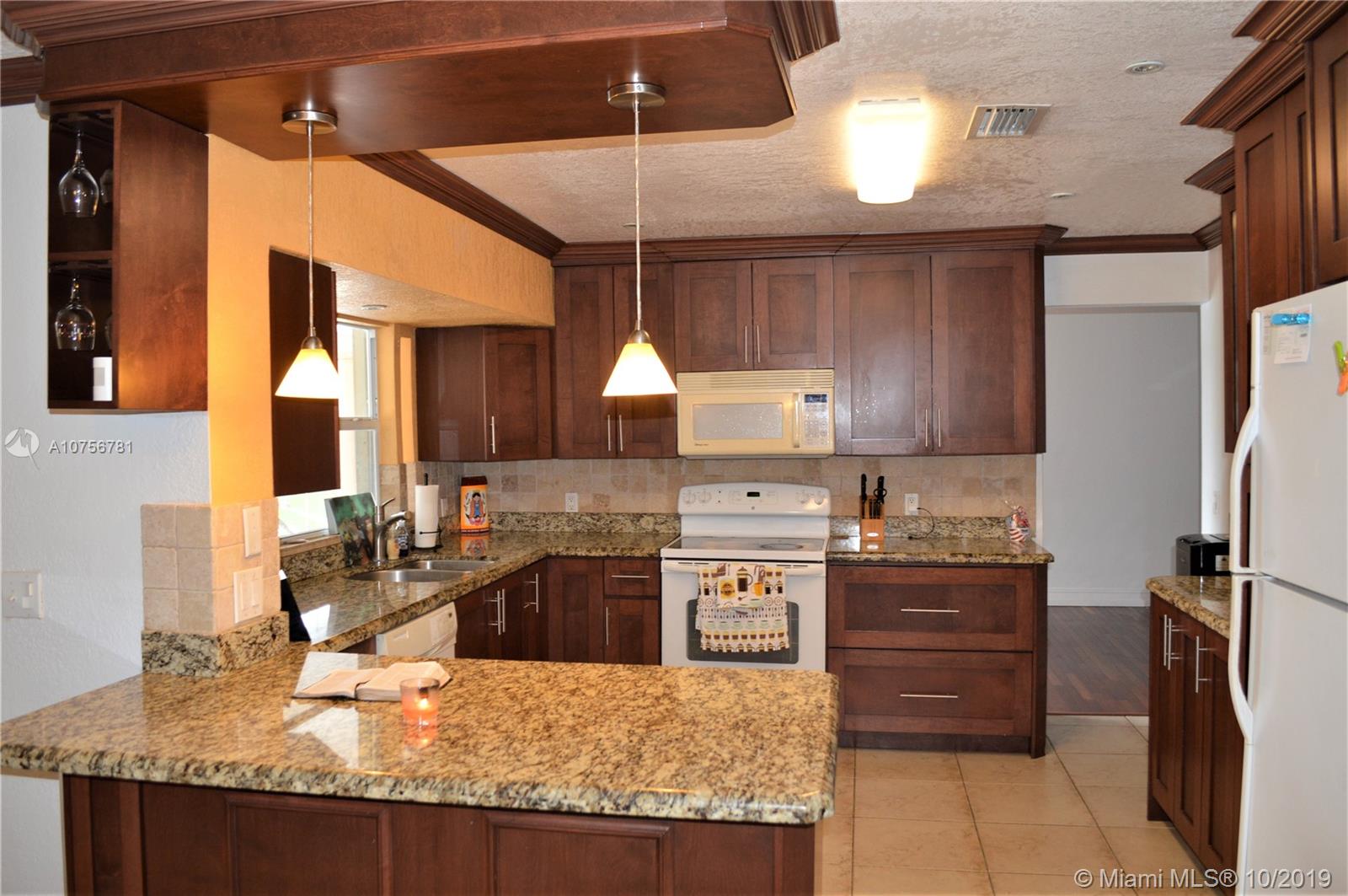 Beautiful 4 bedroom 2 bath Waterfront home in the heart of Pembroke Pines. Lovely home with updated kitchen with granite counters, wood cabinets, updated master bath, custom shelving in master walk-in closet, along with cherry wood flooring and tile throughout. Kitchen overlooks beautiful fruit tree yard and lake out back. Home is very centrally located between I-75 and Florida turnpike as well as dining and shopping. Make an appointment to view this special home.