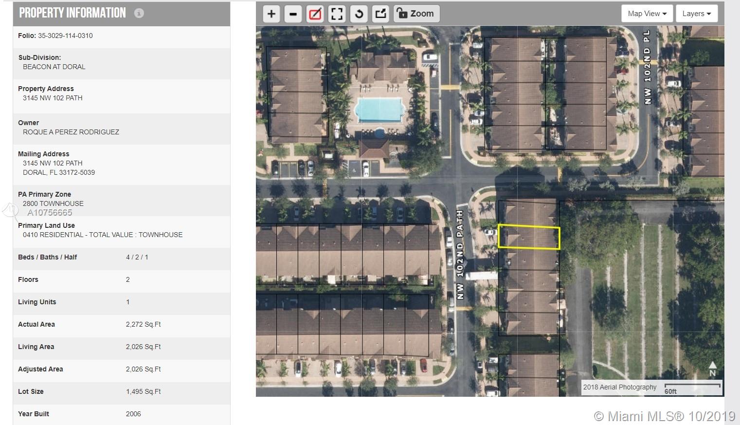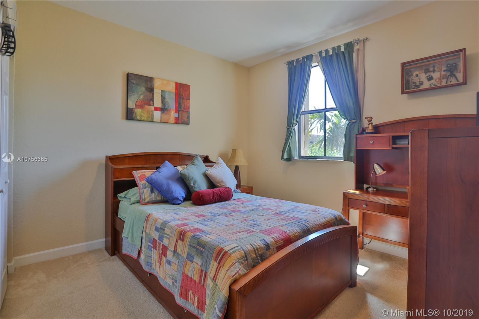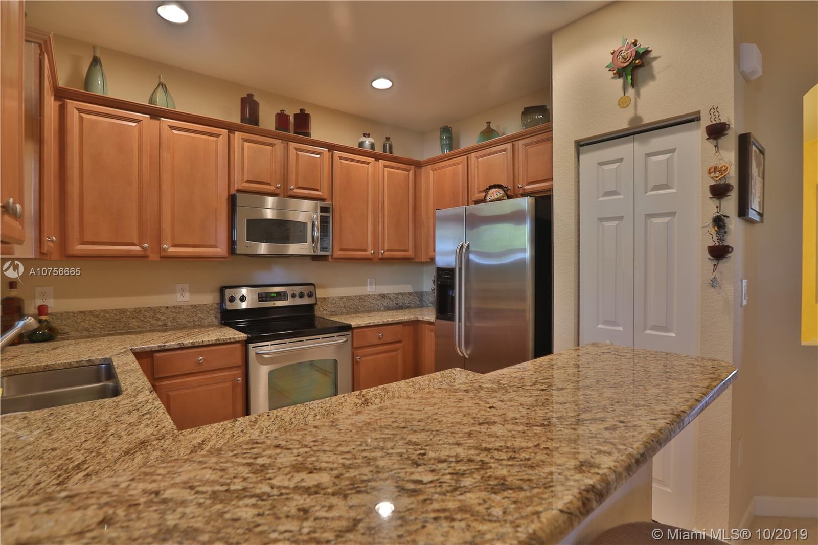 This two story home has a very comfortable layout for any family with generous storage around the property and a beautiful kitchen with granite counter and wood cabinetry. The home features a very large master bedroom and master bathroom with double sinks, bathtub, separate shower and toilet room. The home is located at Milan, one of the most quiet and safe neighborhoods in Doral. Gated community, 24 hrs surveillance, security patrol, HOA including exterior maintenance, plenty of guest parking, new pool and gym. The Property is move-in ready.
