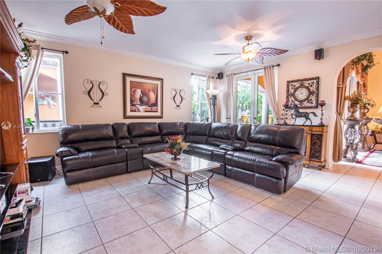 This admirable and spacious 4 bedroom/3 bathroom (+ Full outdoor Pool bath) home is a remarkable Spanish Mediterranean style, with 10ft. ceilings throughout all bedrooms. Granite counter tops and updated stainless steel appliances in the kitchen. One bedroom and bathroom located on the 1st floor, perfect as an office or in-laws quarters. Standing on a corner lot, boasting over 8,000 sq.ft., this property has enough space for a Boat or RV/Camper on either side. Tropical oasis Heated pool, with Salt water features and full outdoor kitchen/bar with gas range included. A large master bedroom with an en suite balcony overlooking the pool and walk in closets. 2 Car garage. Extremely low association fee paid yearly. Walking distance to an A+ rated School. Furniture Can be included in the sale.