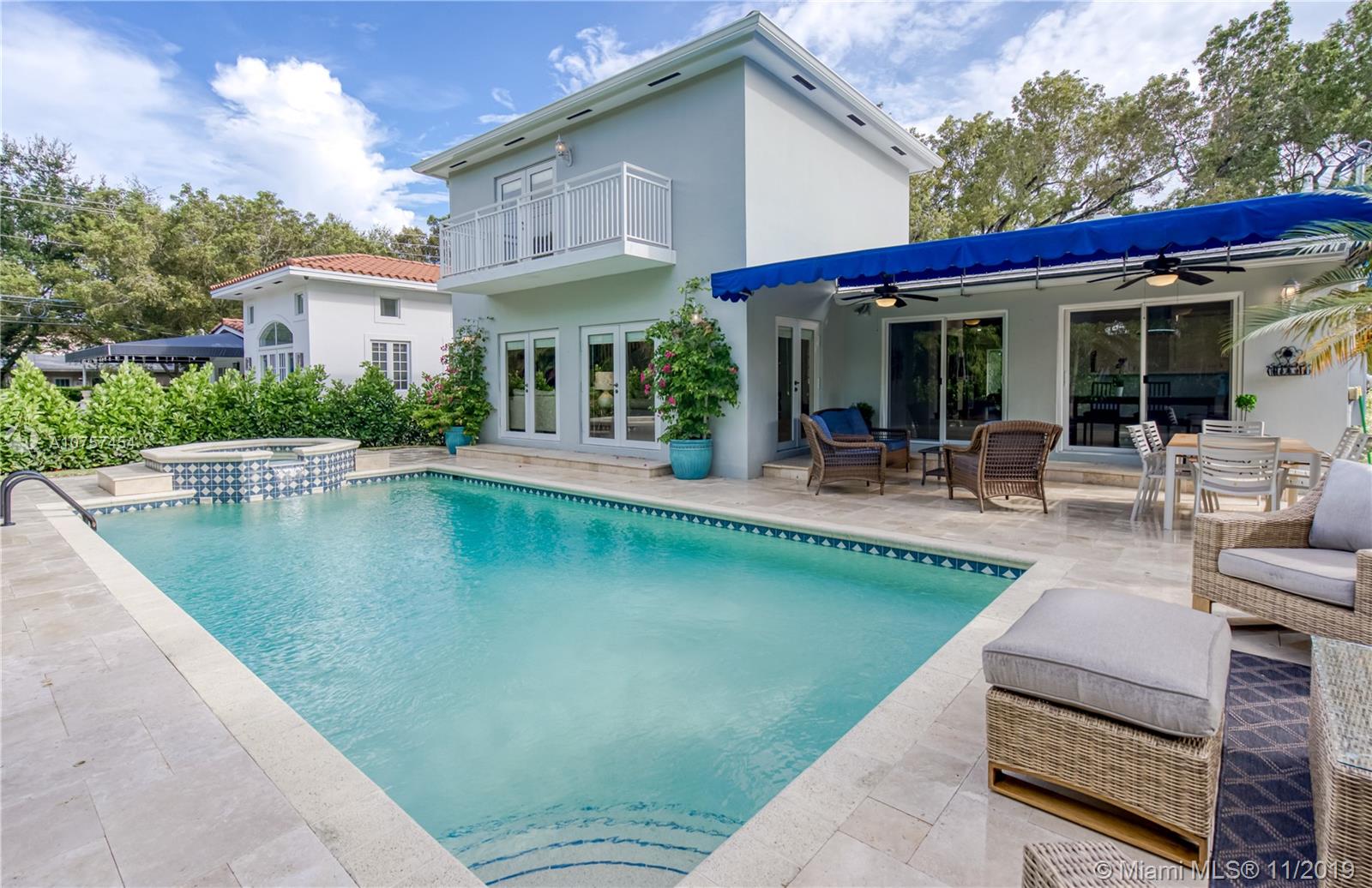 Beautifully renovated 4 bedroom home on quiet and desired Coral Gables street. The house has a bright open floorplan, overlooking the gorgeous pool area and lush backyard, perfect for entertaining. The recent renovations include new modern kitchen and bathrooms, impact windows, roof, AC unit and beautiful travertine driveway and patio. Great curb appeal and minutes away from Coral Gables golf course, restaurants, and more!