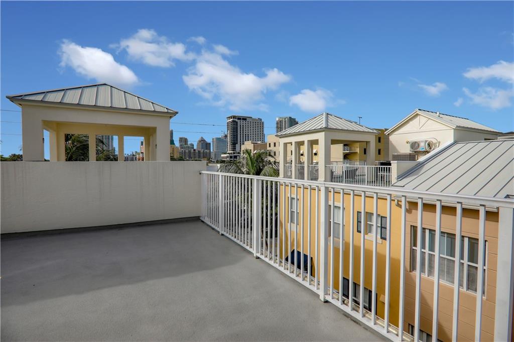 Enjoy the ease and convenience of Victoria Park living in this spacious 3/3.5 townhome with 2-car garage at The Ellington. This elegant community of 50 townhomes nestled in the heart of historic Victoria Park allows city living with a casual South Florida vibe. Walk to dining and entertainment, banking and grocery stores, salons and fitness centers. Walk up entry from the quiet street or access private 2-car garage via gated entry. Enjoy entertaining in open kitchen with wood cabinets and granite countertops. Samsung SS appliances and GE gas stove. Experience fantastic sunrises & sunsets from rooftop with city and beachside views. California closet in master. Stairs & upstairs all wood floors. Zoned Harbordale Elementary & within preferential lottery zone for Virginia Shuman Young.