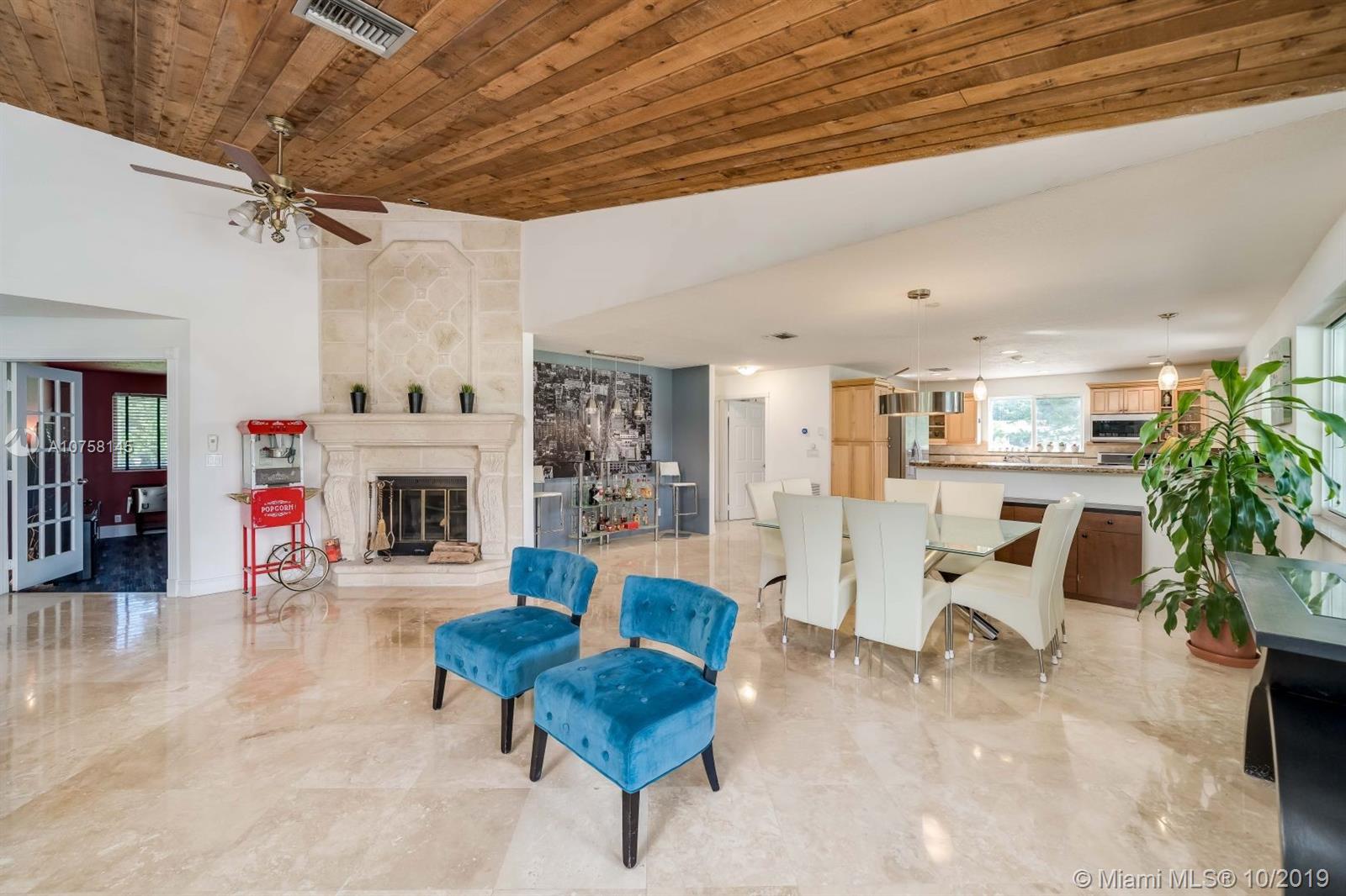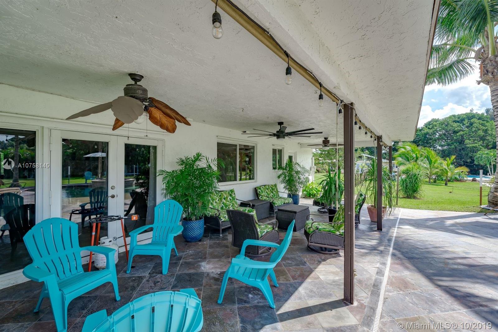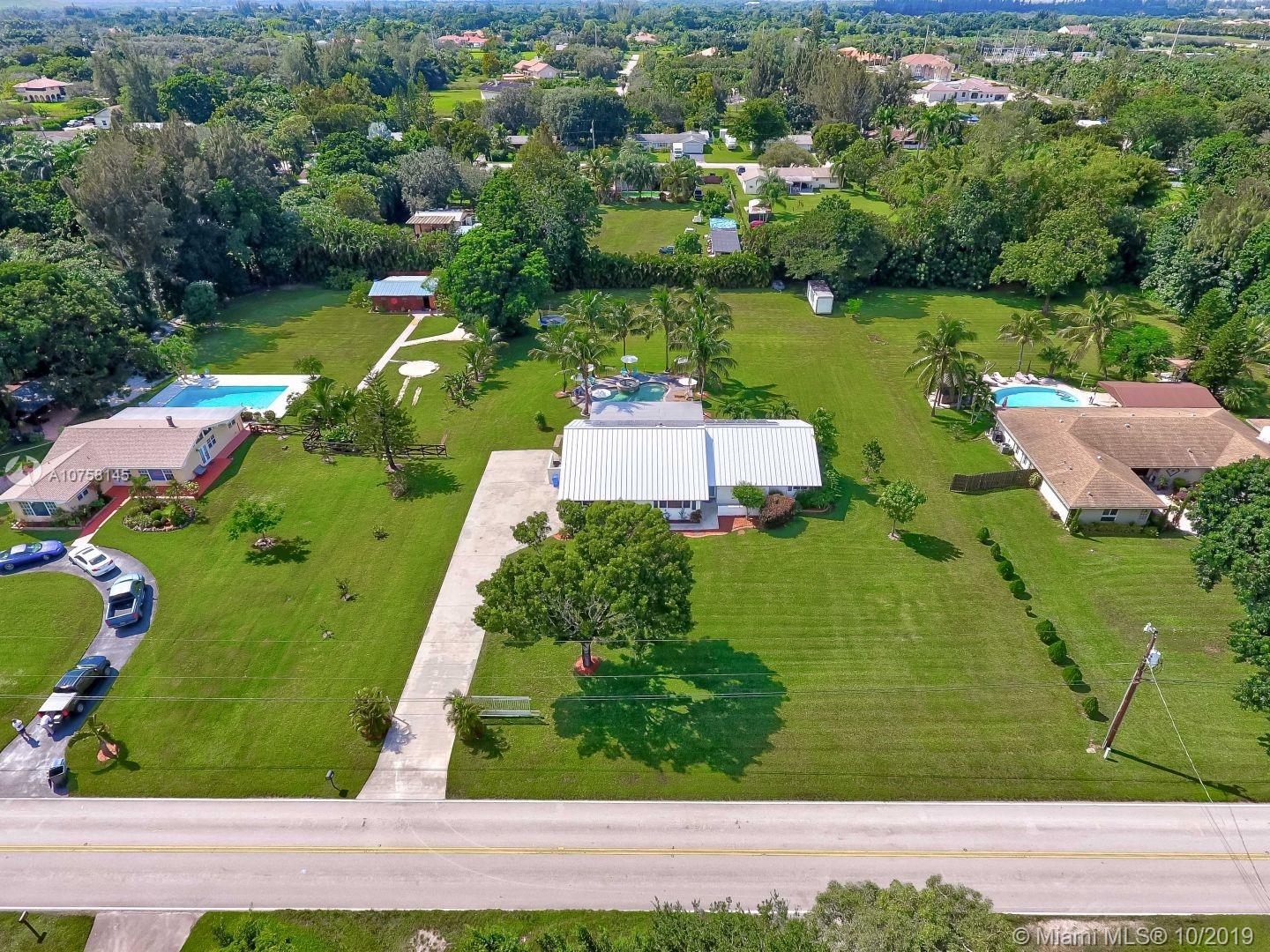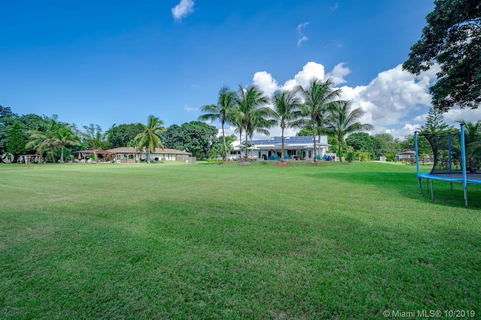 Amazing 1.19 acre 3 bedroom 2 bath home in Southwest Ranches! Completely upgraded, entertain friends and family with custom designed heated pool with salt chlorinator, new 80 year plus Metal roof, new completely renovated master bathroom, home theatre room, impact windows and doors for hurricane protection, Travertine marble floors. If you like working out, this home features a complete commercial grade gym with all the equipment (not included but negotiable). Tons of storage space including storage in attic with subflooring, and 12x24 container/shed. All furniture is negotiable. Don't pay for water, this home includes deep well water pump with water softener, also a shallow well for possible irrigation system. Save electricity with 44 solar panels, and much more, come see it now!