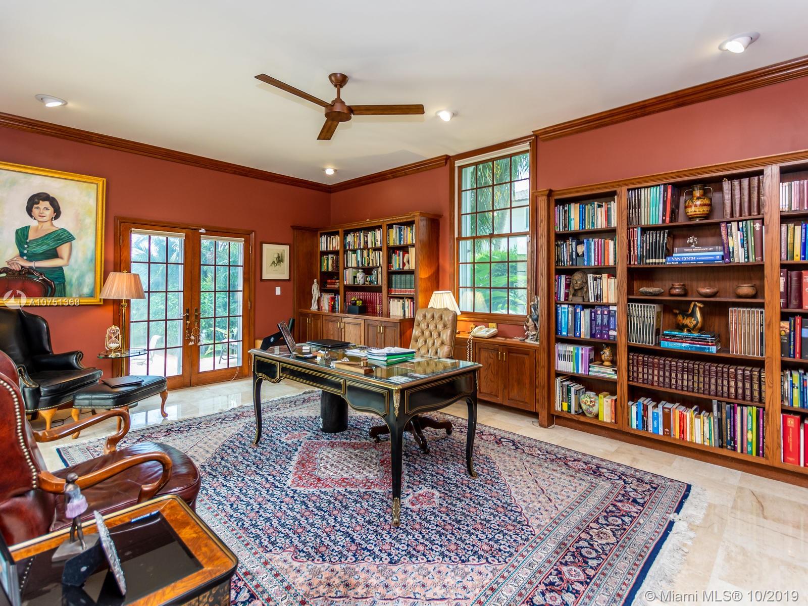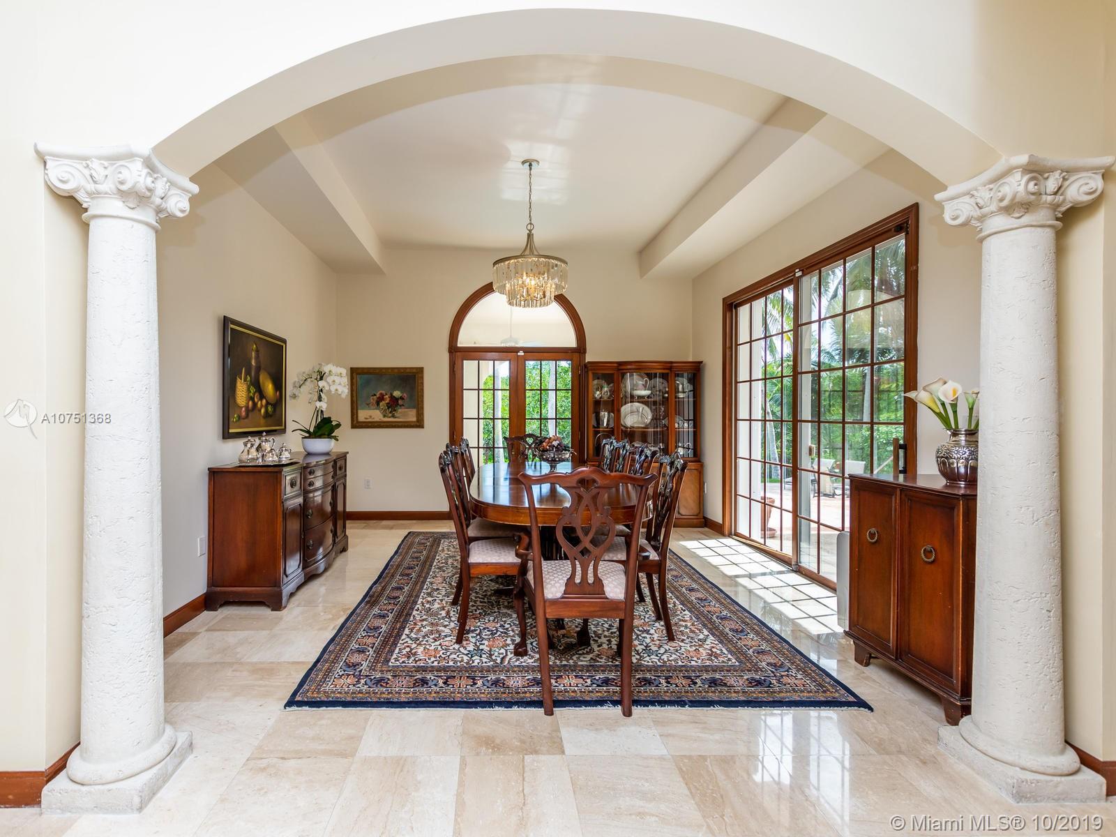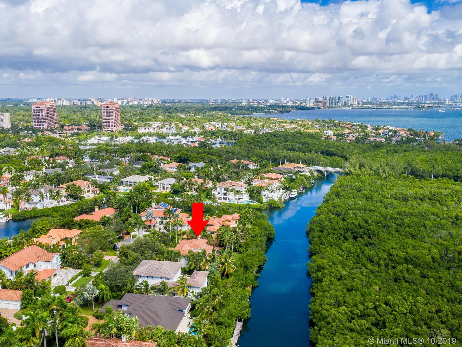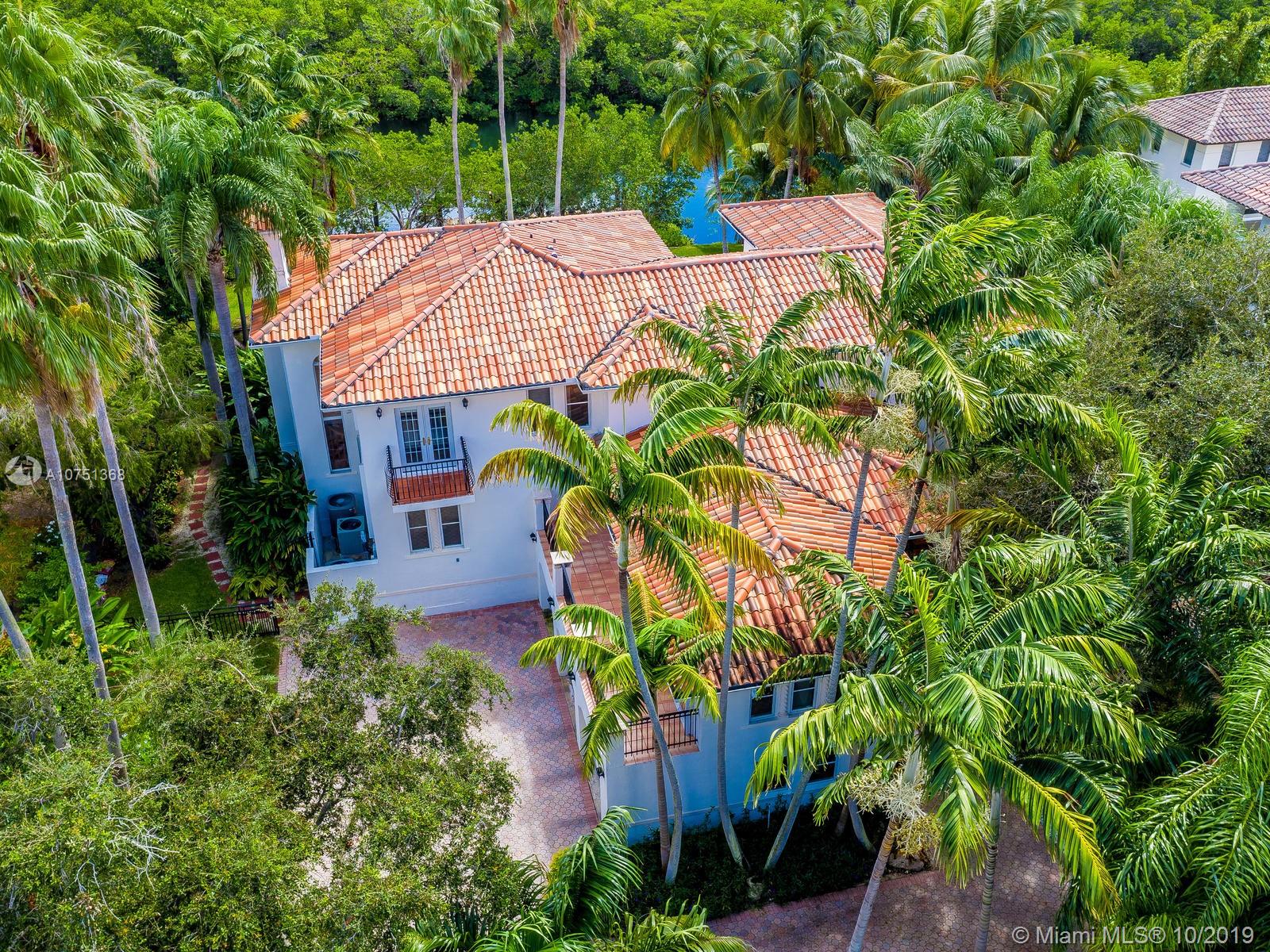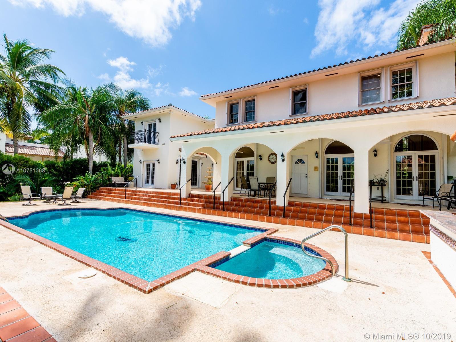 Poised in a well guarded community, this elegant tri-level Mediterranean residence possesses great style and warmth, achieved through exceptional design and superior grade construction. A six bedroom and six and one half bath with serene views of the lush patio and pool area, private water views and majestic mangrove preserve. Finely crafted custom woodworks with gleaming beige marble floors. Entry foyer, formal living room, formal dining room and large traditional library. Two story keystone fireplace in spacious and inviting family room. Newly renovated dock.