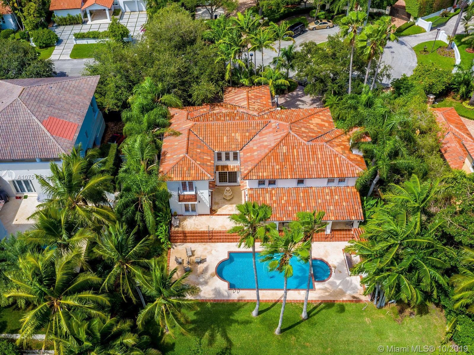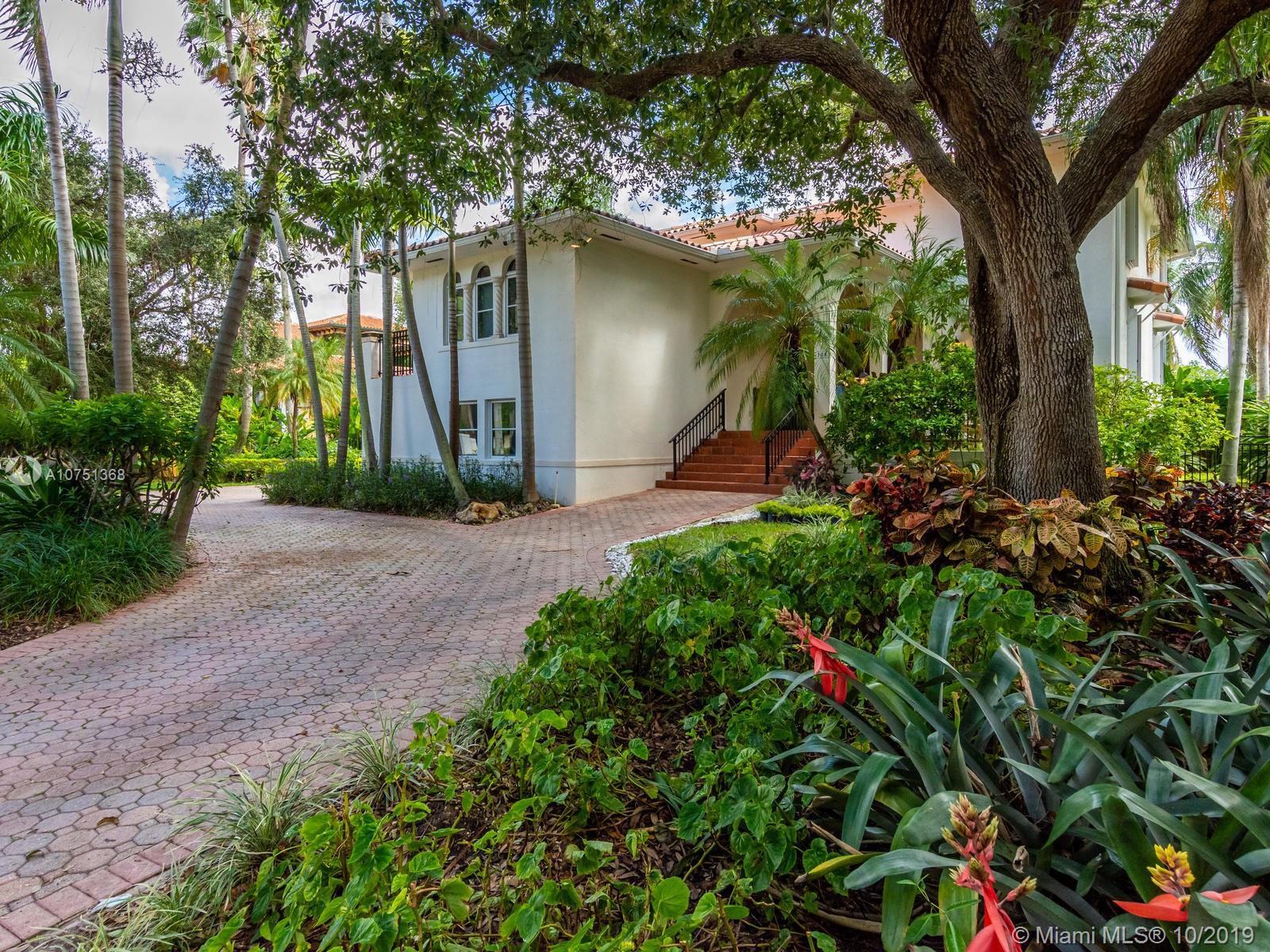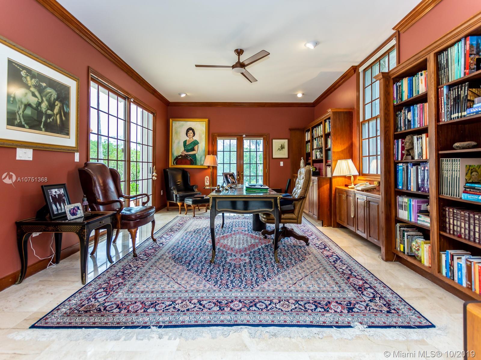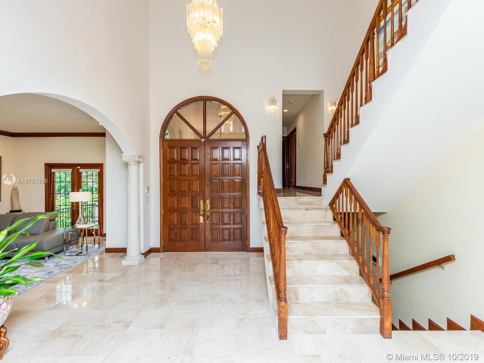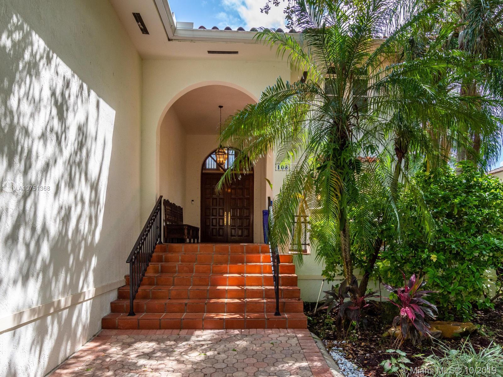 Poised in a well guarded community, this elegant tri-level Mediterranean residence possesses great style and warmth, achieved through exceptional design and superior grade construction. A six bedroom and six and one half bath with serene views of the lush patio and pool area, private water views and majestic mangrove preserve. Finely crafted custom woodworks with gleaming beige marble floors. Entry foyer, formal living room, formal dining room and large traditional library. Two story keystone fireplace in spacious and inviting family room. Newly renovated dock.