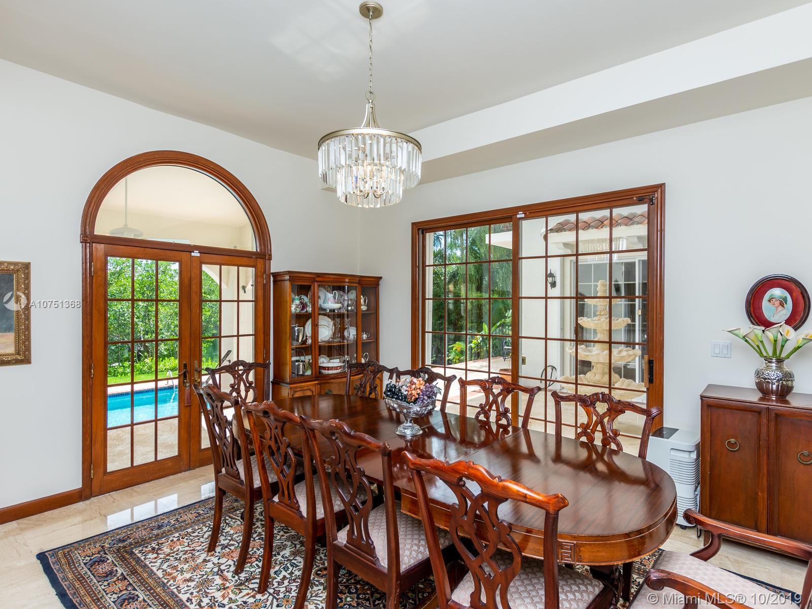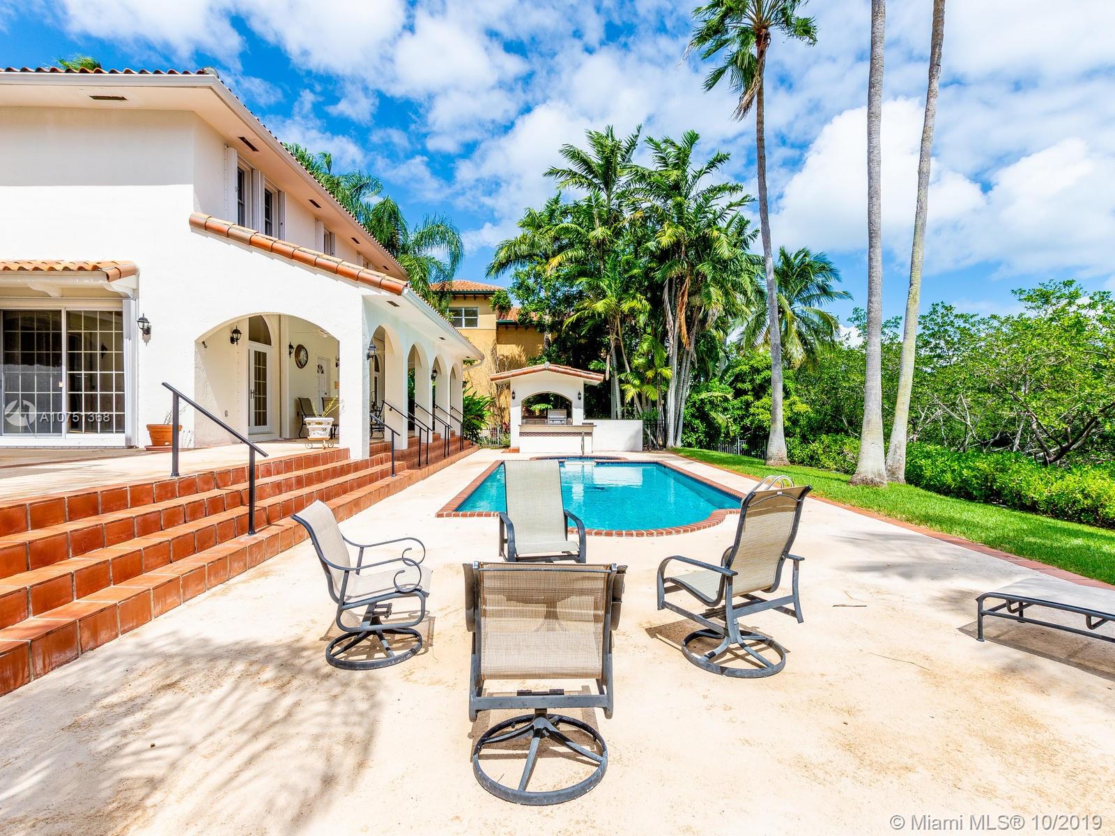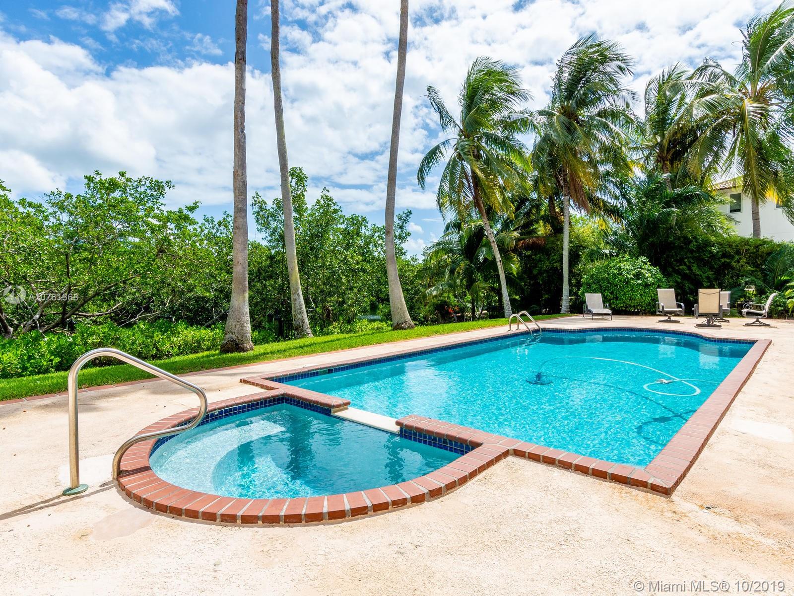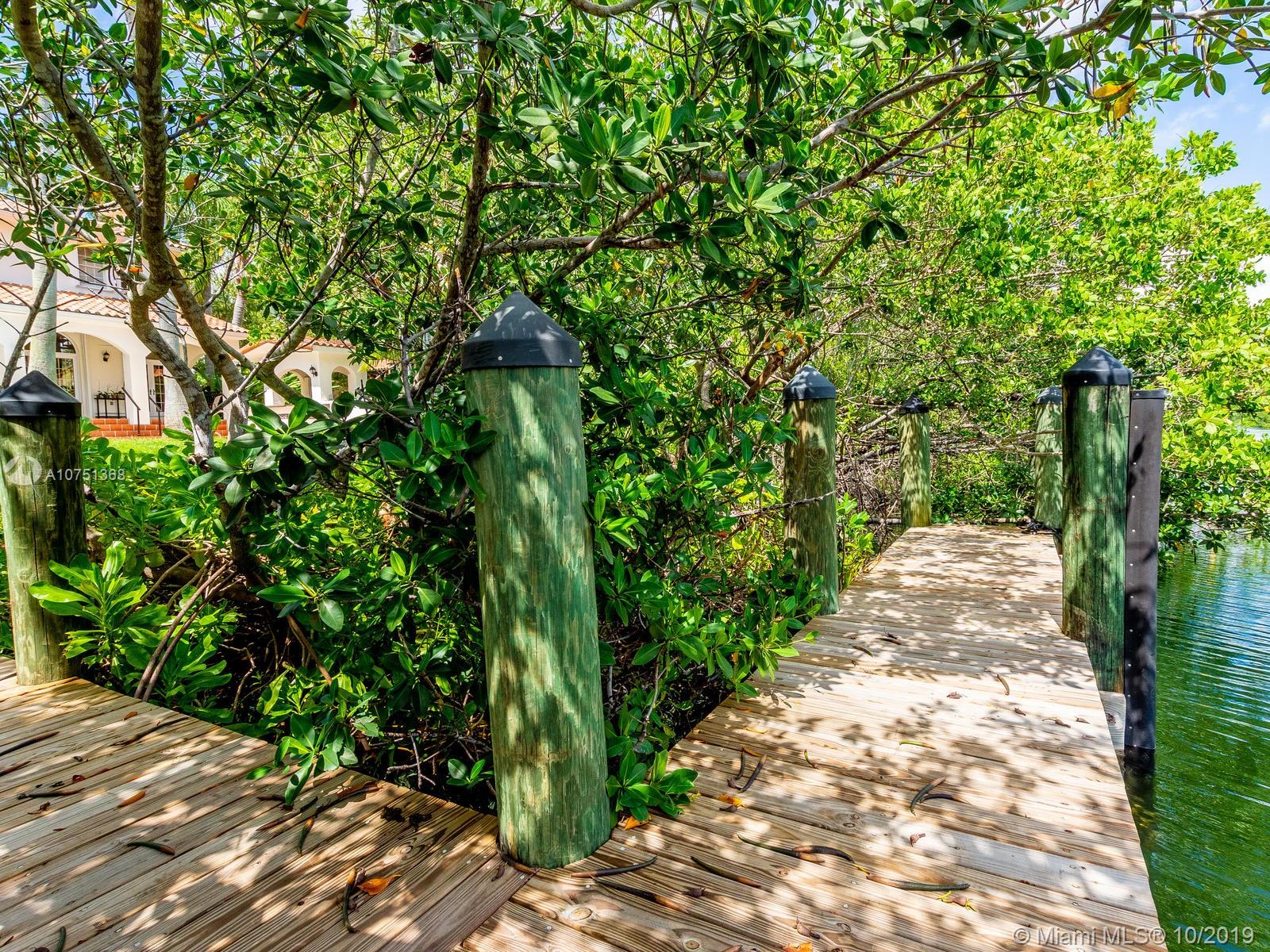 Poised in a well guarded community, this elegant tri-level Mediterranean residence possesses great style and warmth, achieved through exceptional design and superior grade construction. A six bedroom and six and one half bath with serene views of the lush patio and pool area, private water views and majestic mangrove preserve. Finely crafted custom woodworks with gleaming beige marble floors. Entry foyer, formal living room, formal dining room and large traditional library. Two story keystone fireplace in spacious and inviting family room. Newly renovated dock.