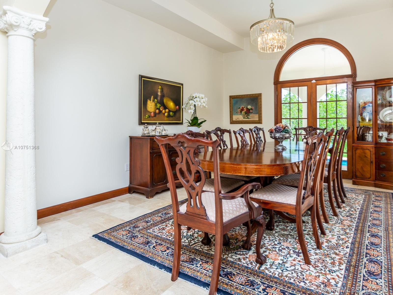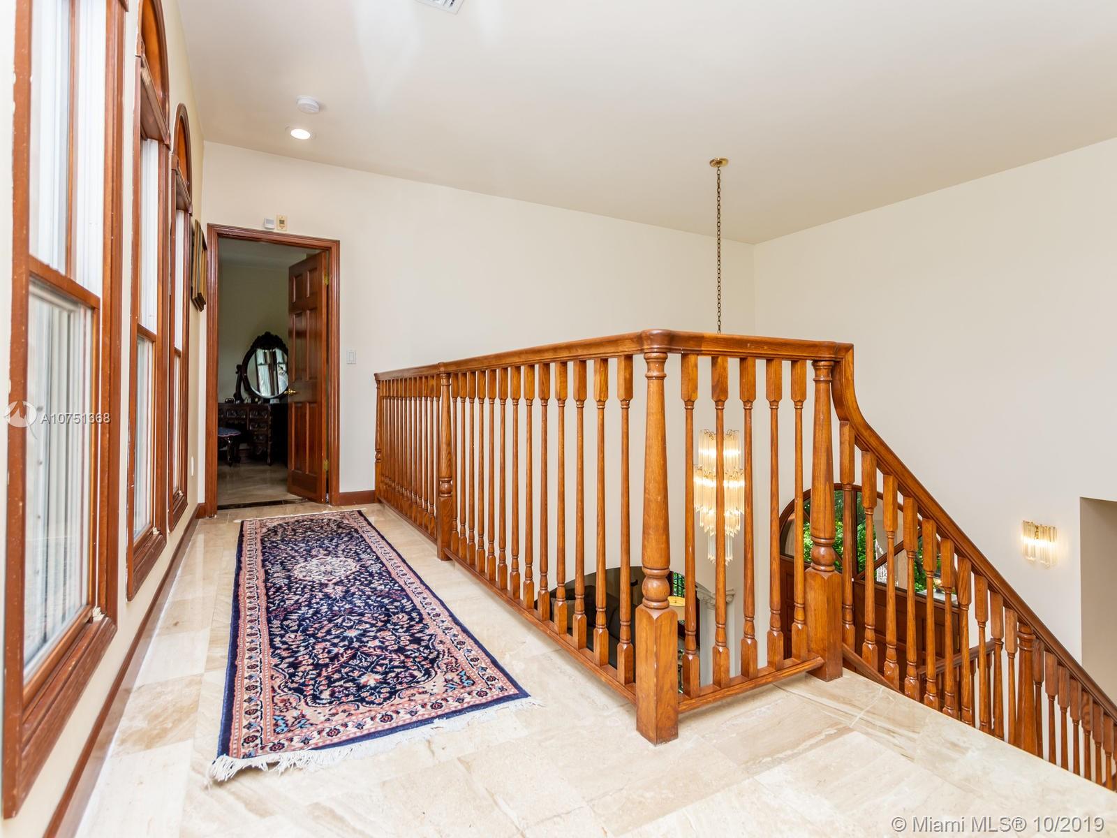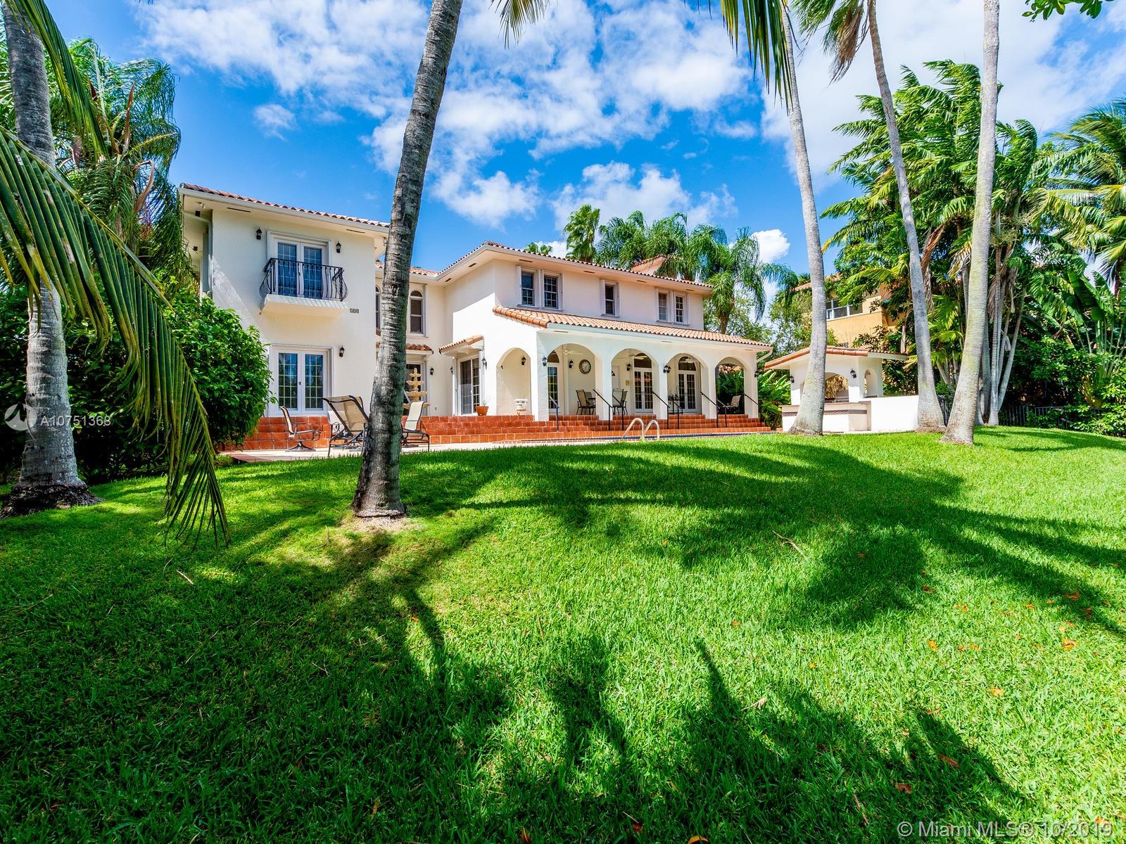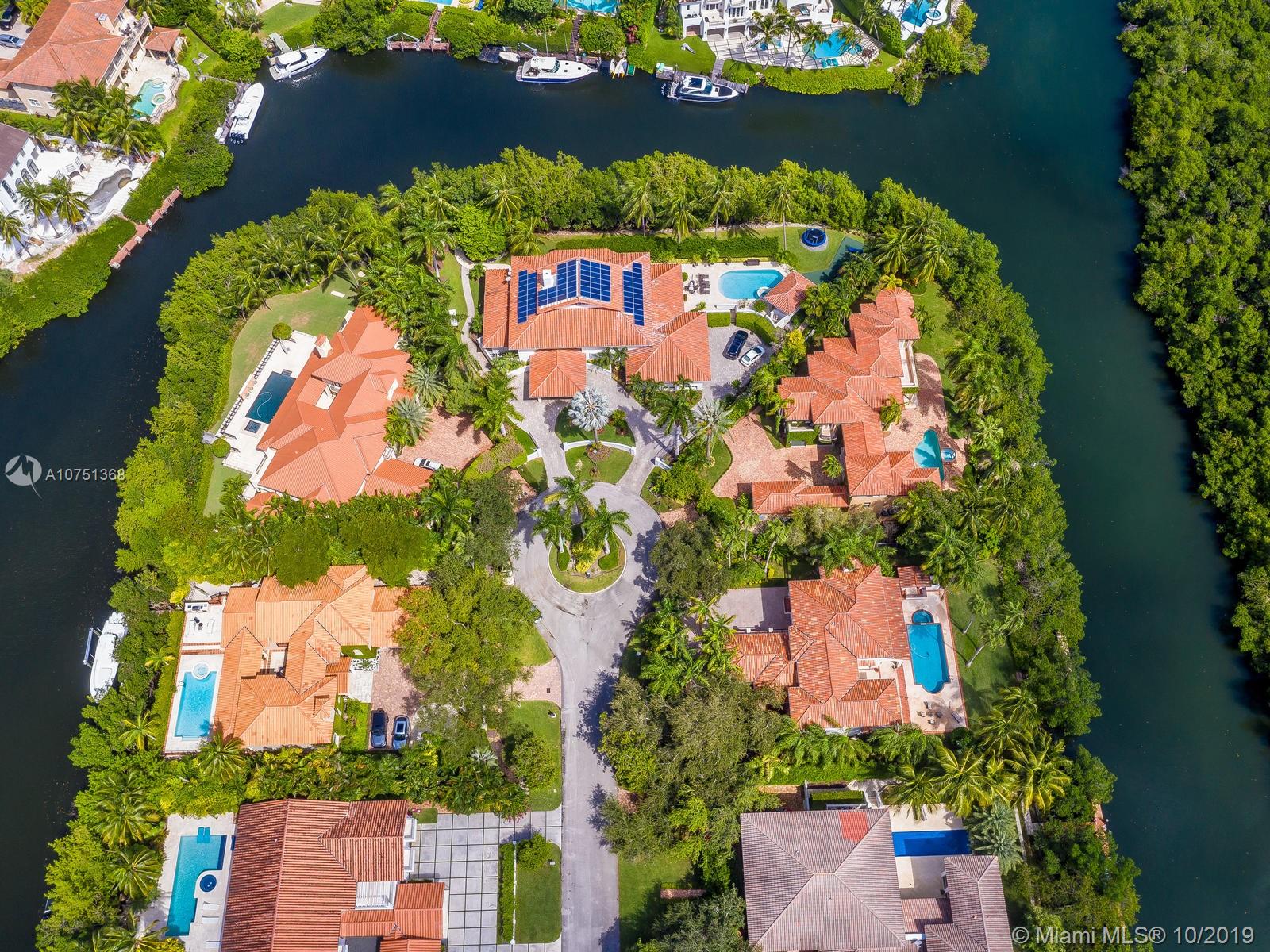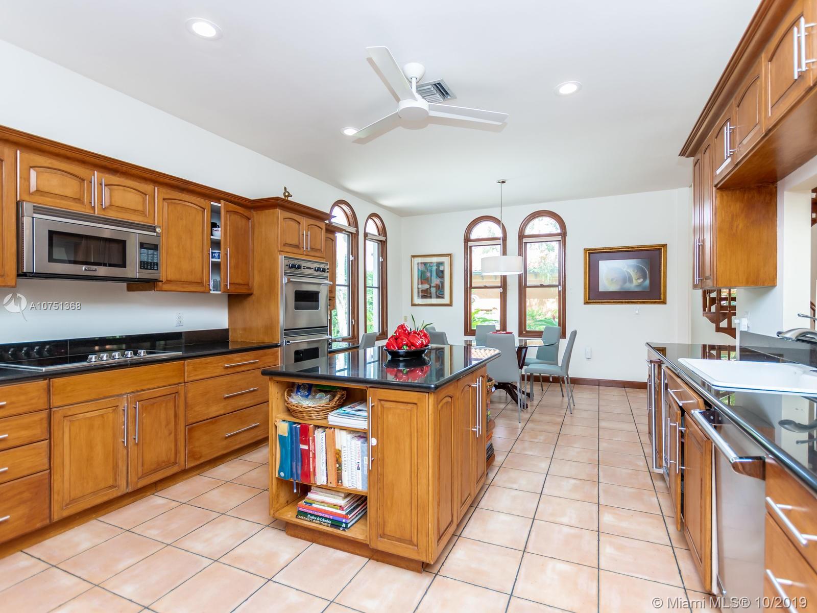 Poised in a well guarded community, this elegant tri-level Mediterranean residence possesses great style and warmth, achieved through exceptional design and superior grade construction. A six bedroom and six and one half bath with serene views of the lush patio and pool area, private water views and majestic mangrove preserve. Finely crafted custom woodworks with gleaming beige marble floors. Entry foyer, formal living room, formal dining room and large traditional library. Two story keystone fireplace in spacious and inviting family room. Newly renovated dock.