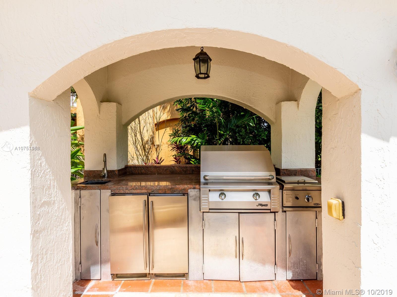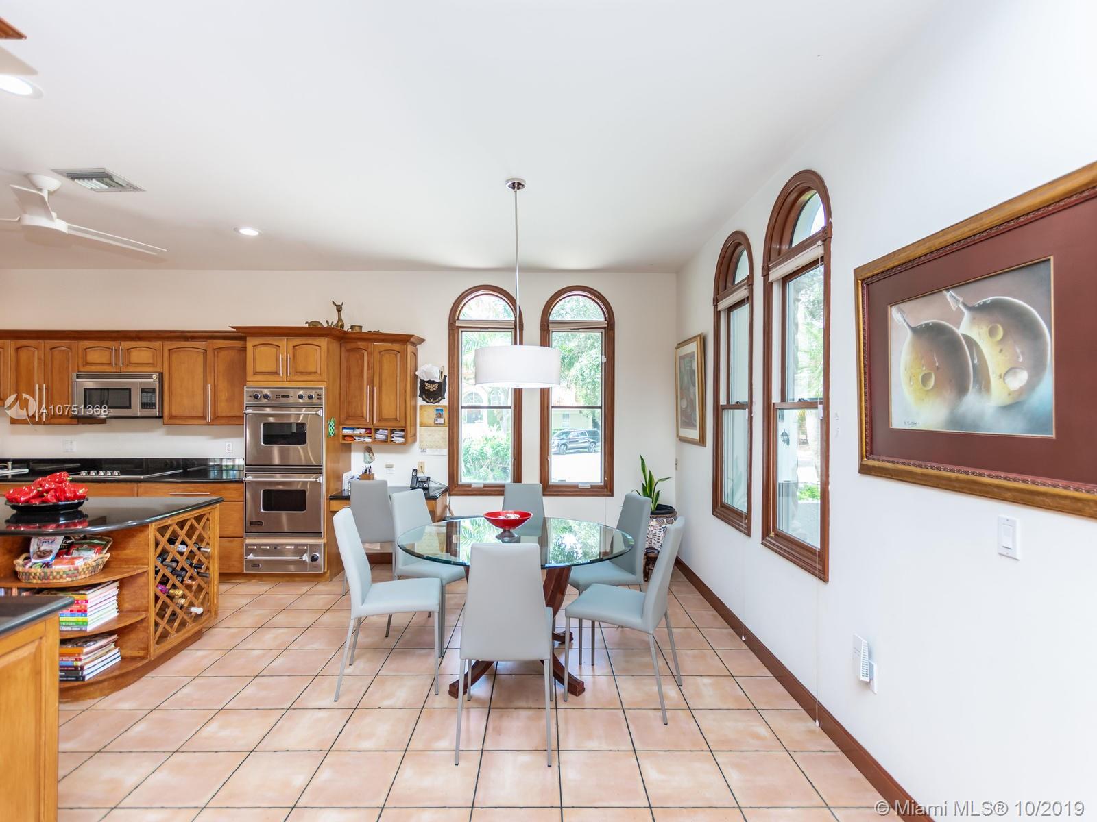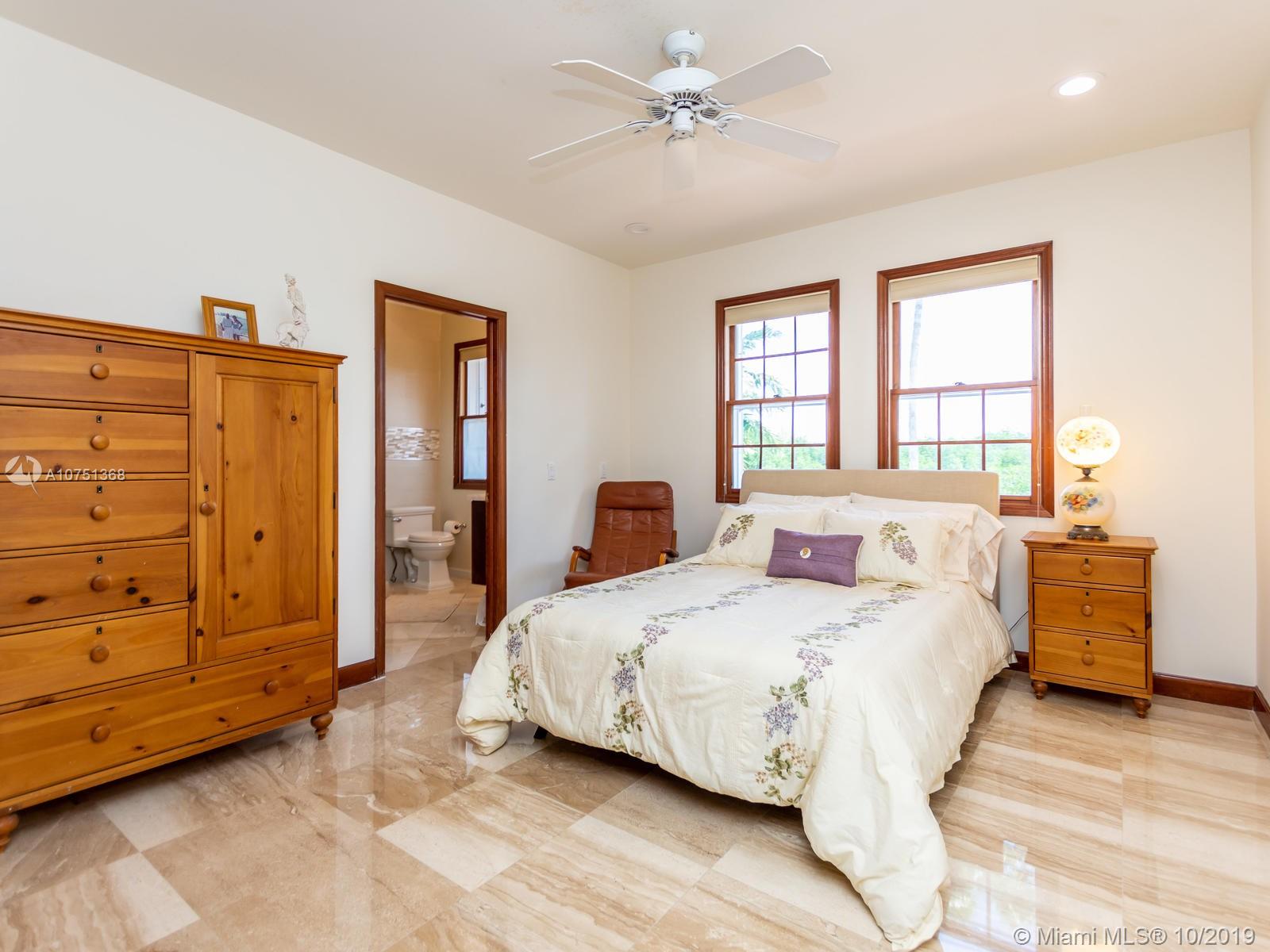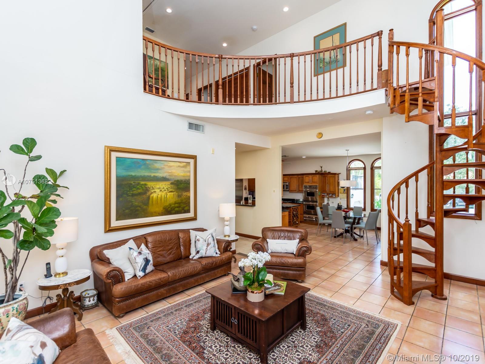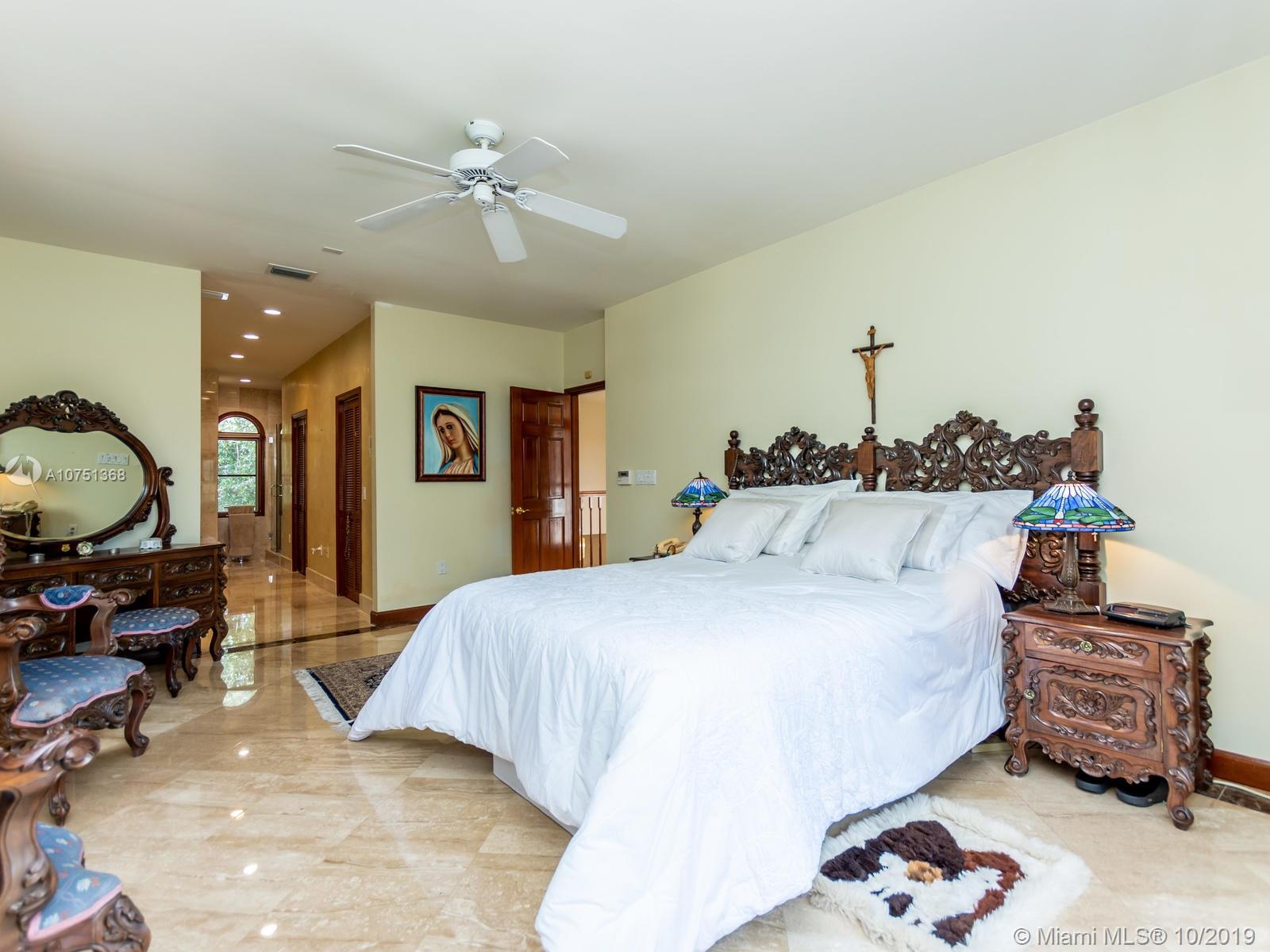 Poised in a well guarded community, this elegant tri-level Mediterranean residence possesses great style and warmth, achieved through exceptional design and superior grade construction. A six bedroom and six and one half bath with serene views of the lush patio and pool area, private water views and majestic mangrove preserve. Finely crafted custom woodworks with gleaming beige marble floors. Entry foyer, formal living room, formal dining room and large traditional library. Two story keystone fireplace in spacious and inviting family room. Newly renovated dock.