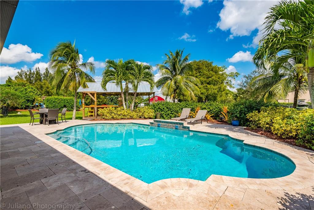 This Modern Farmhouse has a large split floor-plan, designer style kitchen perfect for a chef featuring a huge sink overlooking your acre of land, white cabinets, dry bar, trendy barn doors, and stainless steel appliances. Relax on the porch, in the "she shed," or by the pool surrounded by travertine! This house screams entertaining! Massive 1 acre yard has room for any and all of your hobbies. Yard is entirely fenced in for pets. Prime location for country living by a big city. Literally only 5 minutes from I-75. New Paint. Impact Windows & Doors. Newer water system. Gas for appliances. Wood Look Ceramic Floors. Run your business. Horses welcome.