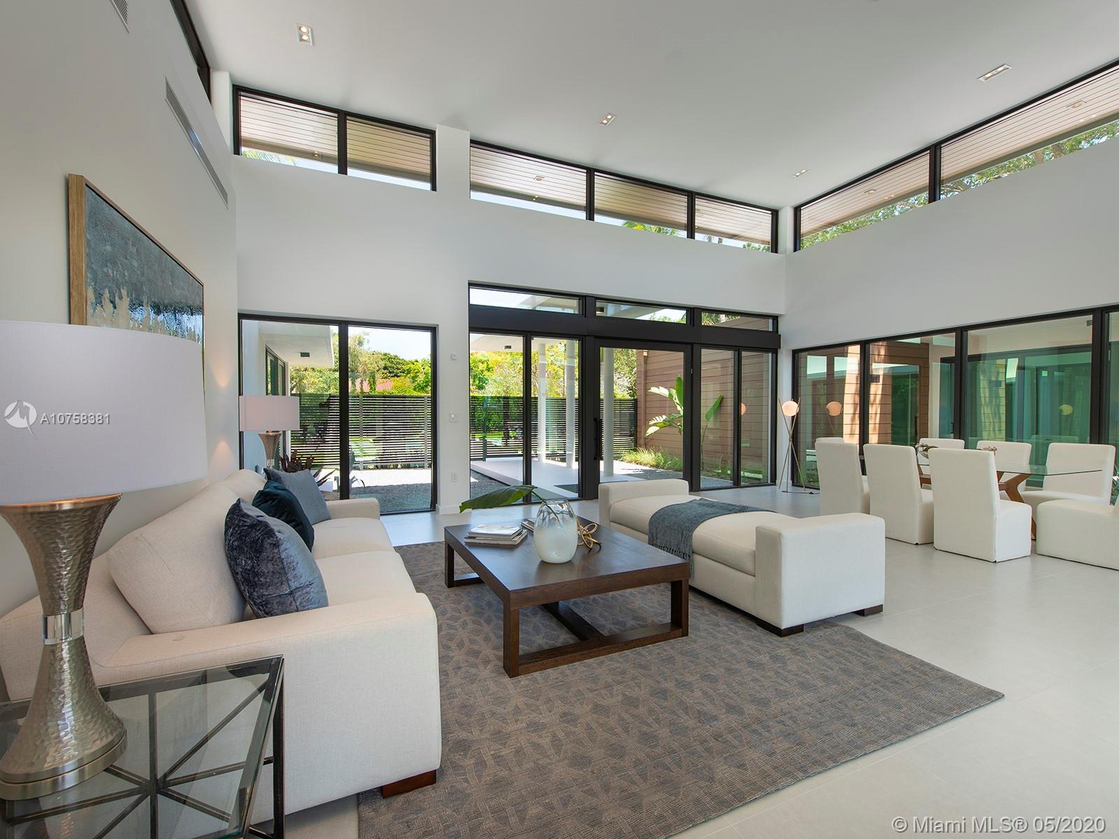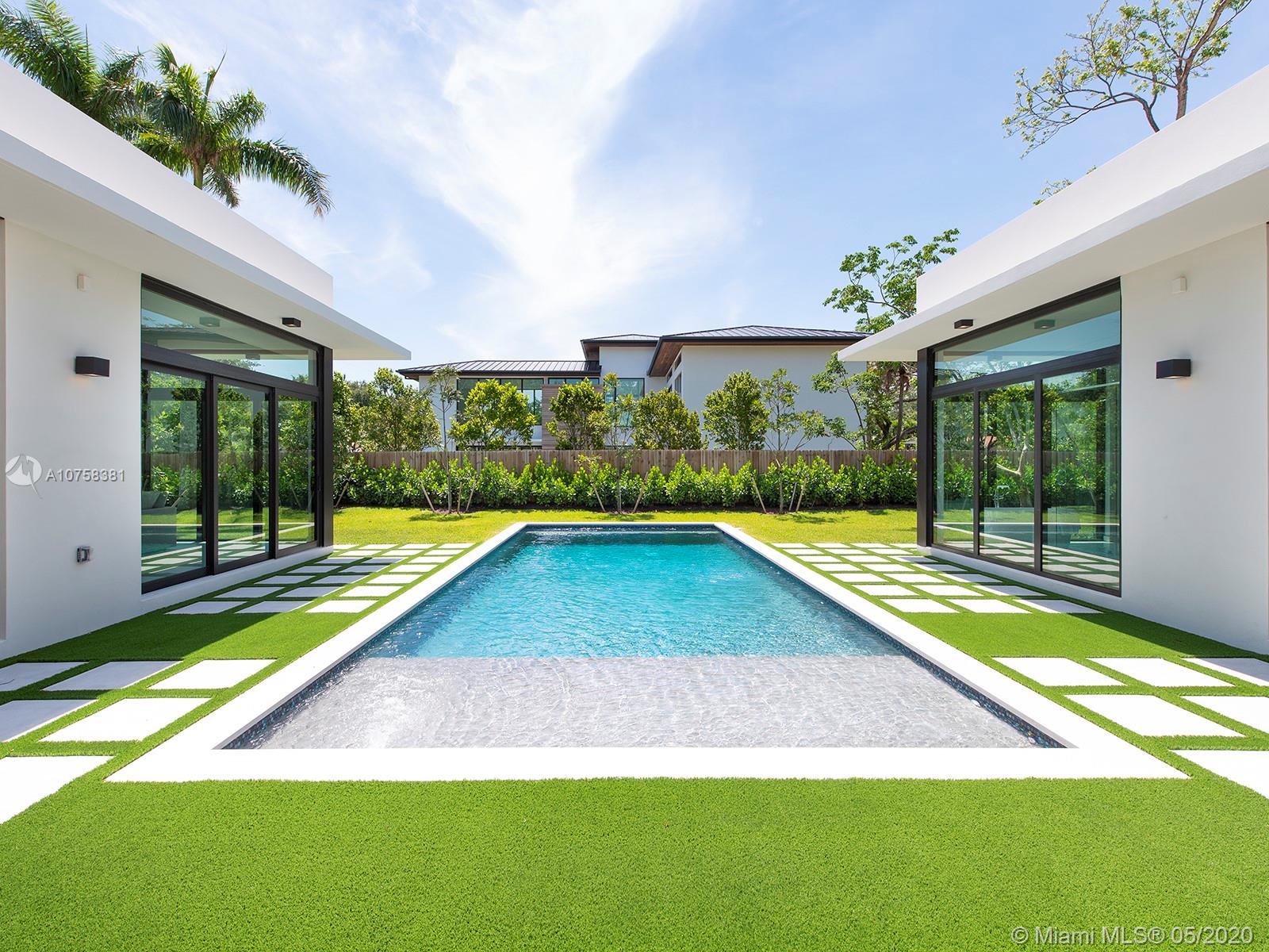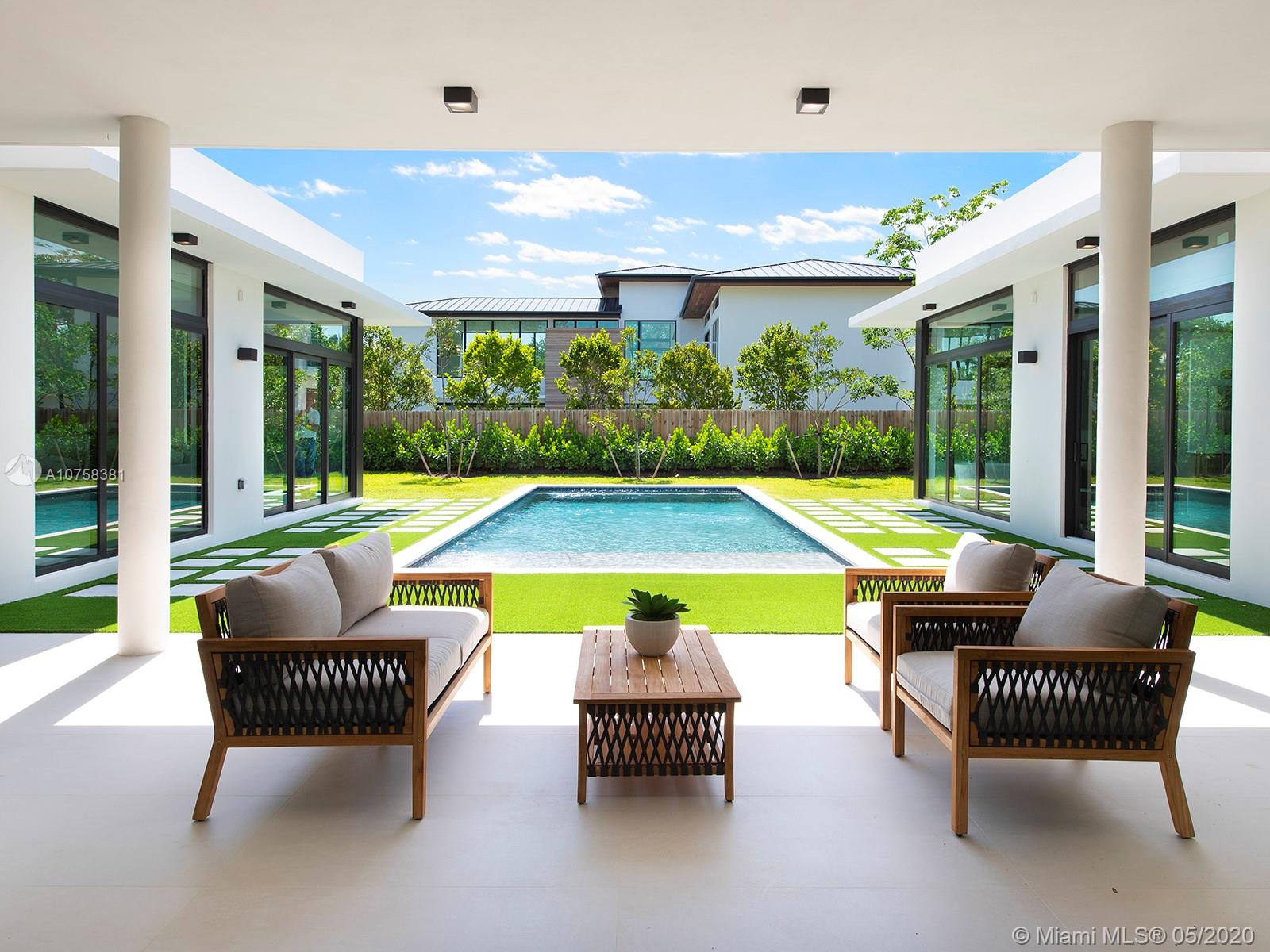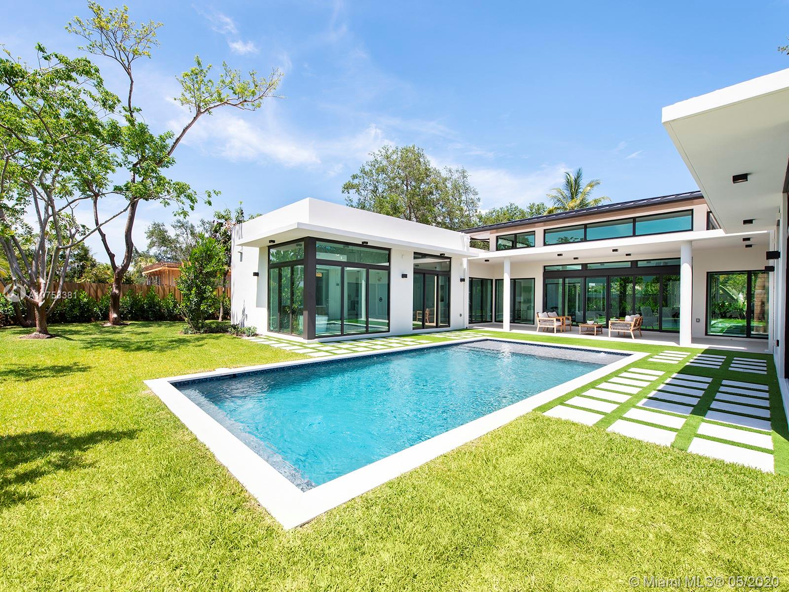 Rare one-story 4,893 sqft corner estate in Pinecrest with state of the art modern architecture offering 5 bedrooms, 6 bathrooms, 2-car garage, oversized laundry room, fabulous open floor plan, high ceilings, tropical garden entrance, gorgeous pool/patio area, impact windows and doors, camera and speaker prewiring and many more top of the line features. This one of a kind home is located within close proximity to top-rated schools, parks, great restaurants, Dadeland Mall and the highway.