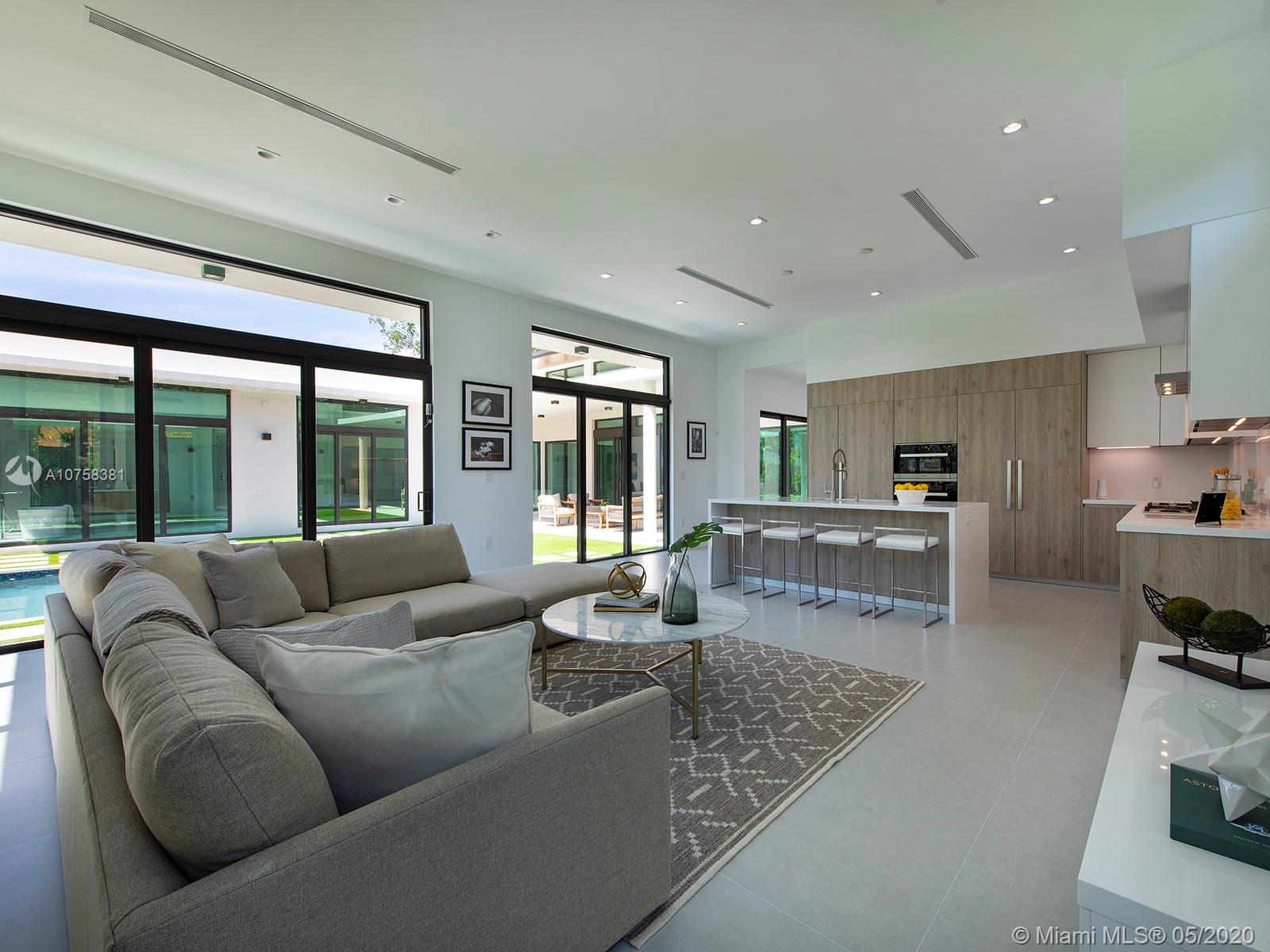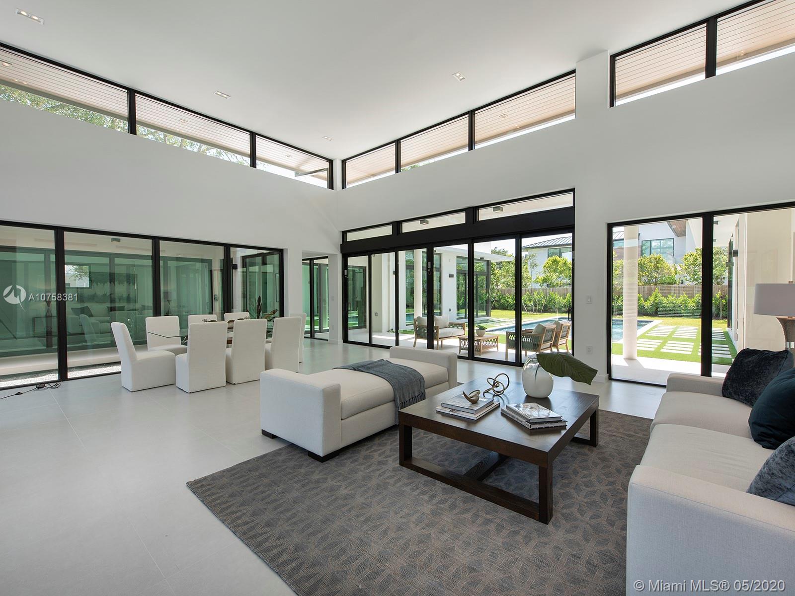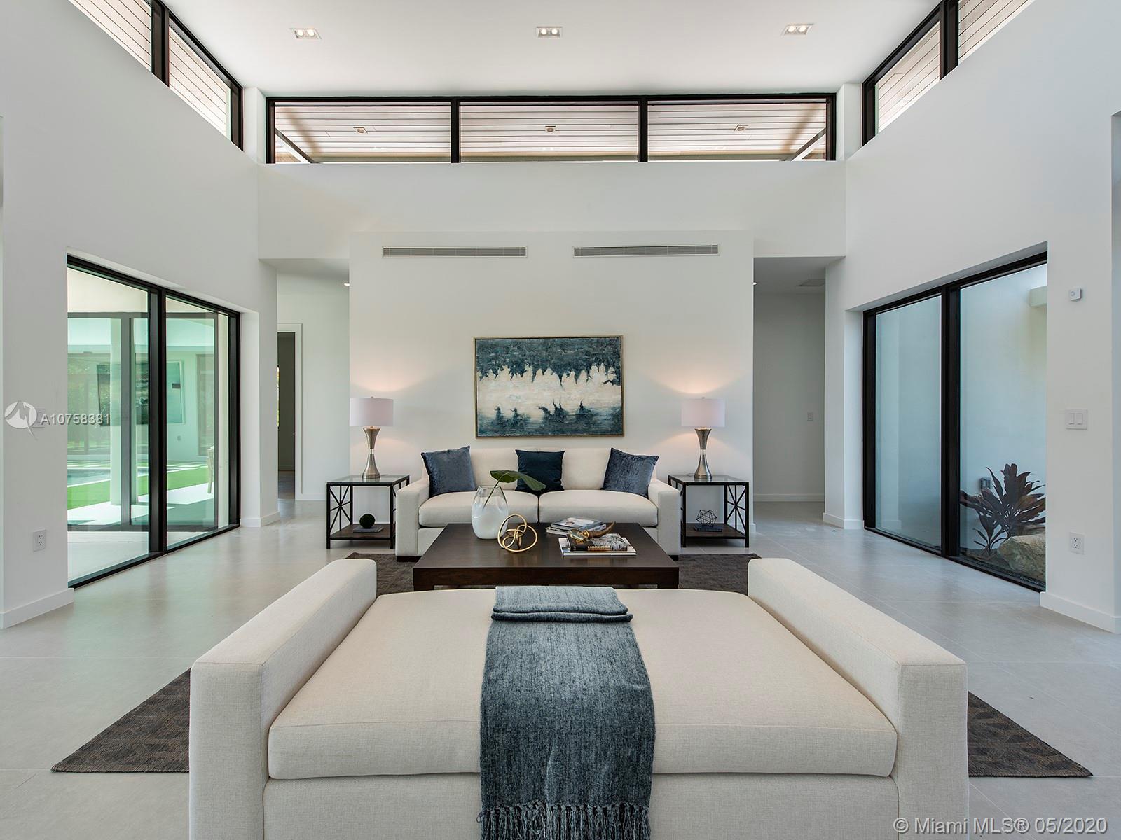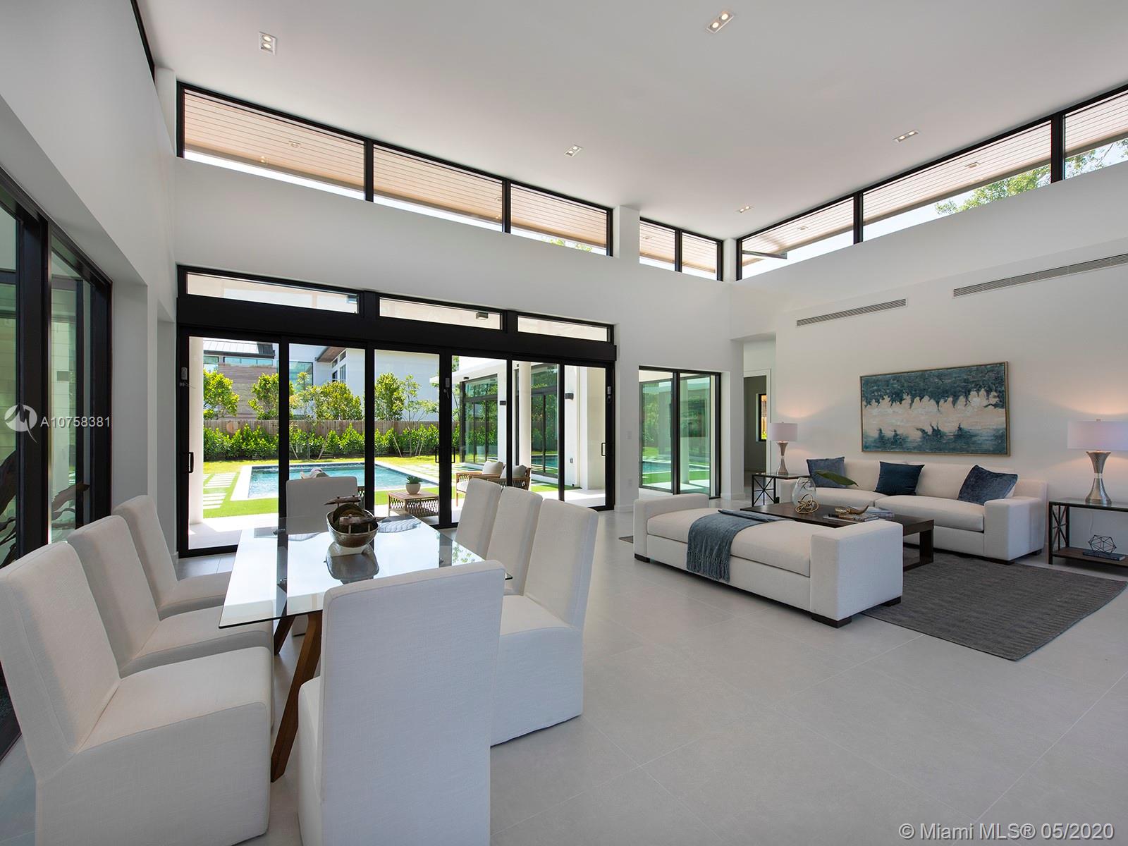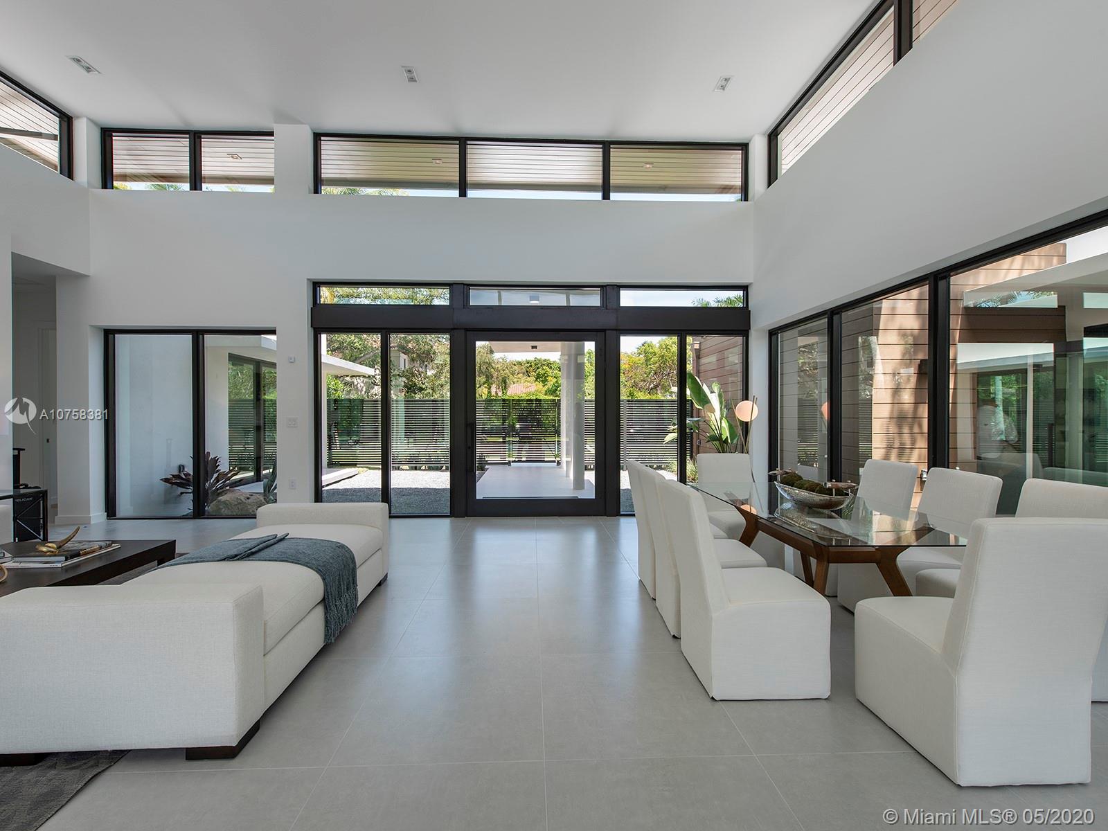 Rare one-story 4,893 sqft corner estate in Pinecrest with state of the art modern architecture offering 5 bedrooms, 6 bathrooms, 2-car garage, oversized laundry room, fabulous open floor plan, high ceilings, tropical garden entrance, gorgeous pool/patio area, impact windows and doors, camera and speaker prewiring and many more top of the line features. This one of a kind home is located within close proximity to top-rated schools, parks, great restaurants, Dadeland Mall and the highway.