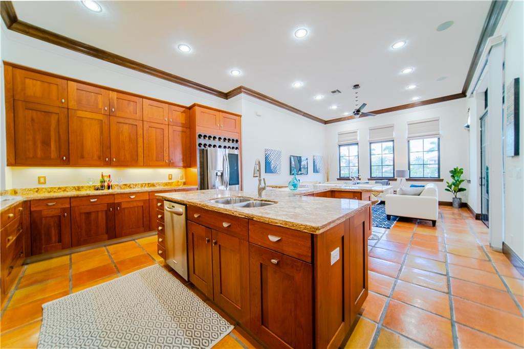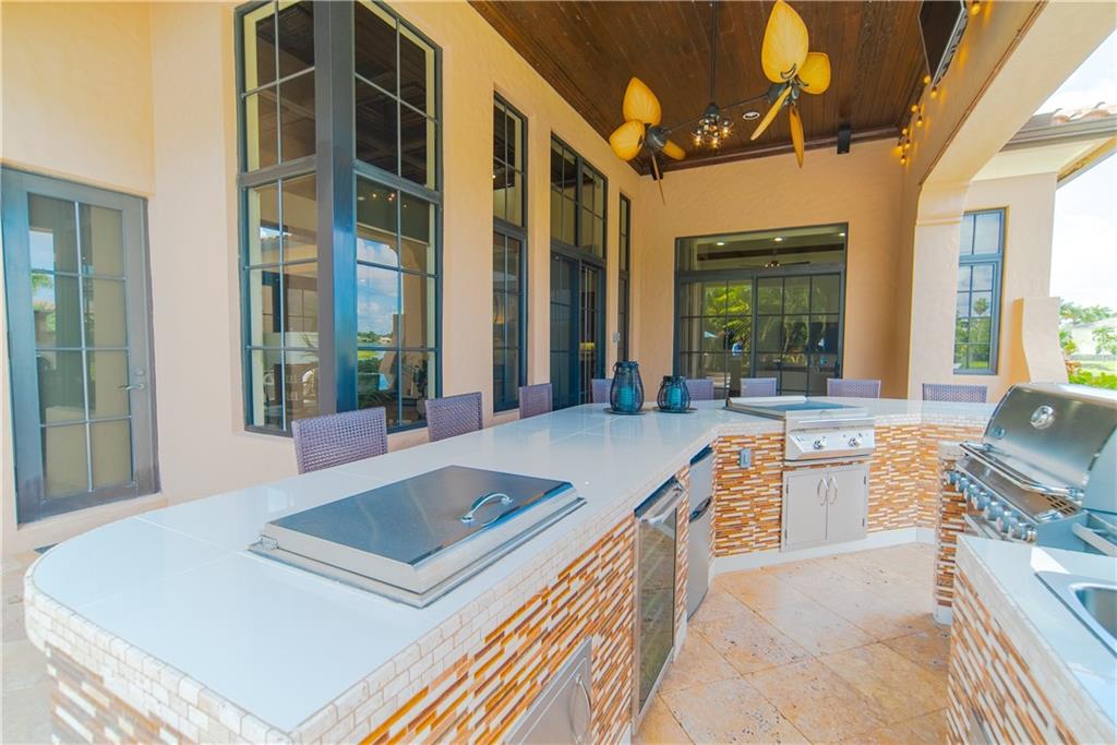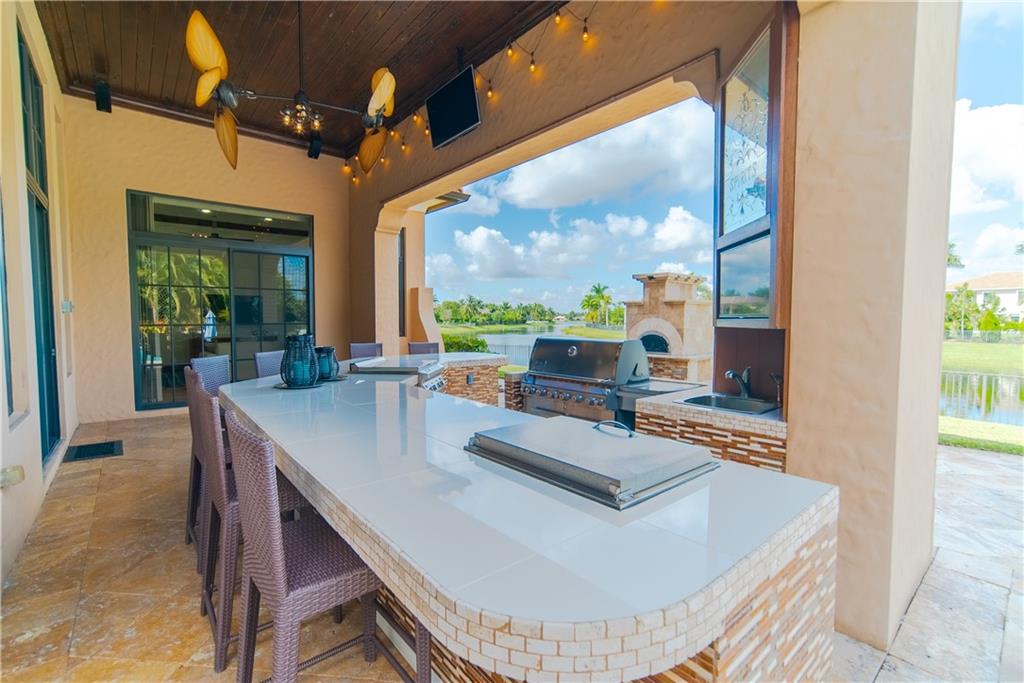 Over $160K In Upgrades! Spectacular 4 Beds + Separate Bonus Room, 4.5 Baths Pool Home on a Large Cul-De-Sac Waterfront 1/2 Acre Lot! Freshly Painted Interior w/Lots of Natural Light, Coffered Wood Ceilings, Mexican Tile in Living Areas, Hardwood in Beds (All On Suites), 2018 Washer/Dryer and 2017/2019 ACs. Kitchen w/Chef's Style Hibachi Cooktop, Newer SS Appliances, Granite Counters, Wood Cabinets & Glass Tile Backsplash. Custom Pool & Spa w/Travertine Tile, Large Summer Kitchen w/Glass Mosaic Bar, 2 Mini Fridges, & Hibachi Grill, Chicago Brick Pizza Oven. Outdoor BOSE Speakers, Misting System, Fully Fenced-In Yard. Enjoy Amazing Sunset Views. Premier Golf Course Community w/Resort Style Amenities: Clubhouse, Restaurant, Pool/Spa, Tennis/Basketball Courts, Gym & Kid Zone, A-Rated Schools.