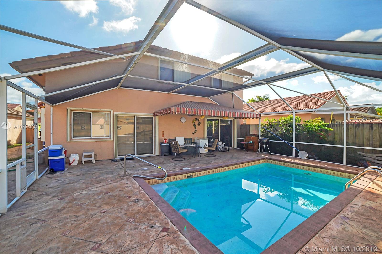 Enjoy living in this beautifully remodeled, two story, 4 bed 2.5 bath POOL home with shutters. Open layout, perfect for entertaining anywhere from the family room, formal dining room, spacious kitchen or outside patio with pool. Master bedroom downstairs overlooking the pool with en-suite bathroom, double vanity, spa tub with separate shower and walk in closet. Three bedroom upstairs (den enclosed, is the 4th bedroom). The Moors is a gated and secure community with amenities such as: tennis courts, gym, pool, fishing lake, party room and on site management.