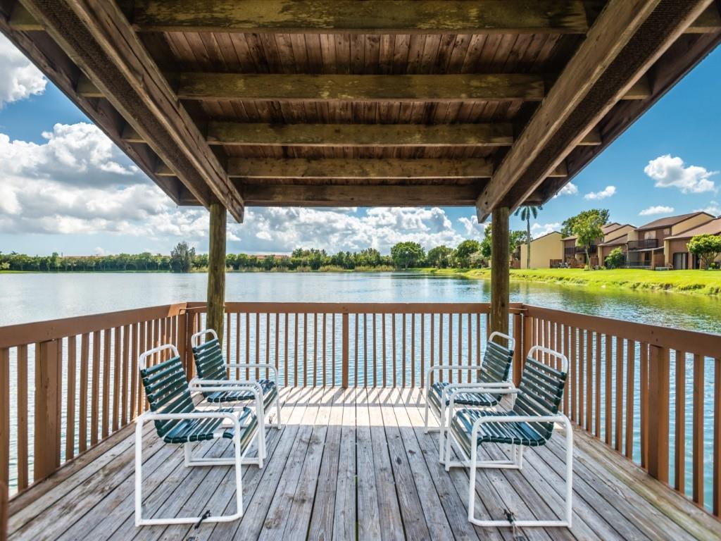 Style and elegance awaits you in this beautiful townhome. Updated kitchen and baths and freshly painted. High ceiling in living room, office and both bedrooms. Large master suite upstairs with marble shower, walk-in closet. 1 bedroom on first floor with lake view. Fabulous community with great pool right across the street over looking lake and tennis court too. Lots of guest parking right across the street too. Great location with 7 parks with in 5 min drive that has live oaks canopying the walking trails and much more to enjoy this wonderful South Florida lifestyle. All the shopping within 5 minute drive also. Beaches are a short drive away about 10 miles. Great schools and colleges. Davie has it all!! Bring your DOGS too!!